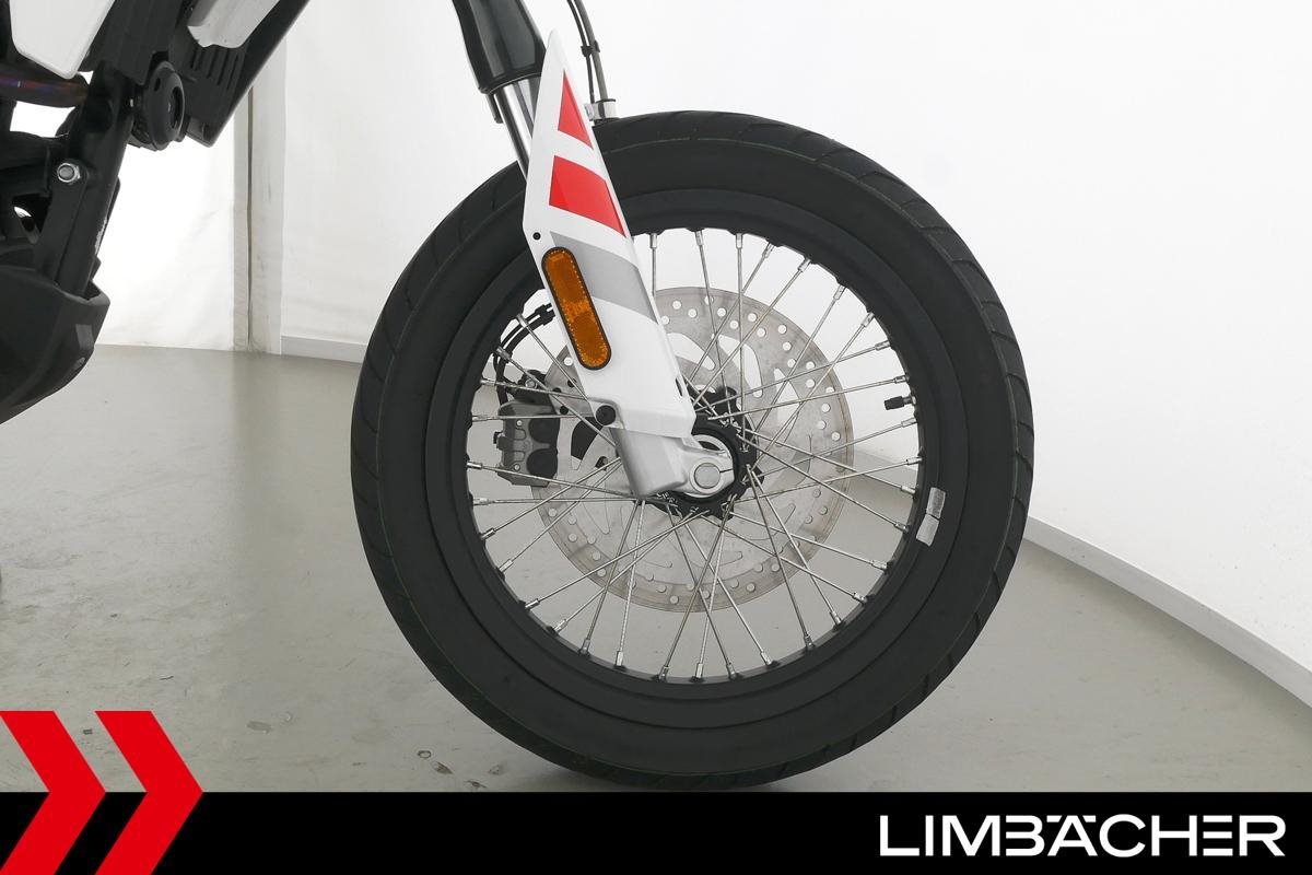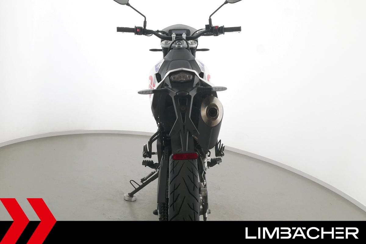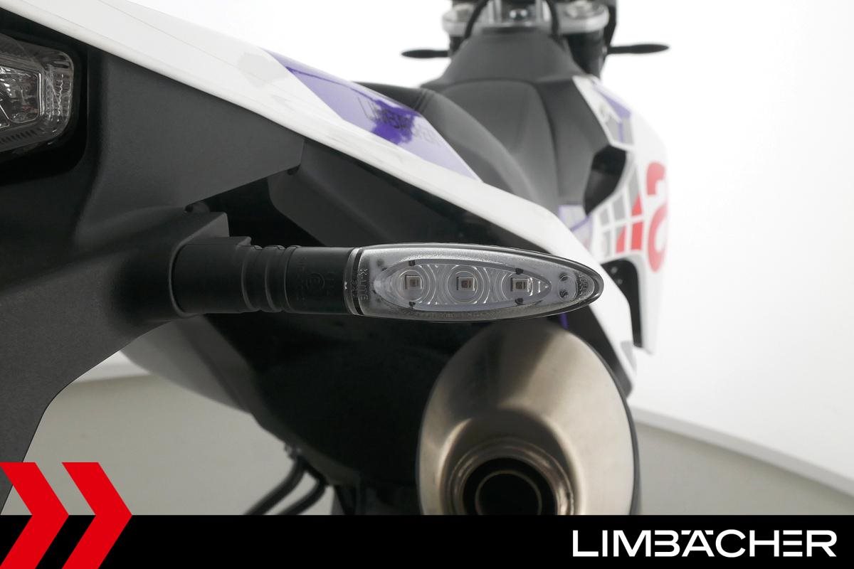 Eine Aprilia SX 125 E5+ in Topzustand u.a. mit Originalausstattung sowie LED-Blinkern und -Rücklicht.