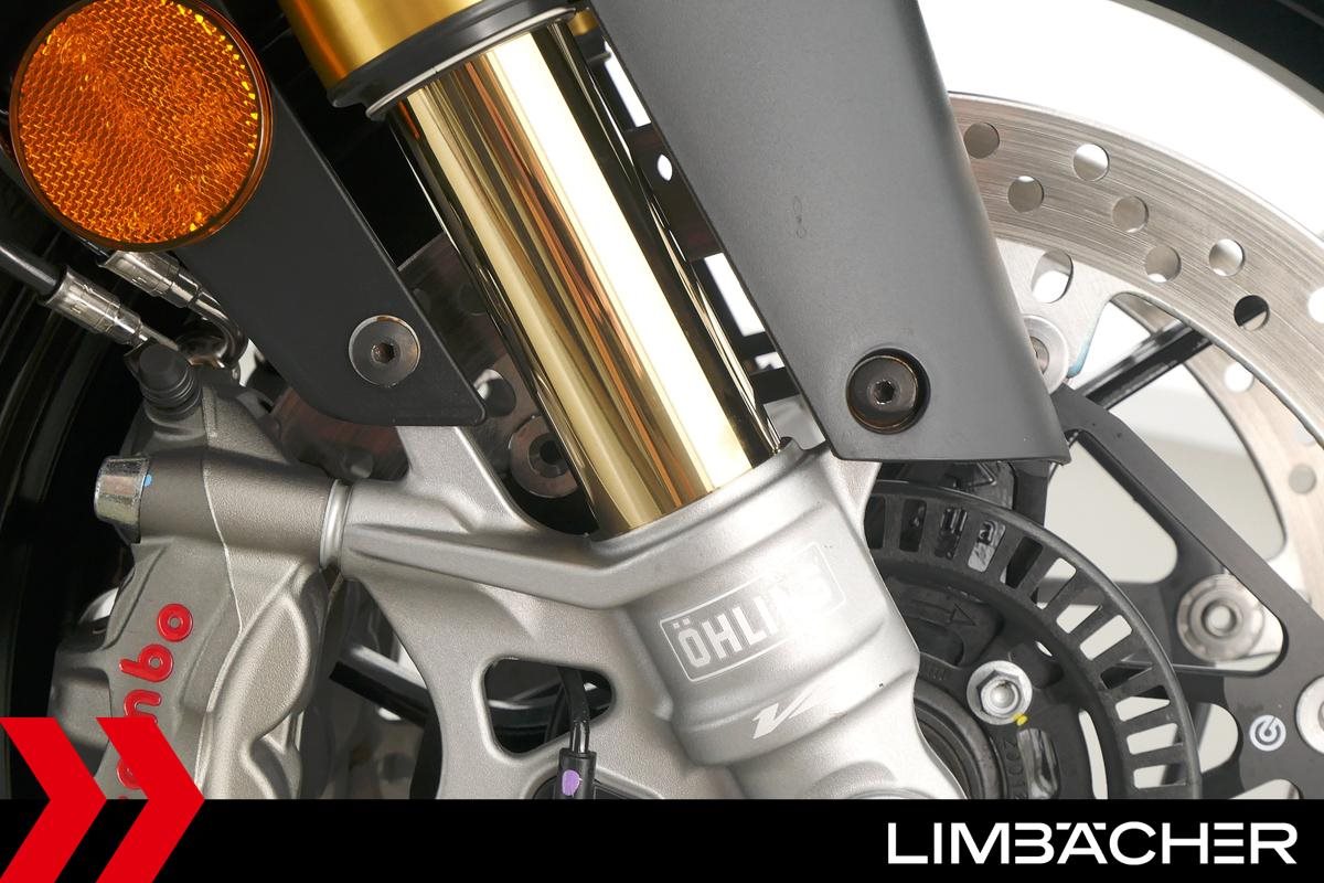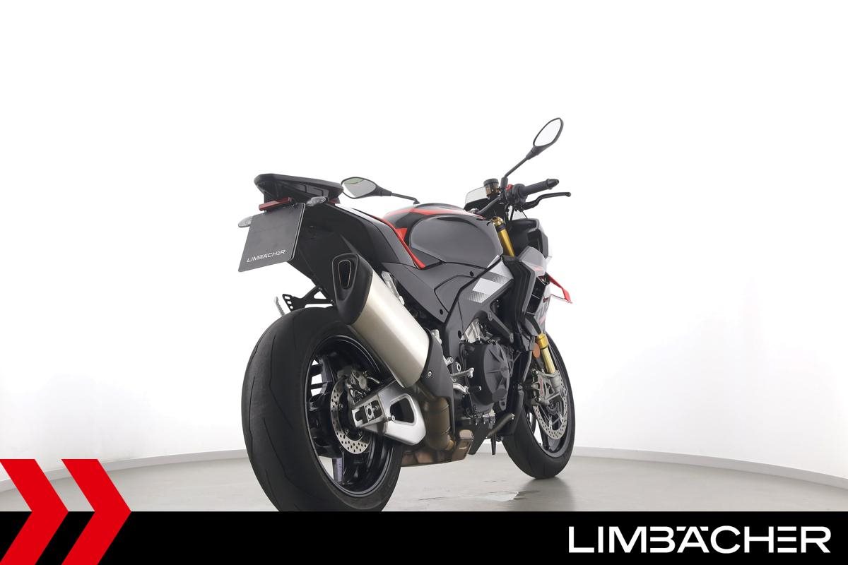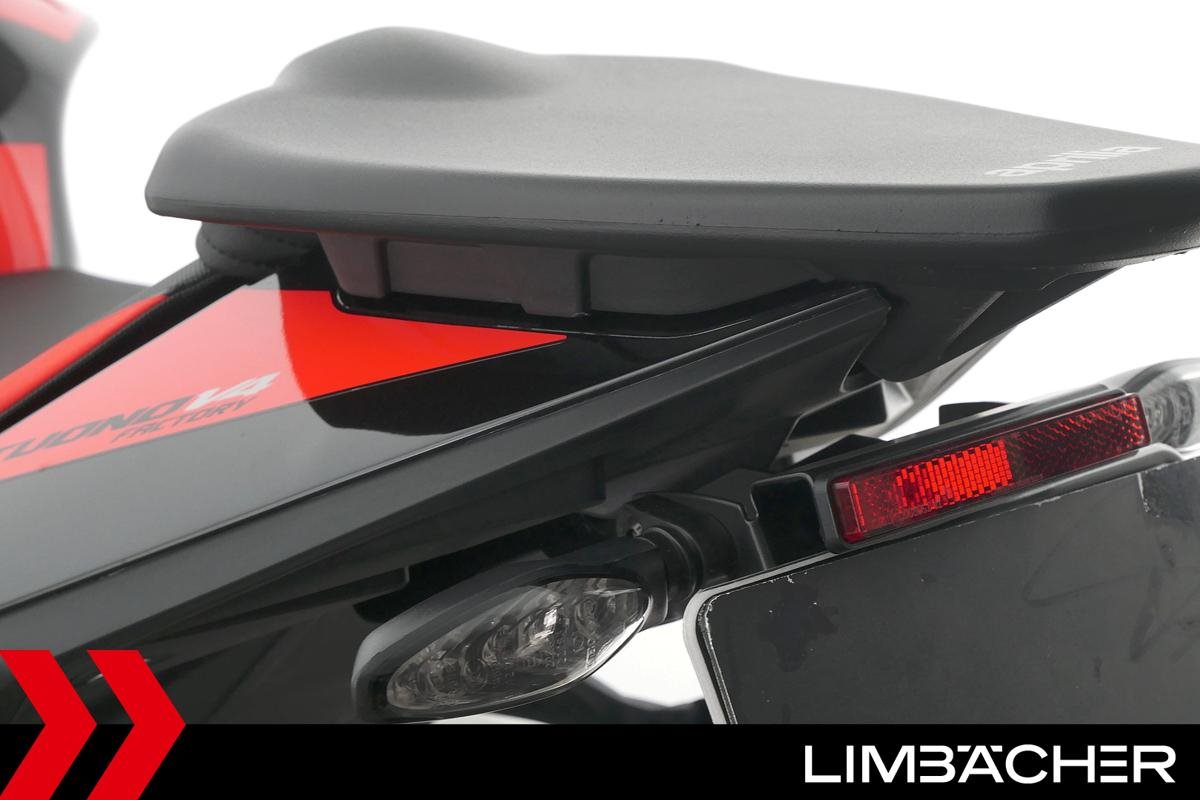 Eine scheckheftgepflegte Aprilia Tuono V4 1100 Factory aus erster Hand in Topzustand mit kurzem Kennzeichenhalter und Montageheber-Aufnahmen.
