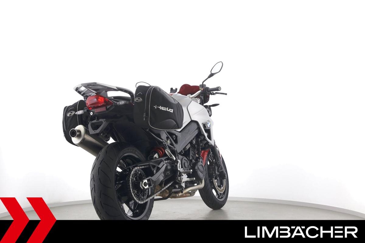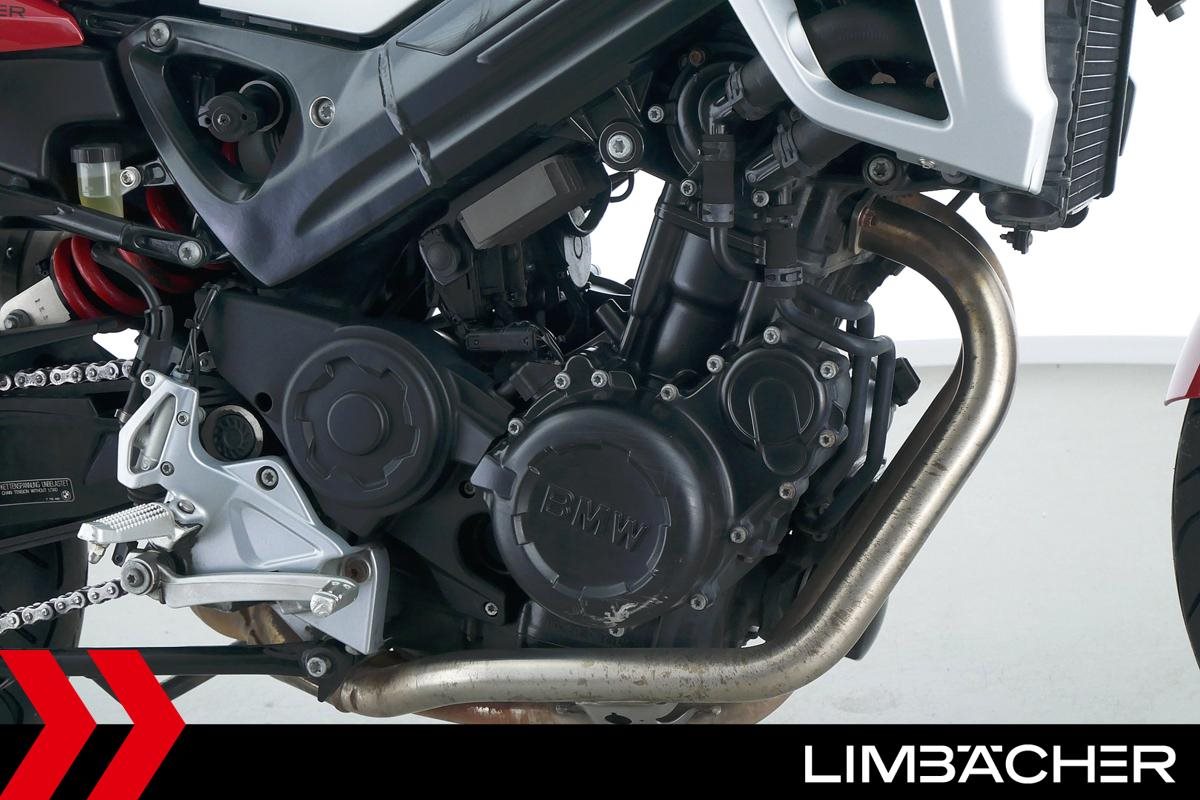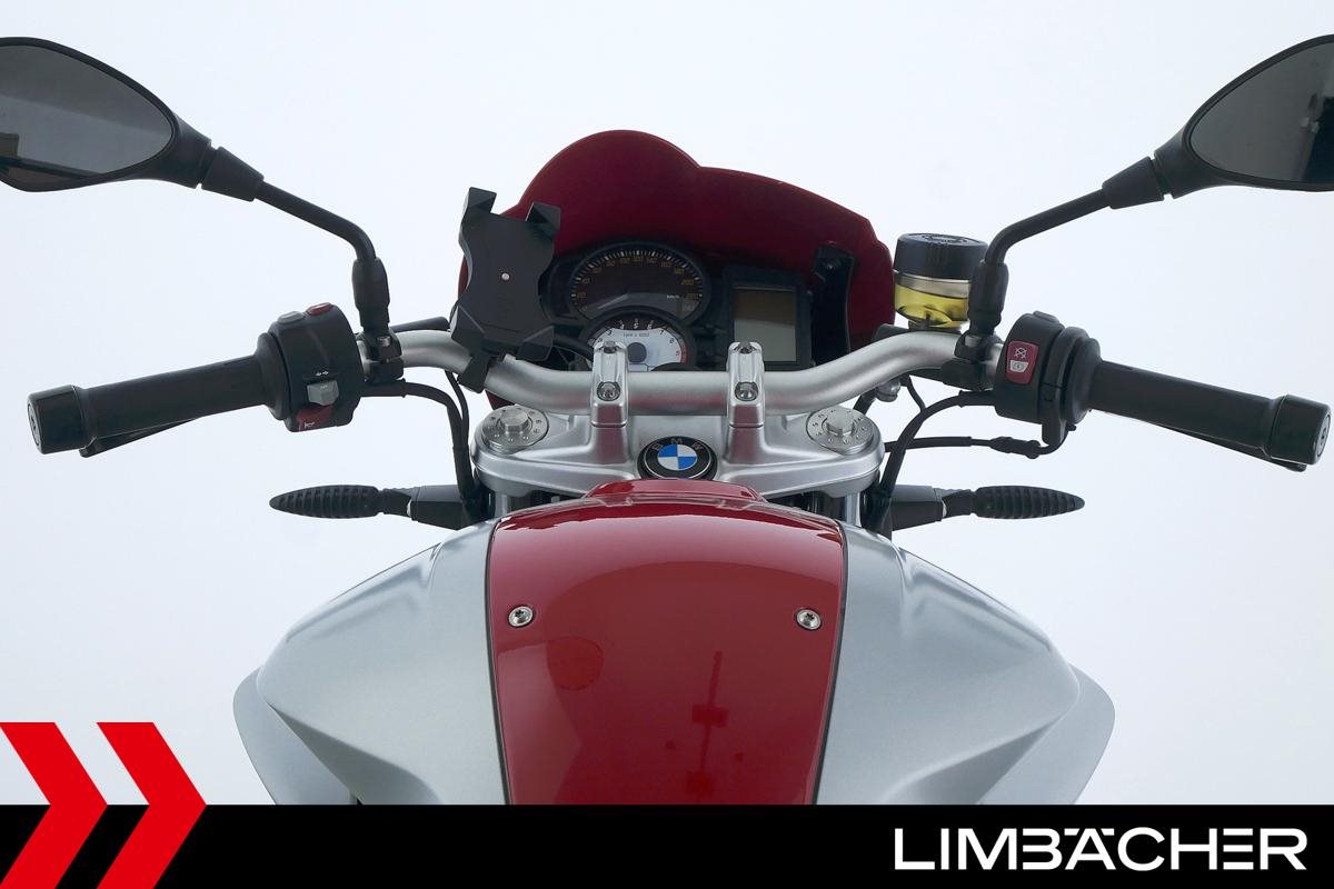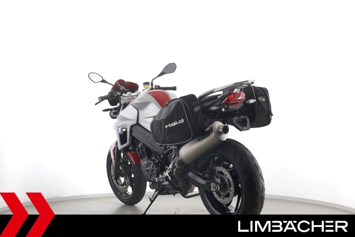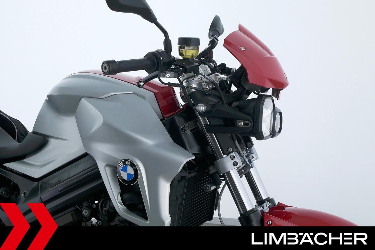 Eine scheckheftgepflegte BMW F 800 R in gepflegtem Zustand u.a. mit Akrapovic-Endschalldämpfer sowie VTrec-Brems- und -Kupplungshebel.