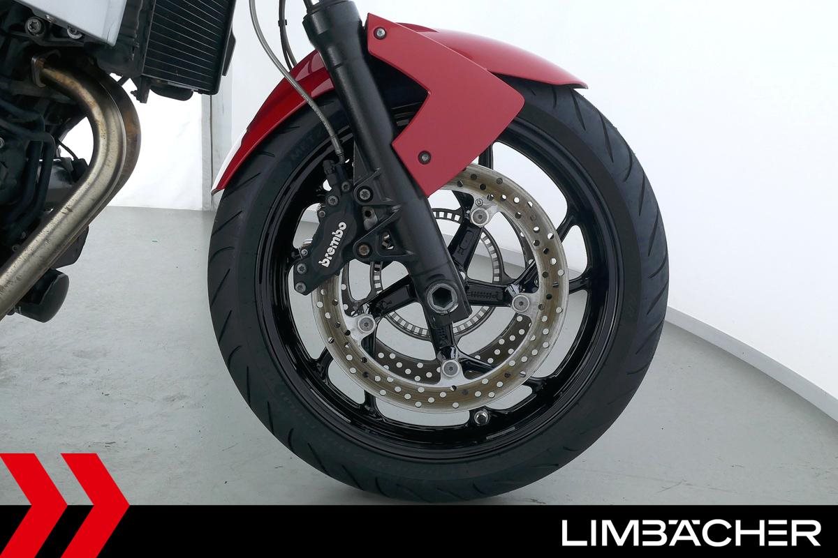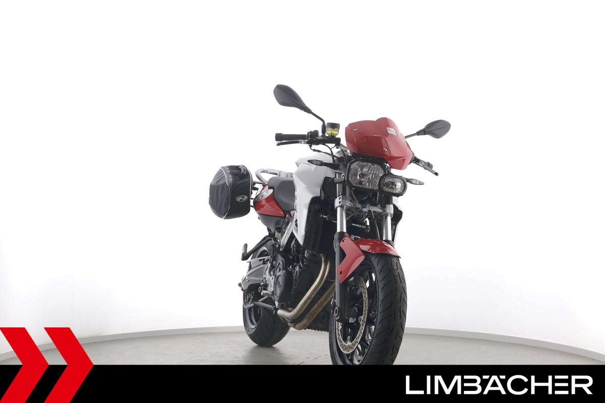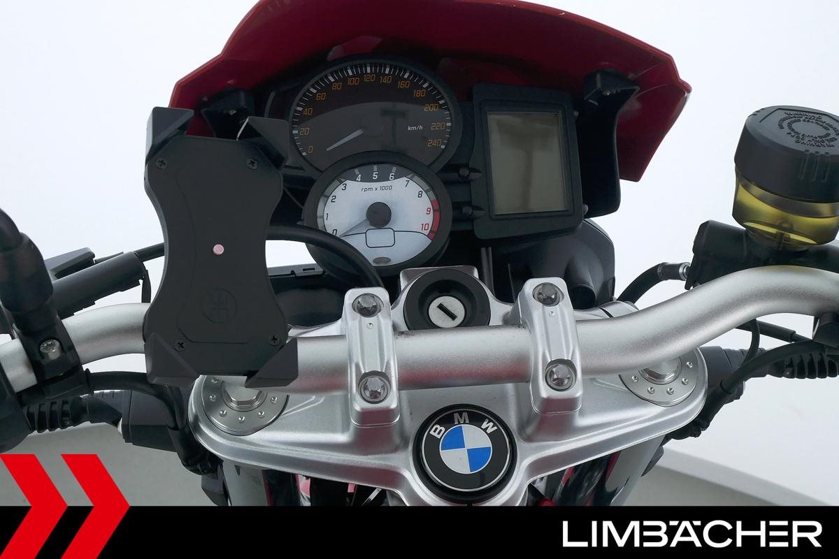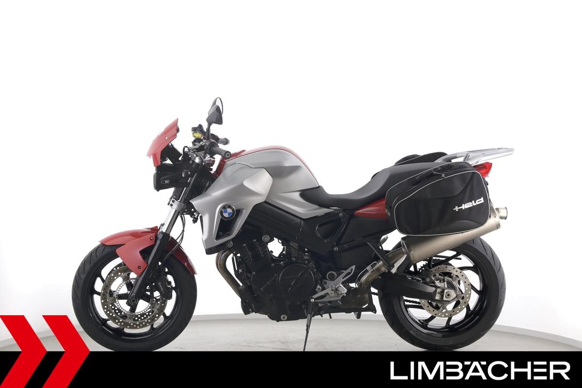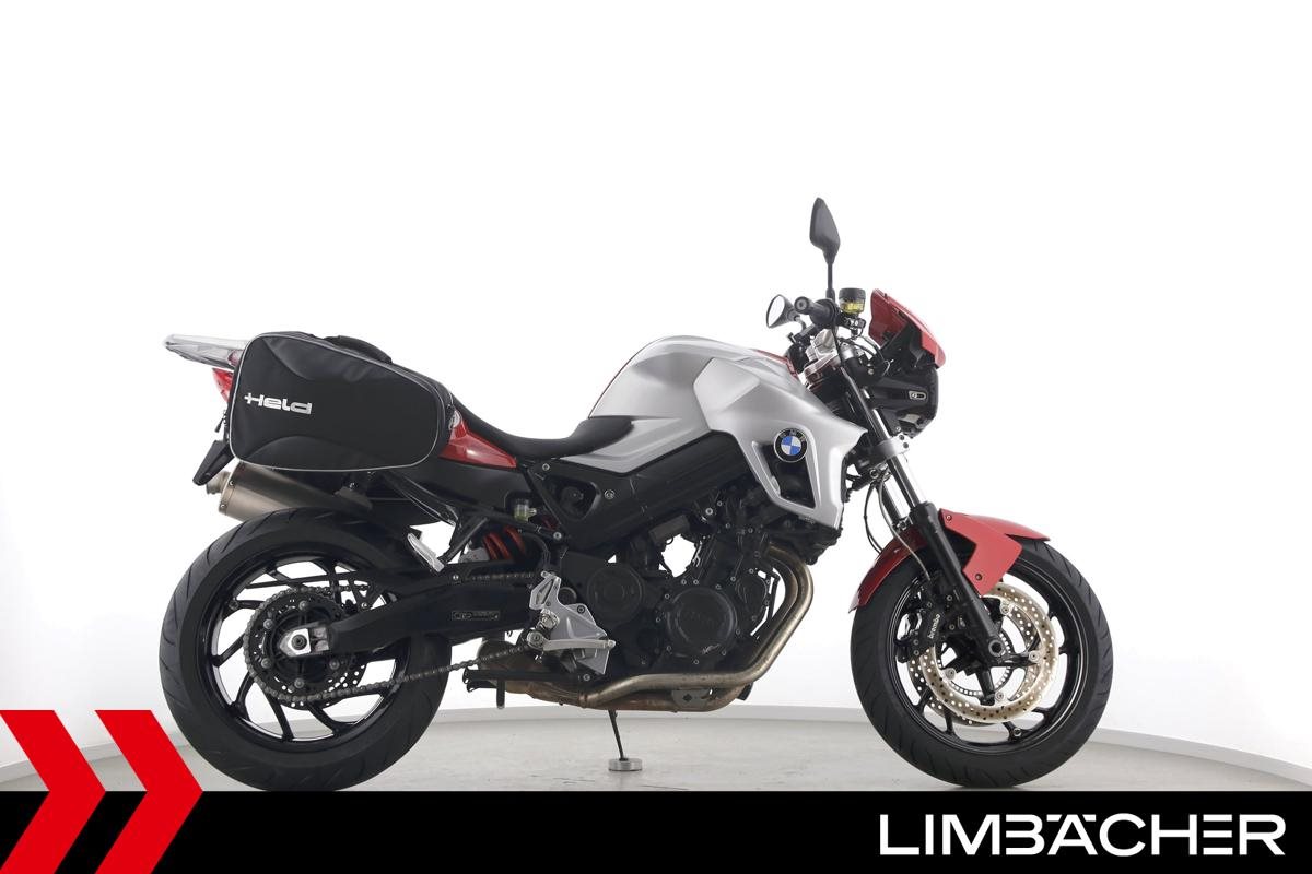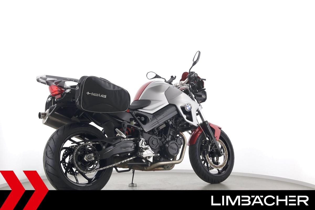 Eine scheckheftgepflegte BMW F 800 R in gepflegtem Zustand u.a. mit Akrapovic-Endschalldämpfer sowie VTrec-Brems- und -Kupplungshebel.