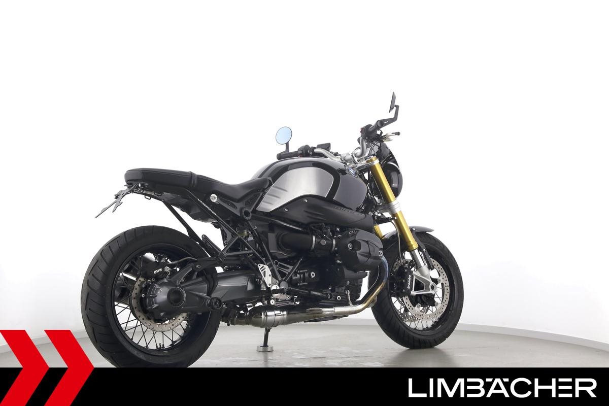 Eine BMW R nineT in sehr gepflegtem Zustand u.a. mit Akrapovic-Doppel-Endschalldämpfer sowie Wilbers-Federbein.