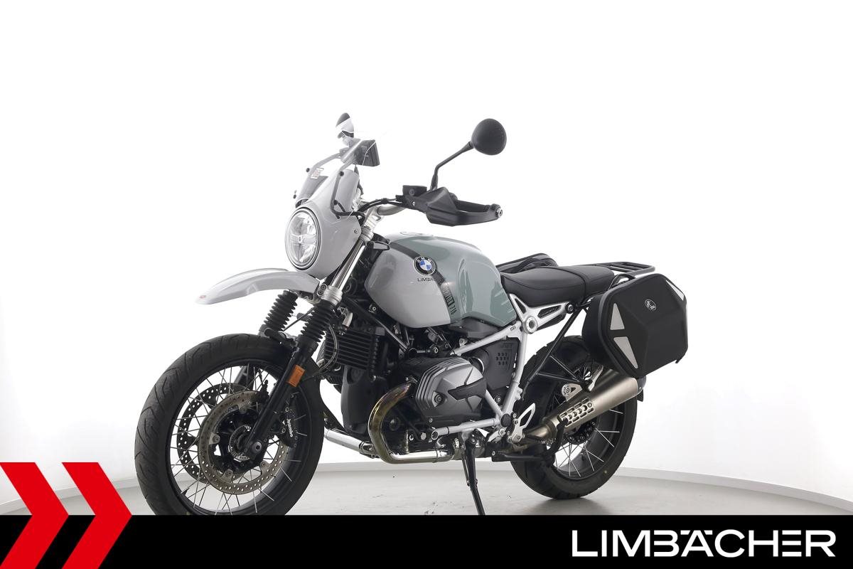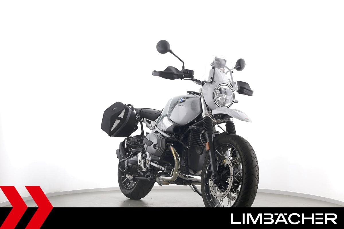 Eine scheckheftgepflegte BMW R nineT Urban G/S aus zweiter Hand in sehr gepflegtem Zustand u.a. mit Koffern und Heckträger von Hepco Becker sowie Griffschutz.