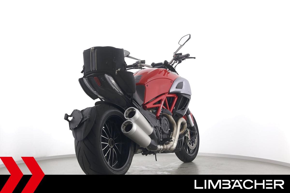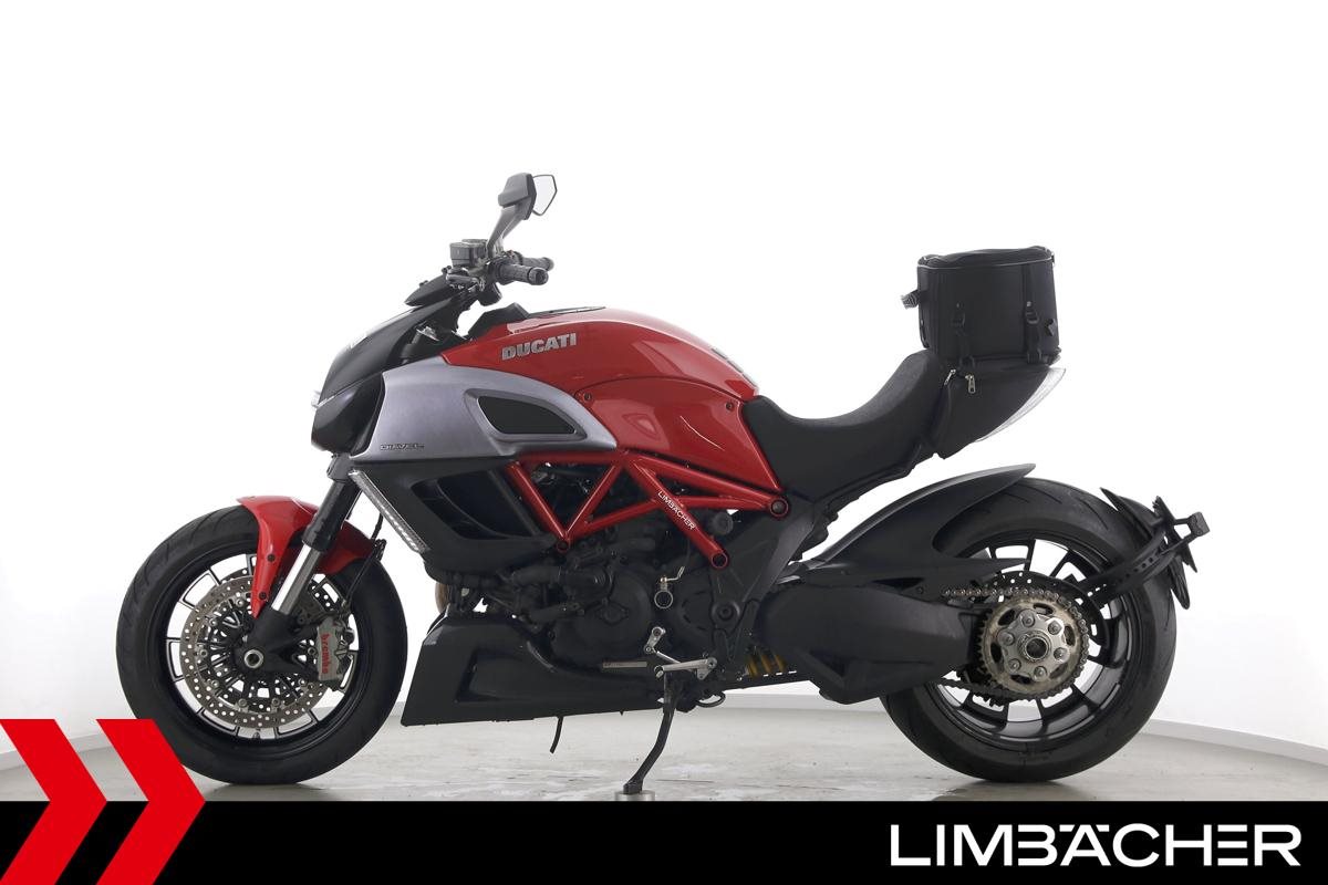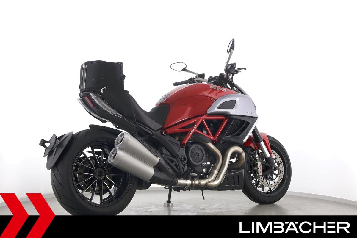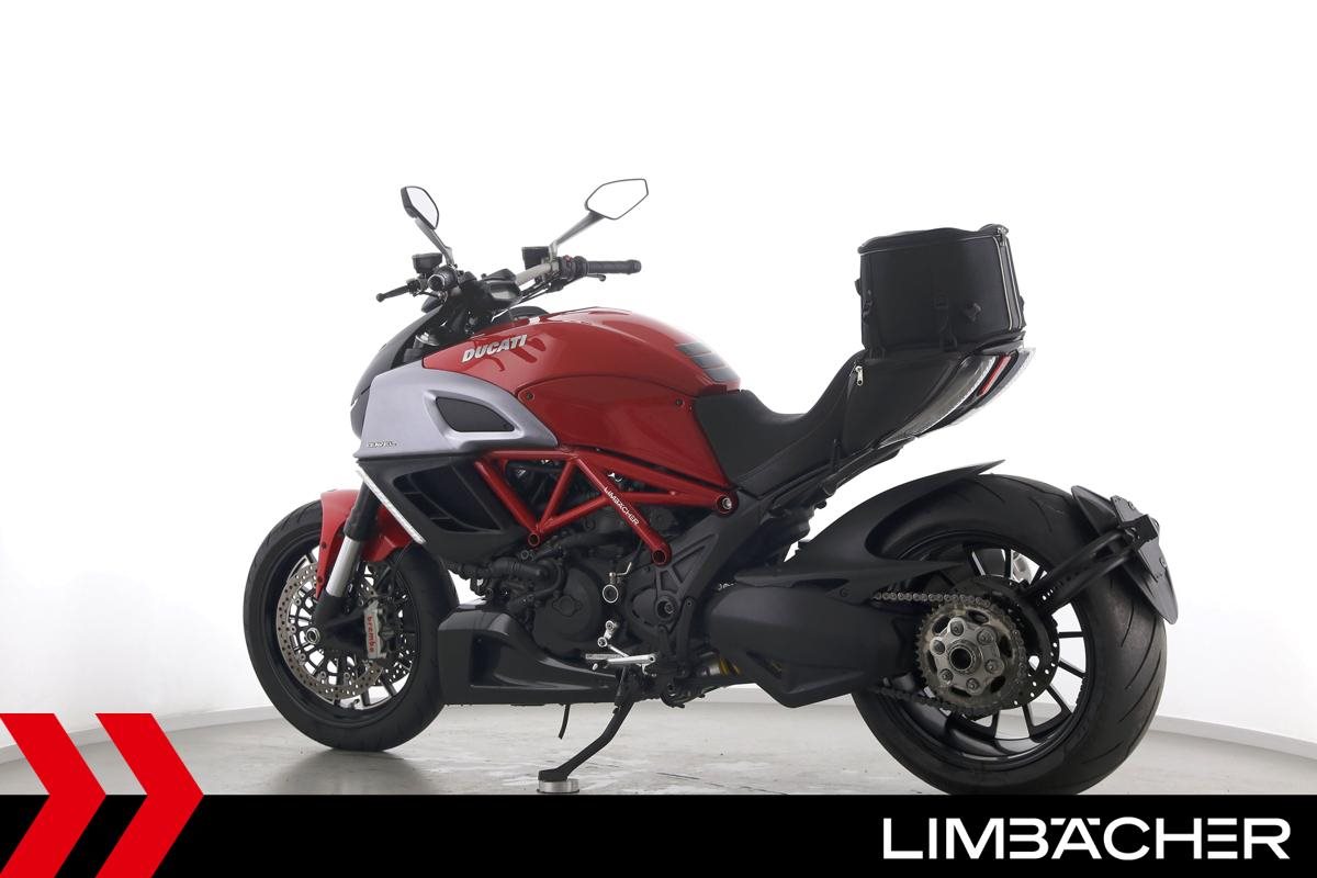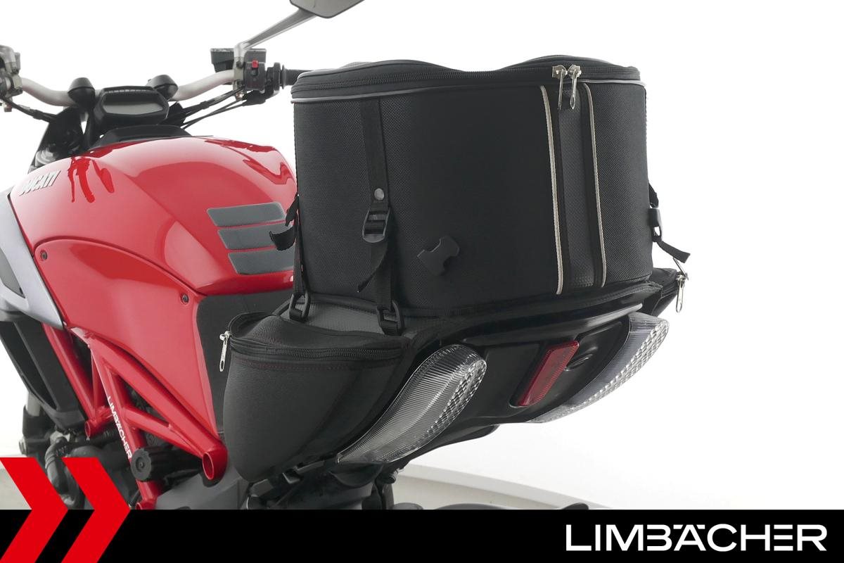 Eine scheckheftgepflegte Ducati Diavel in gepflegtem Zustand u.a. mit Originalausstattung sowie großer Hecktasche.