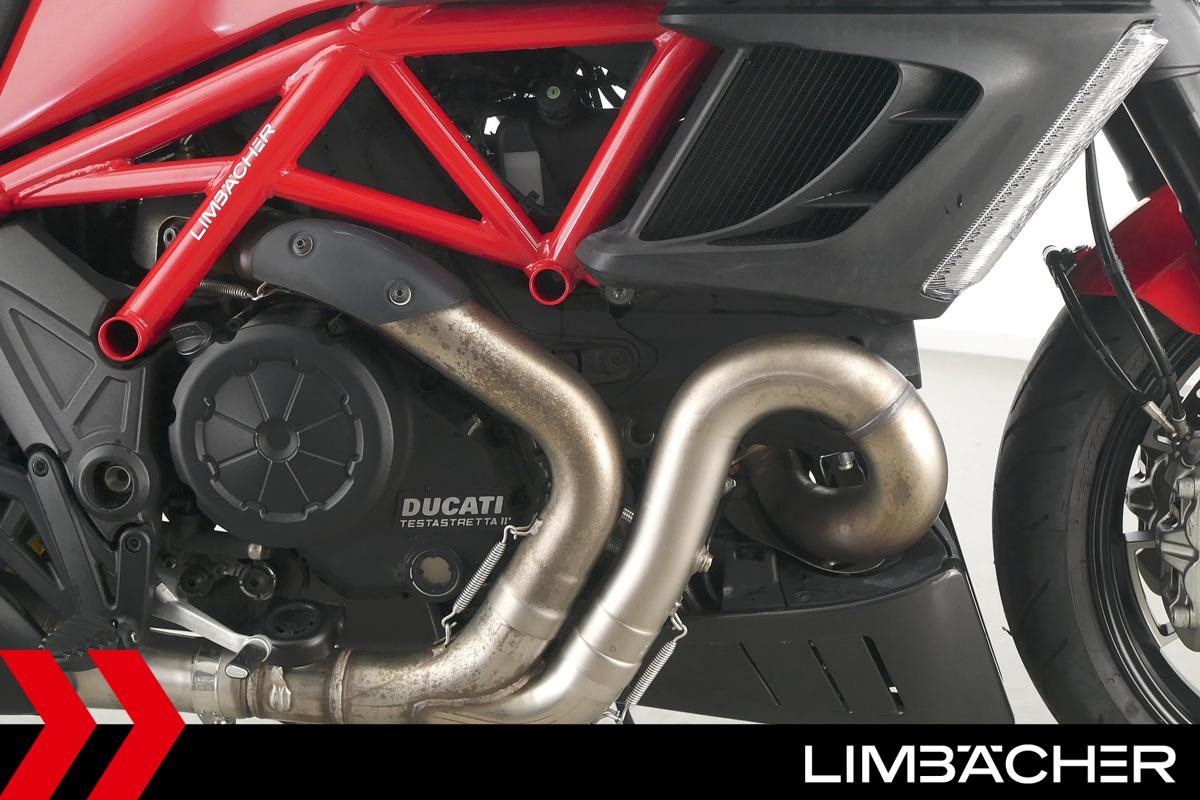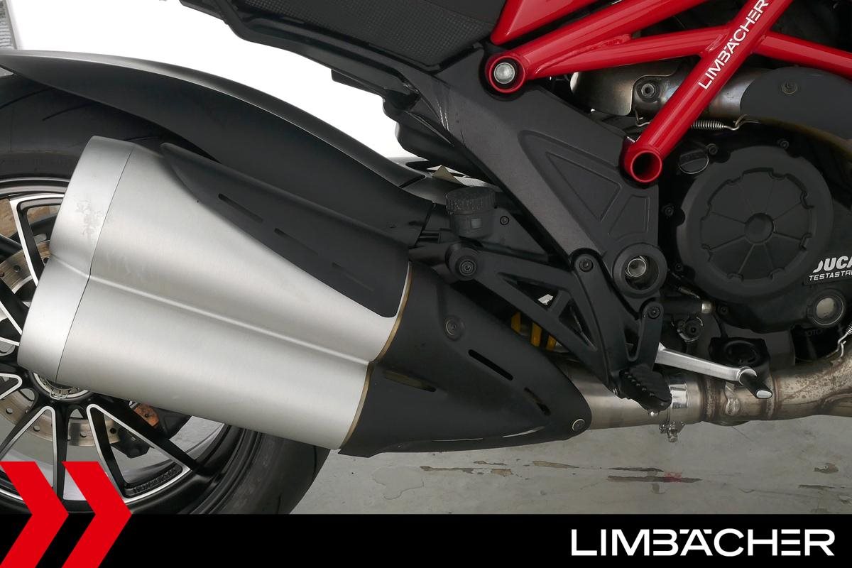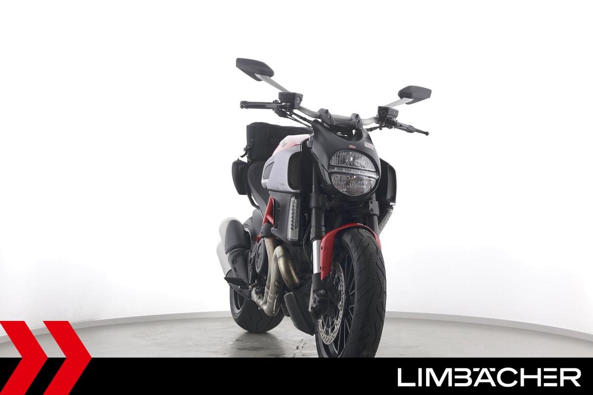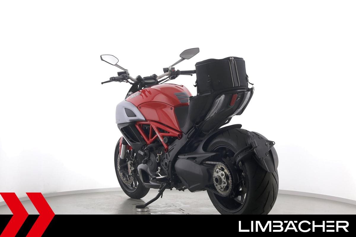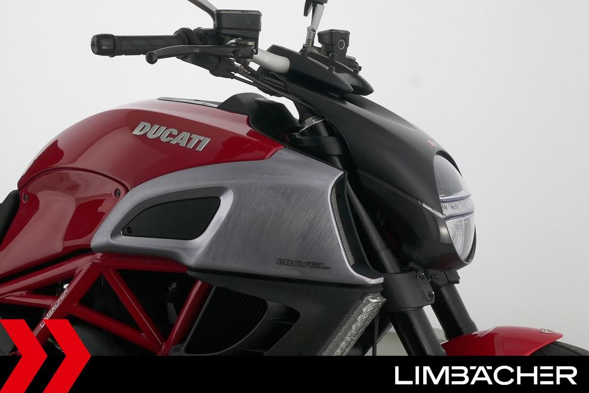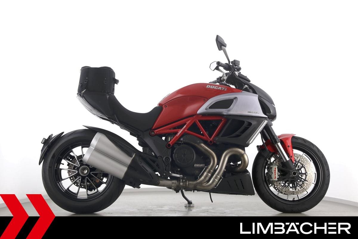 Eine scheckheftgepflegte Ducati Diavel in gepflegtem Zustand u.a. mit Originalausstattung sowie großer Hecktasche.
