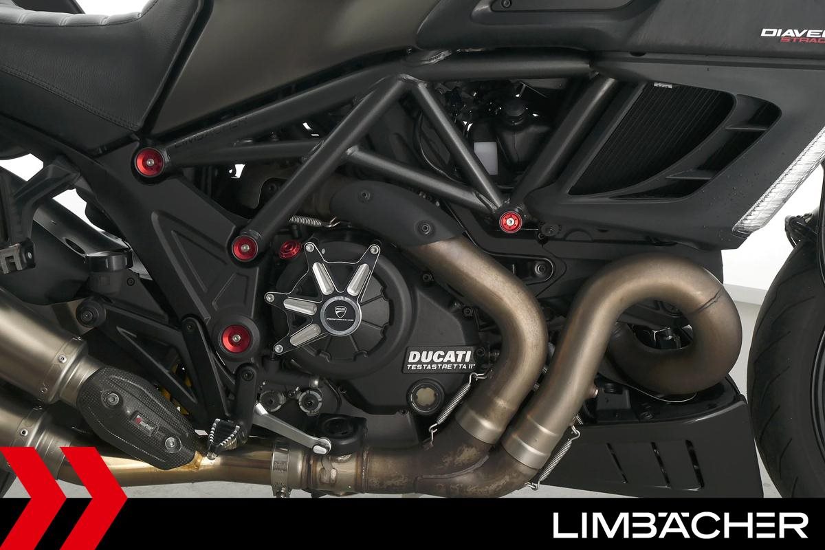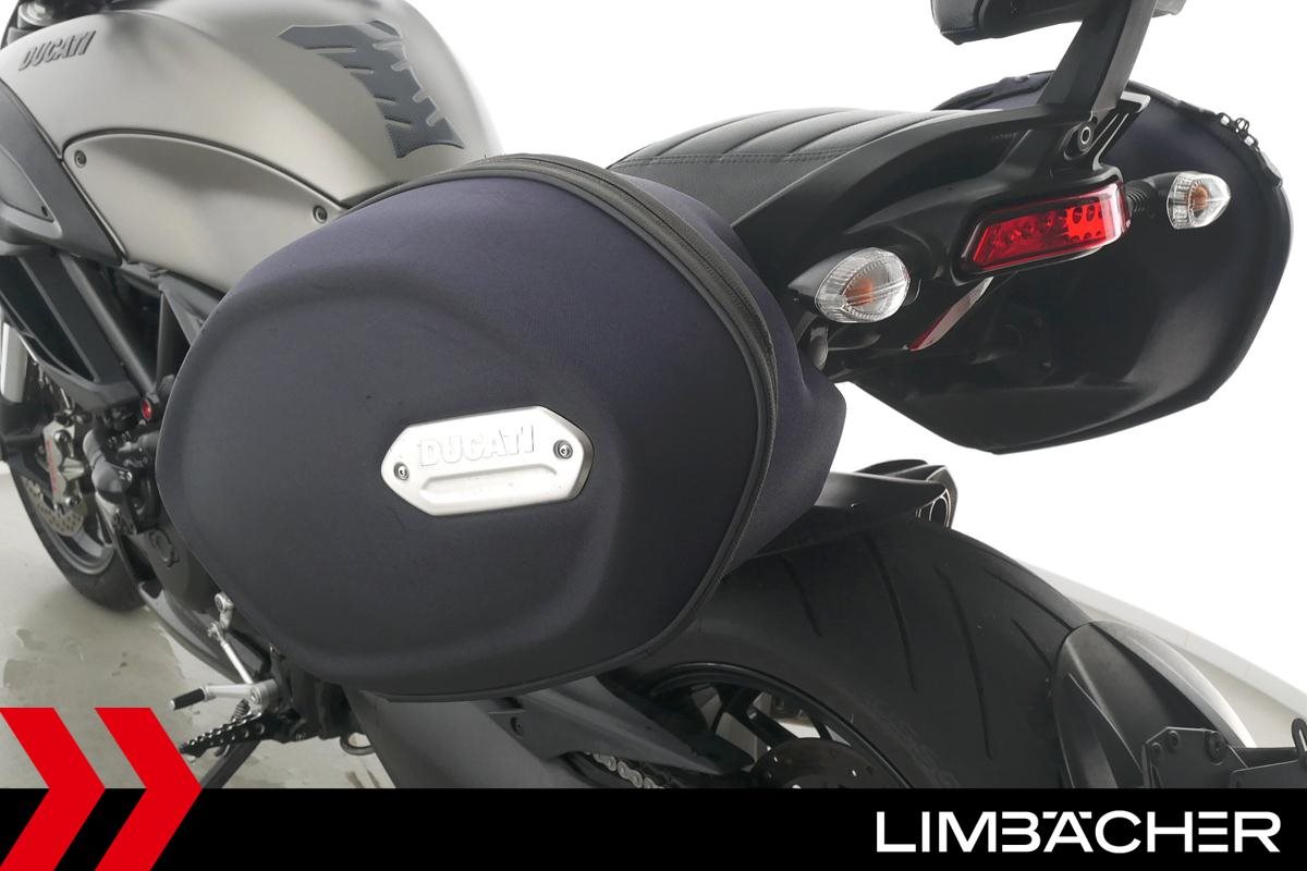 Eine scheckheftgepflegte Ducati Diavel Strada in sehr gepflegtem Zustand u.a. mit Akrapovic-Doppel-Endschalldämpfer sowie Ducati-Softkoffer-System.