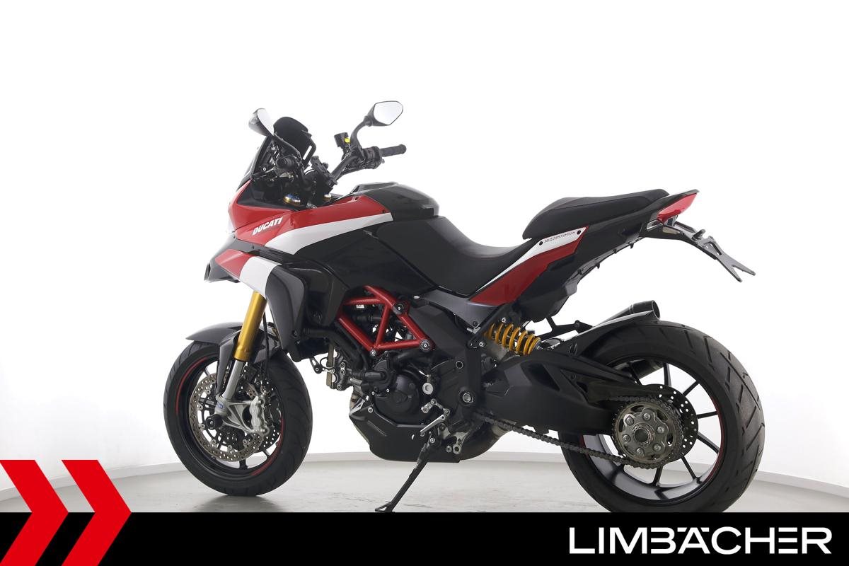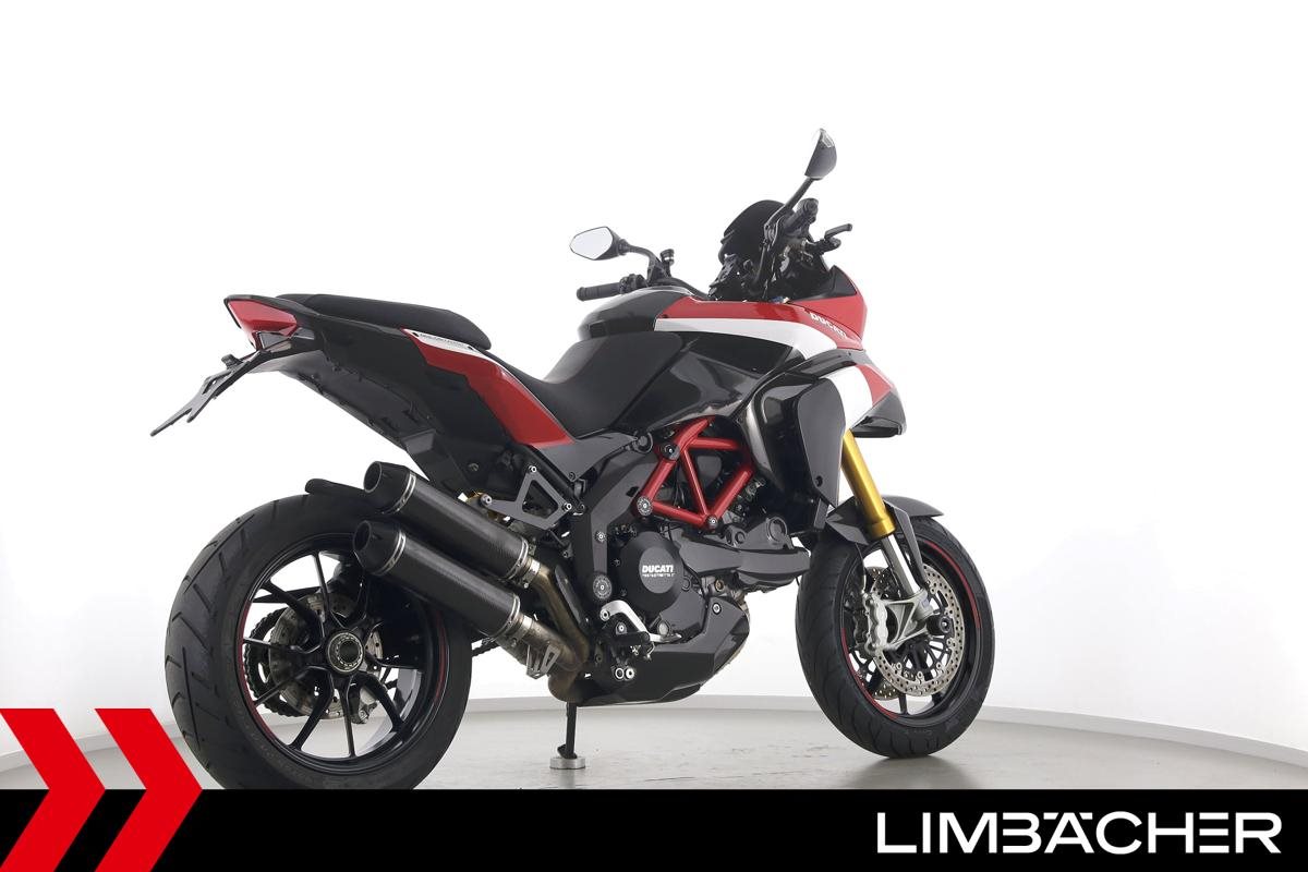 Eine Ducati Multistrada 1200 S Pikes Peak in gepflegtem Zustand u.a. mit QD-Auspuff und Öhlins-Fahrwerk.