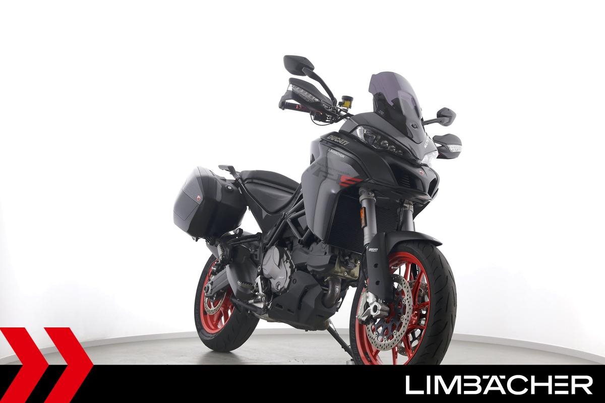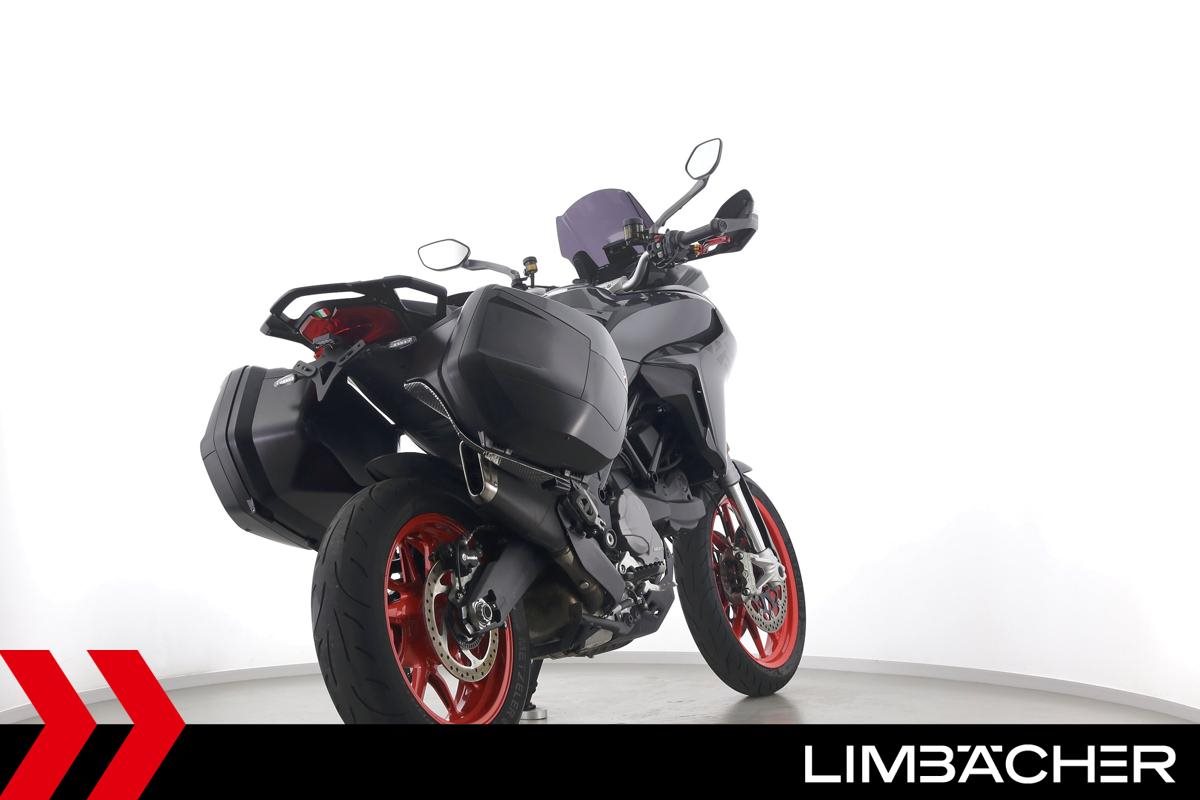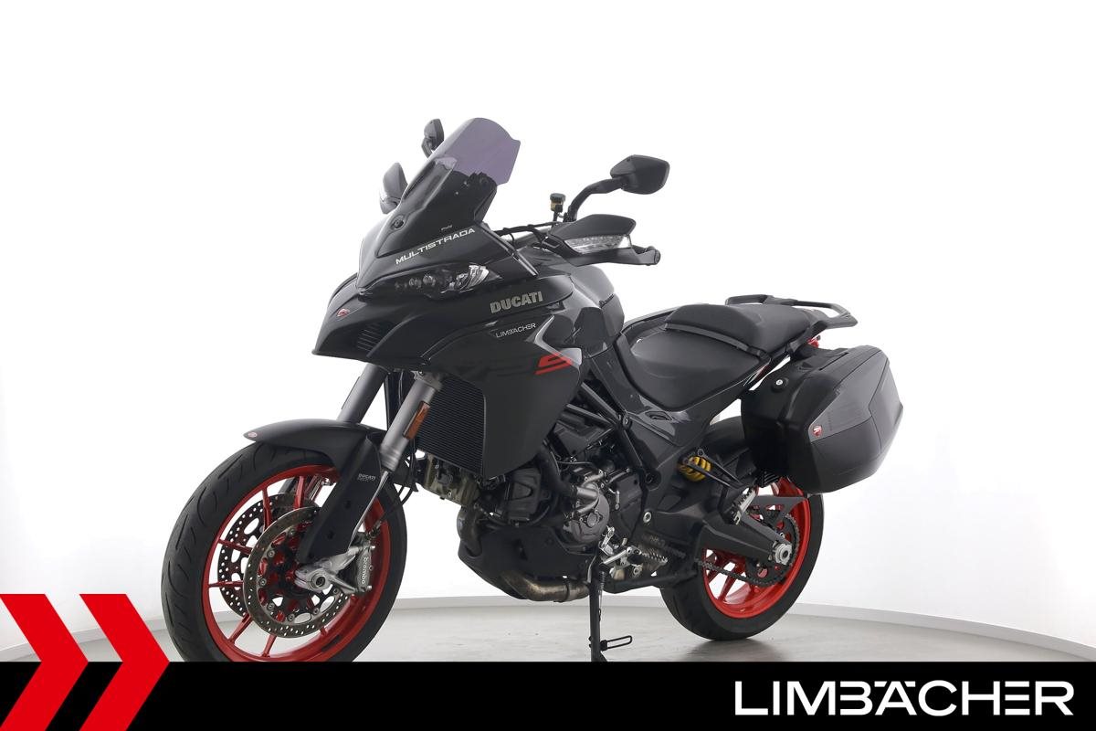 Eine Ducati Multistrada V2 S Travel aus zweiter Hand in sehr gepflegtem Zustand u.a. mit Ducati-Koffersystem und kurzem Kennzeichenhalter.
