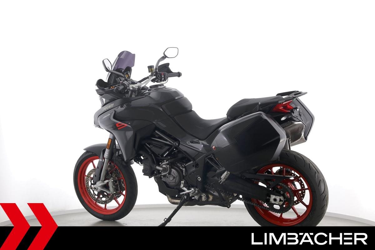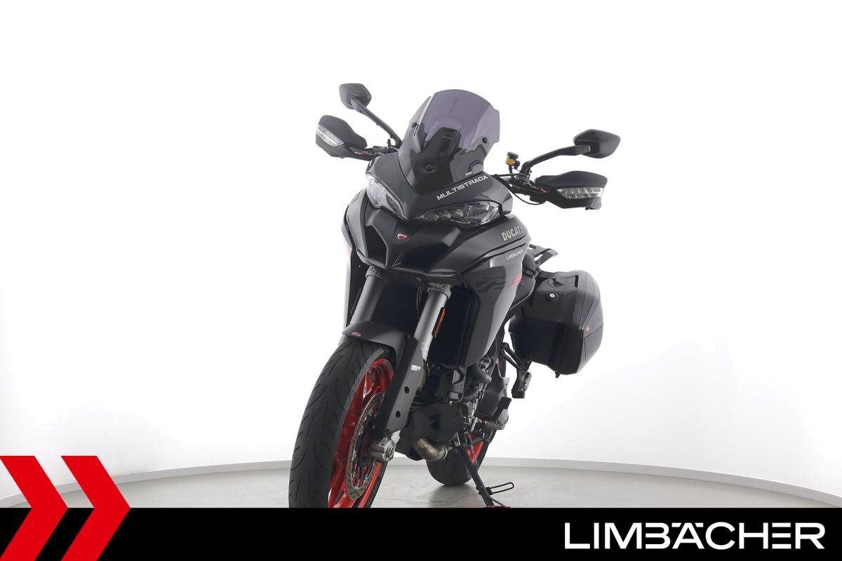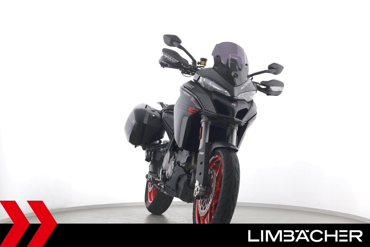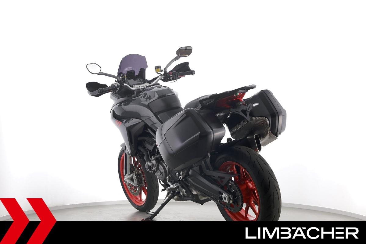 Eine Ducati Multistrada V2 S Travel aus zweiter Hand in sehr gepflegtem Zustand u.a. mit Ducati-Koffersystem und kurzem Kennzeichenhalter.