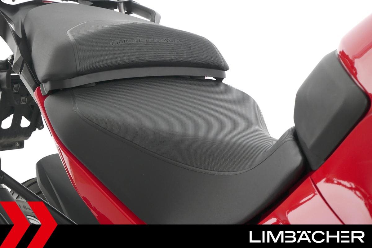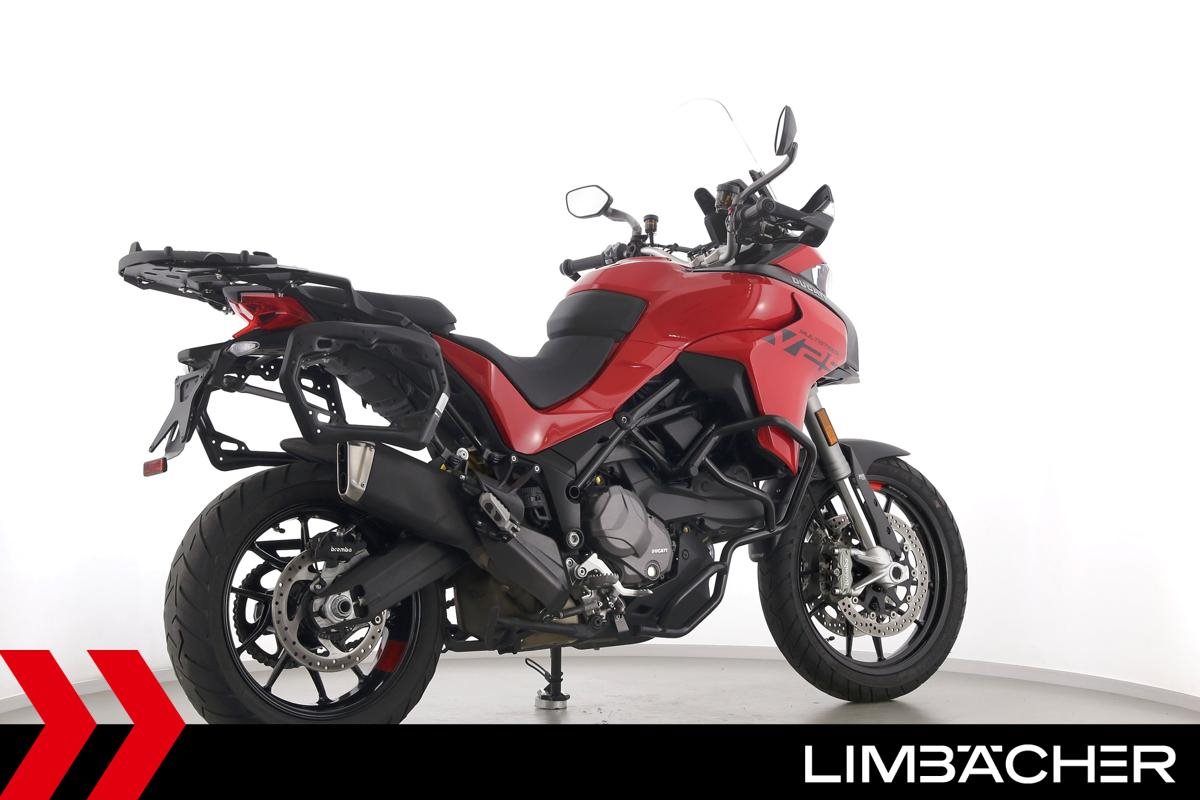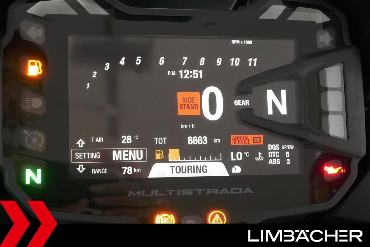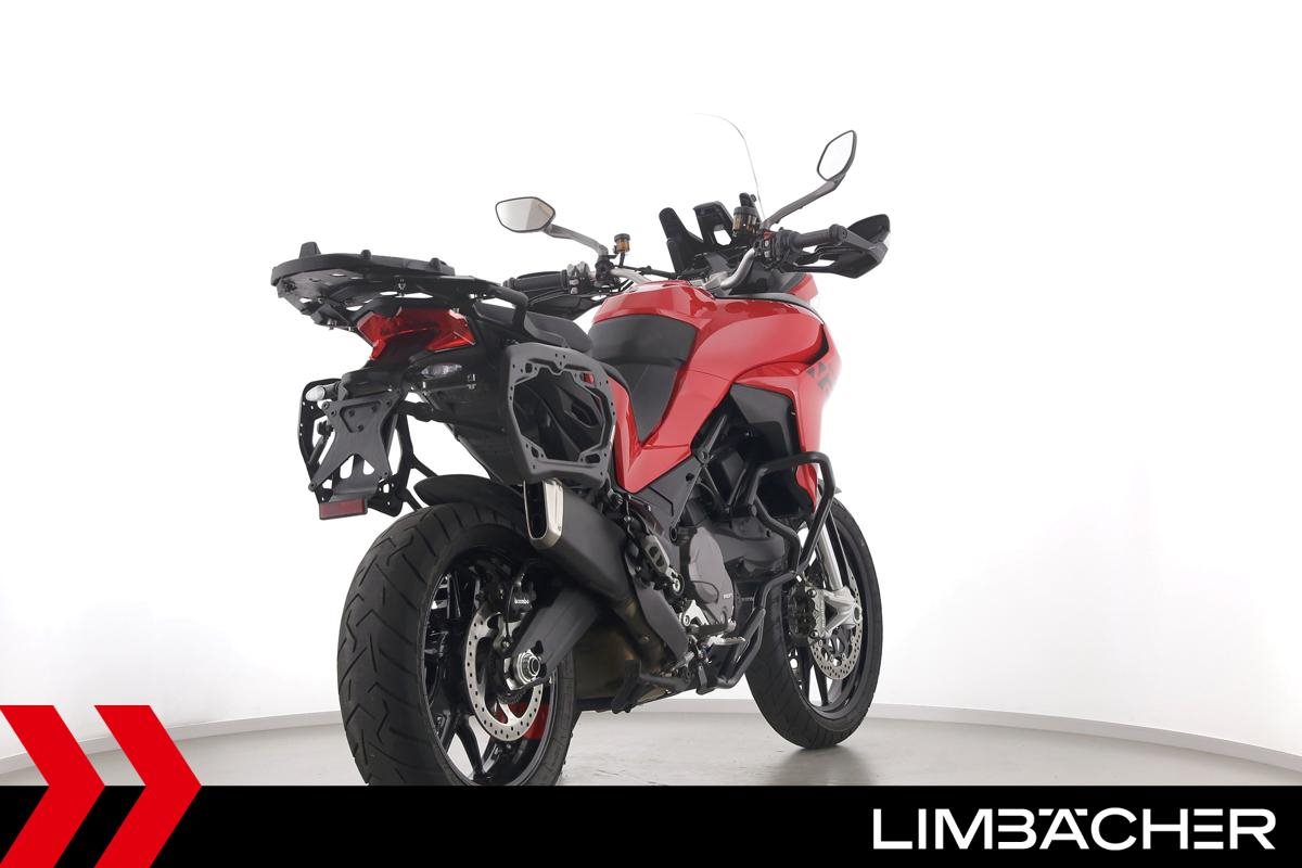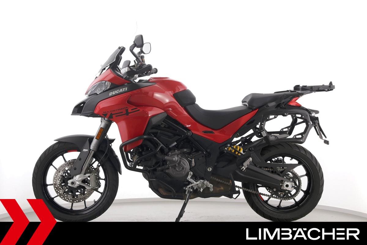 Eine Ducati Multistrada V2 S aus zweiter Hand in gepflegtem Zustand u.a. mit Kofferträger und Gepäckbrücke.