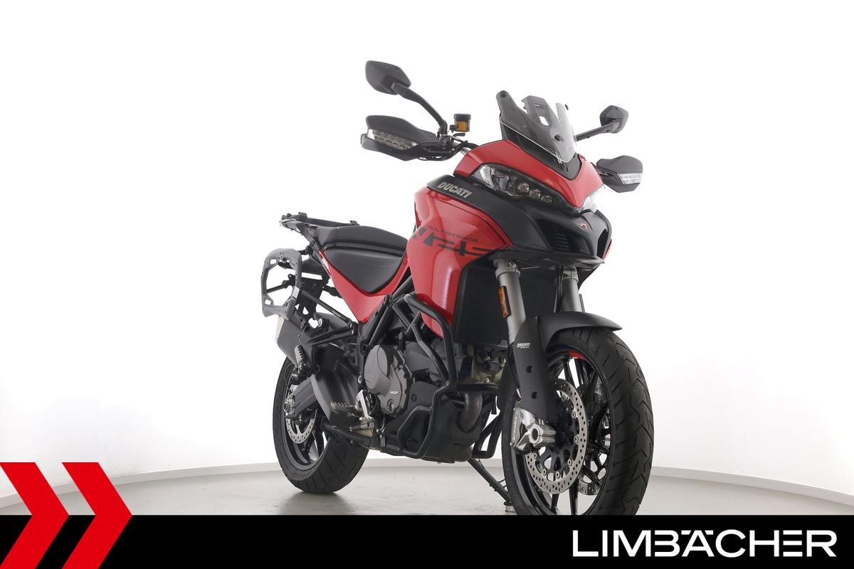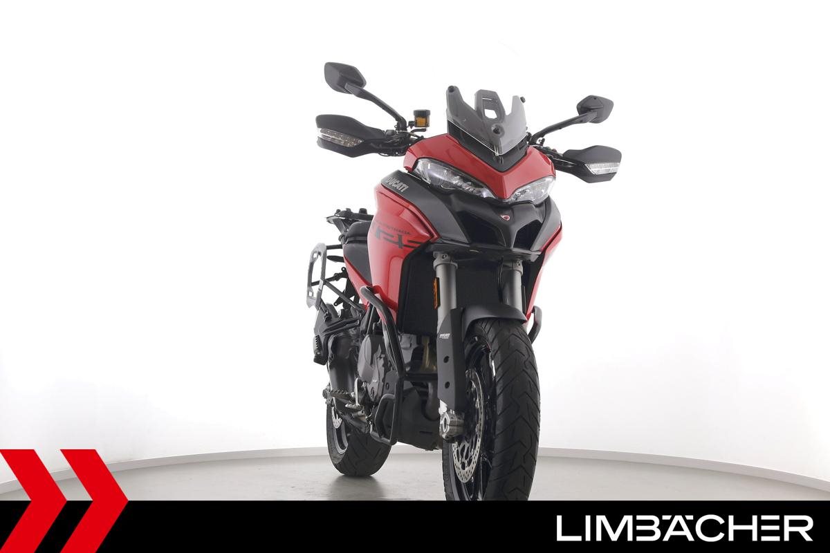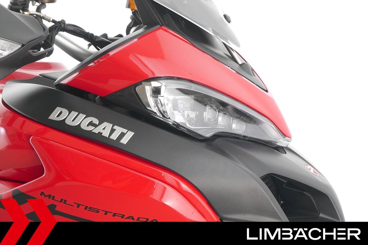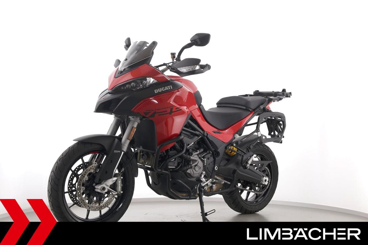 Eine Ducati Multistrada V2 S aus zweiter Hand in gepflegtem Zustand u.a. mit Kofferträger und Gepäckbrücke.