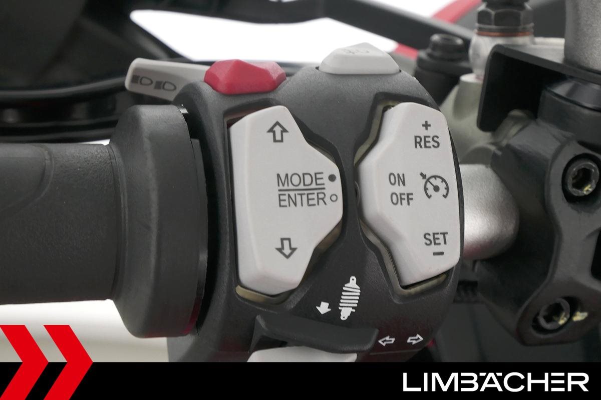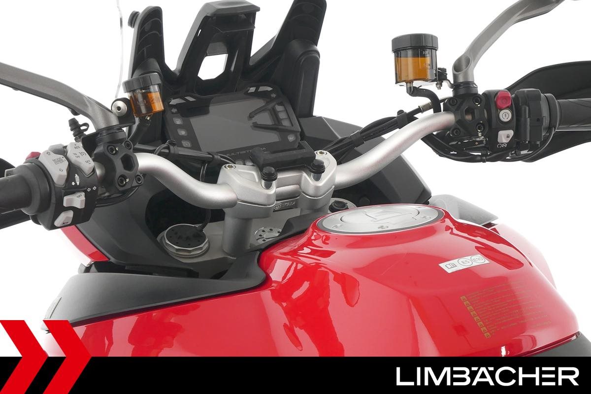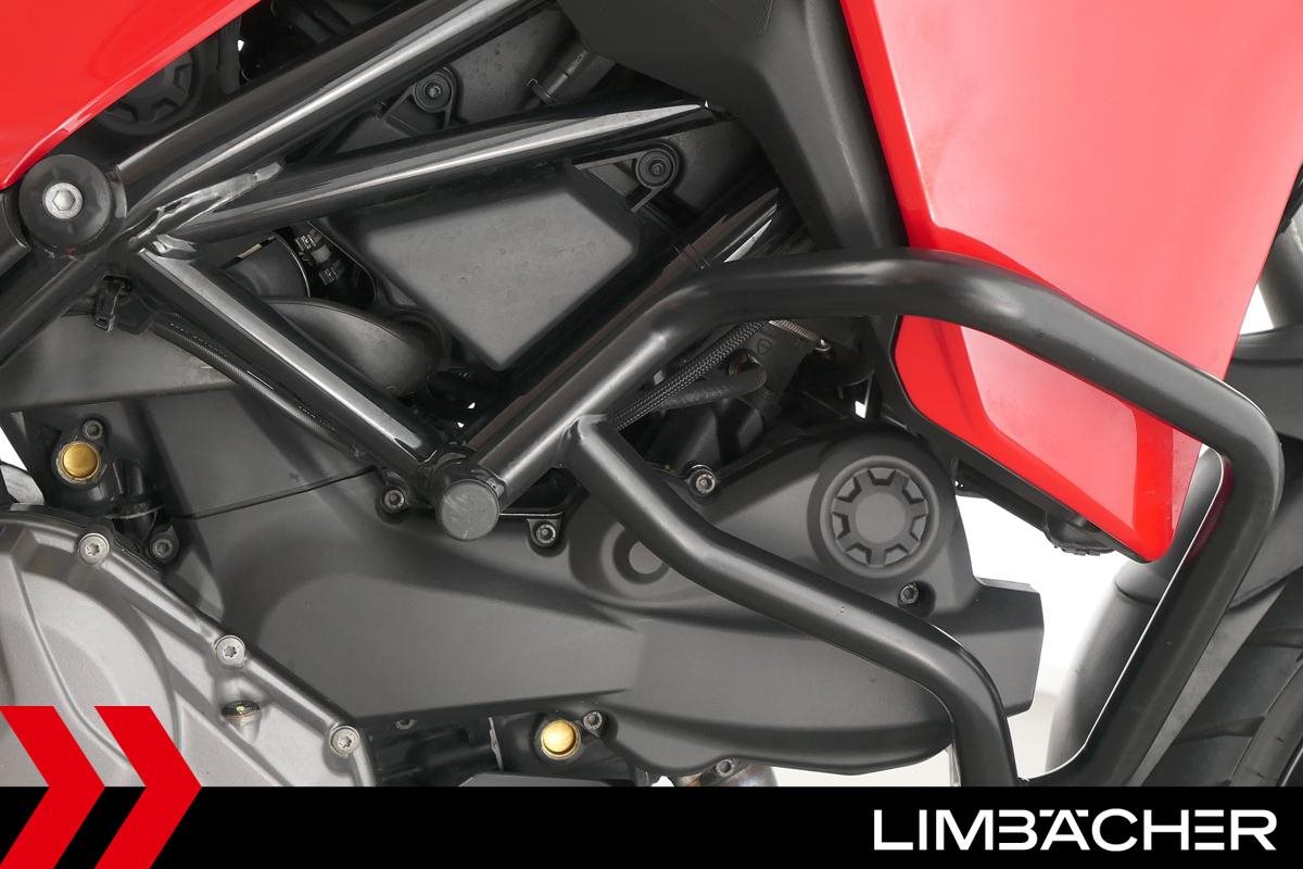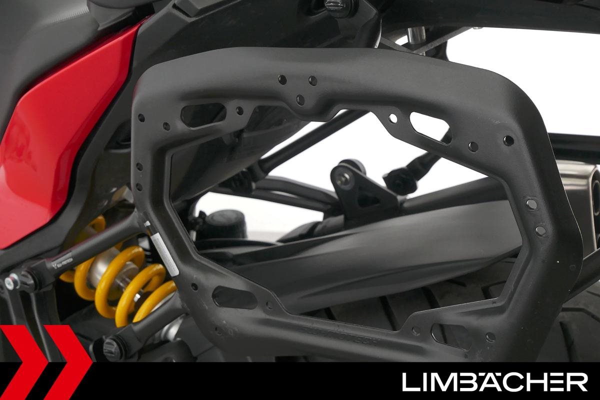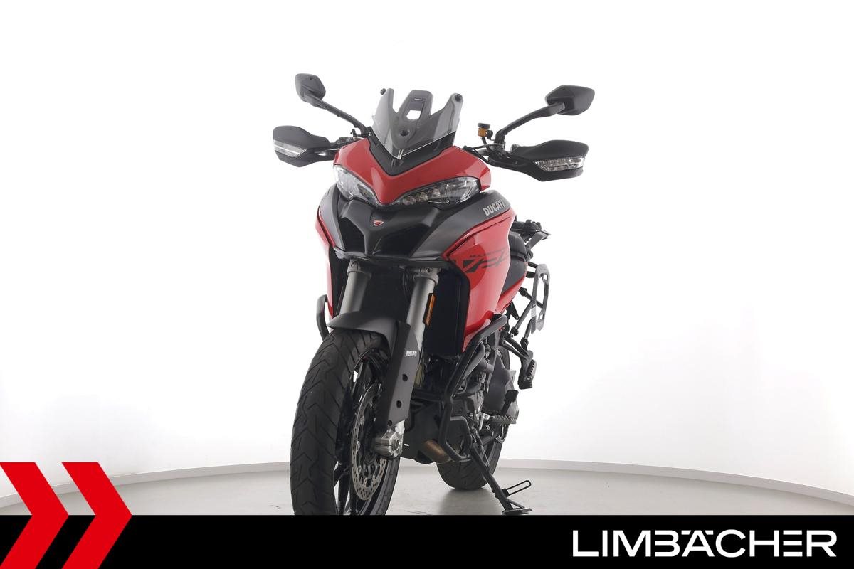 Eine Ducati Multistrada V2 S aus zweiter Hand in gepflegtem Zustand u.a. mit Kofferträger und Gepäckbrücke.