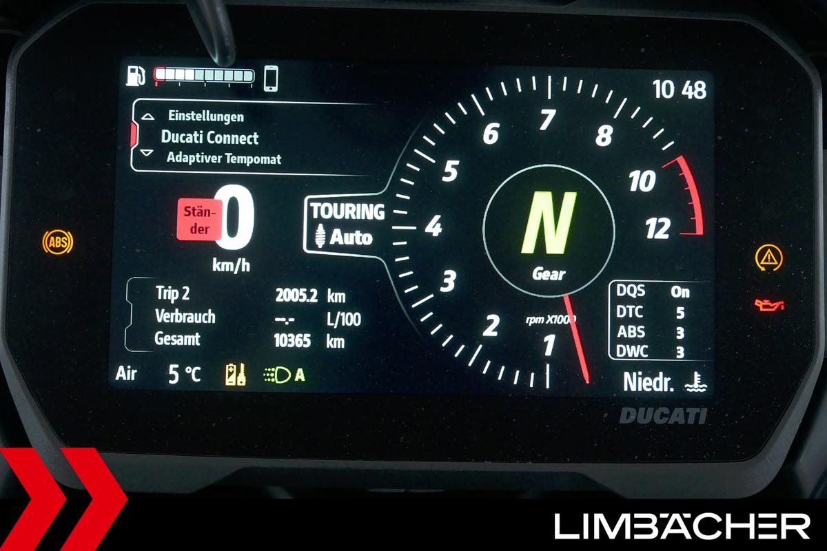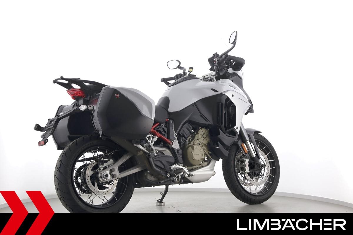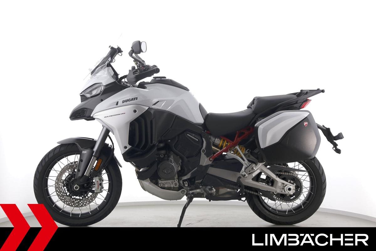 Eine Ducati Multistrada V4 S Full aus zweiter Hand in sehr gepflegtem Zustand u.a. mit Akrapovic-Endschalldämpfer sowie Ducati-Koffersystem gleichschließend.