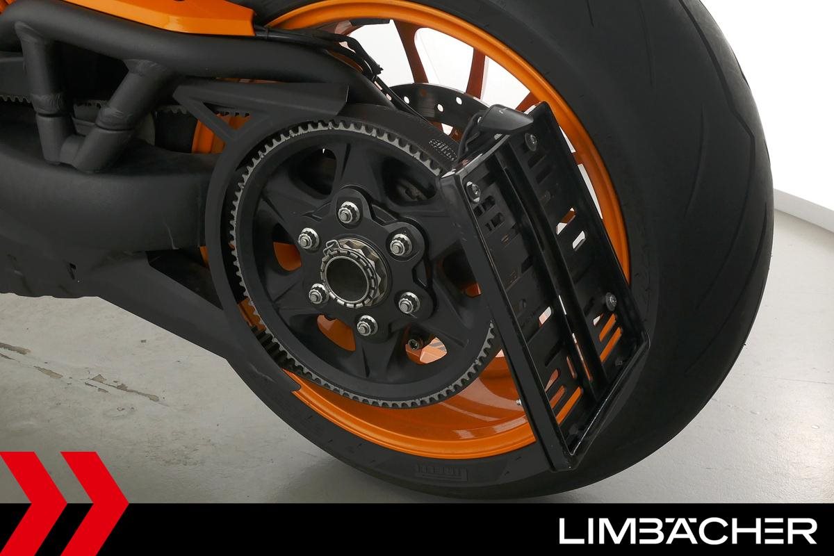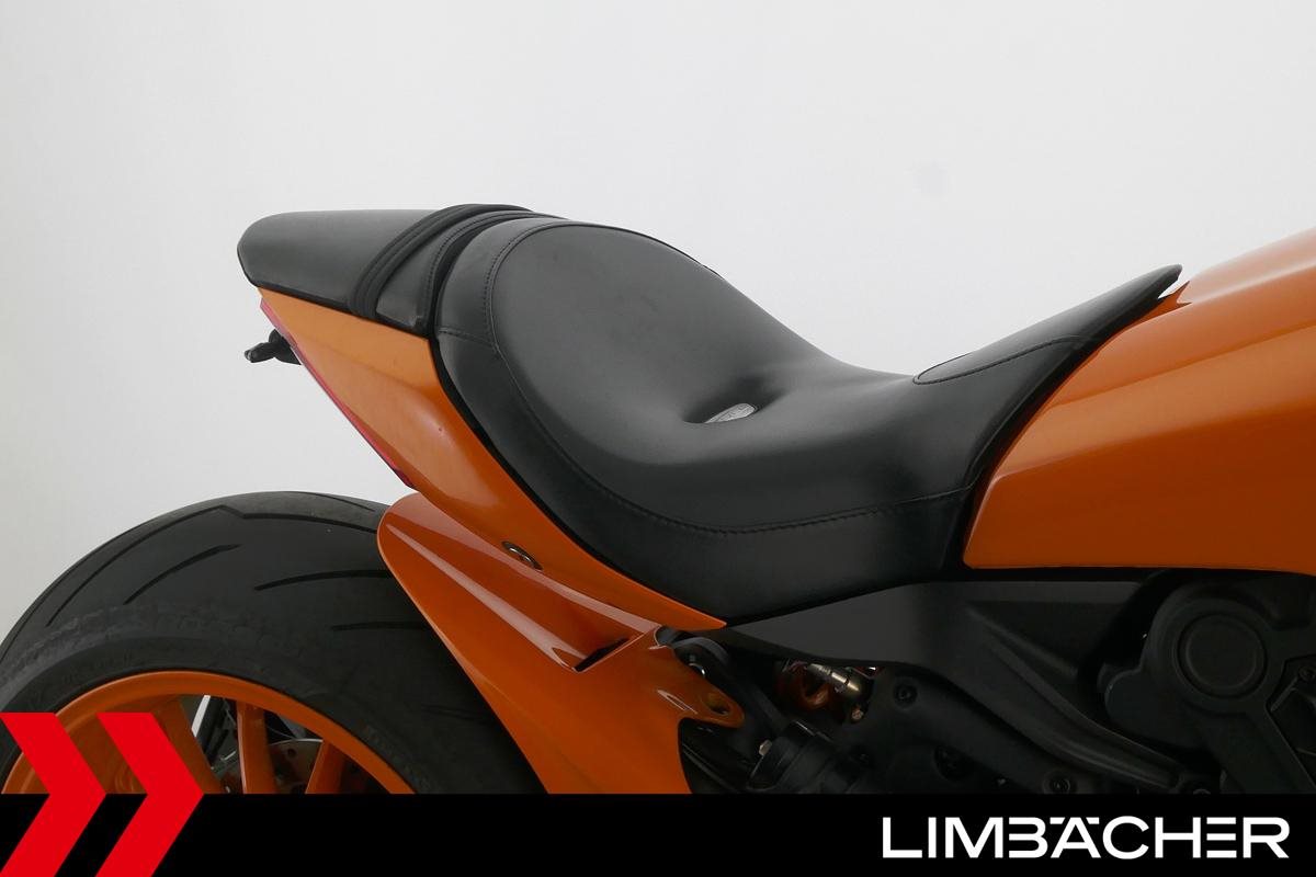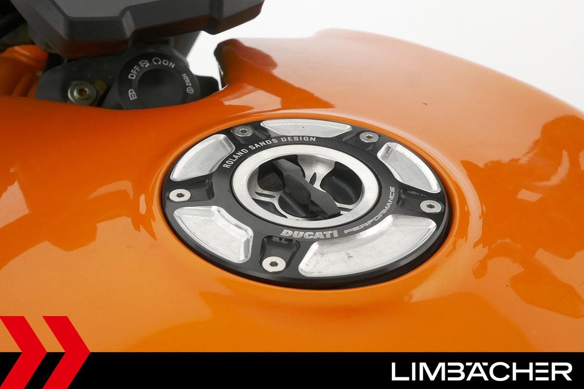 Eine scheckheftgepflegte Ducati XDiavel LLC aus zweiter Hand in Topzustand u.a. mit Sonderlackierung in Lambo-Orange sowie seitlichem Kennzeichenhalter von Rizoma.
