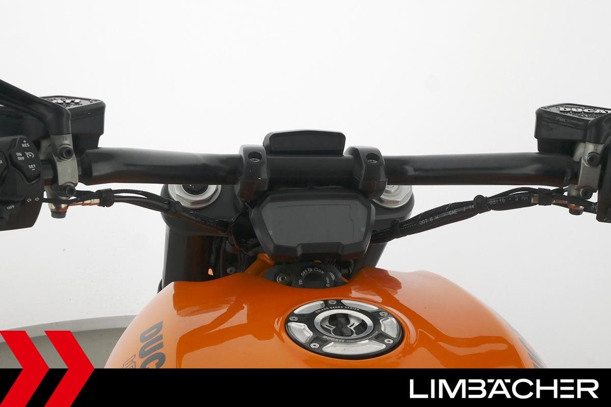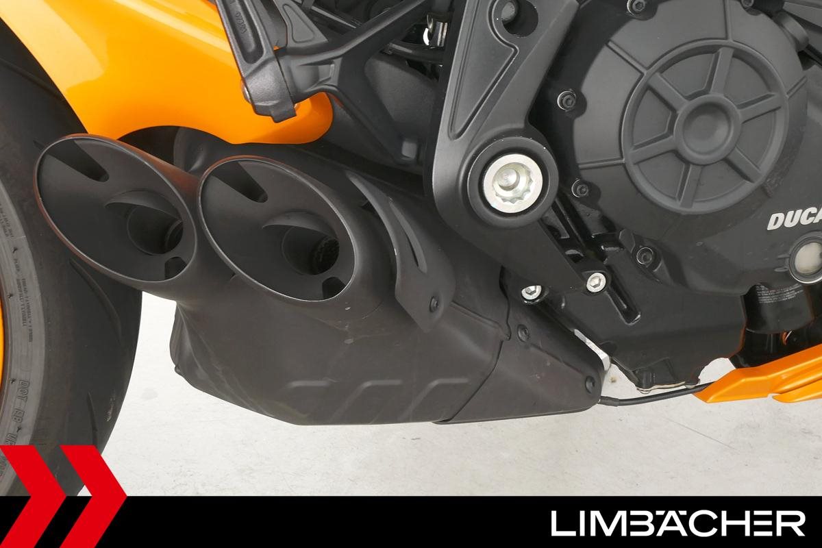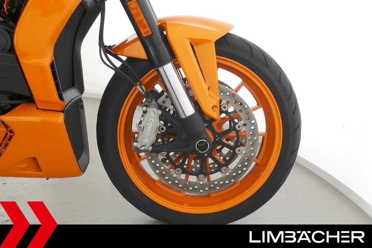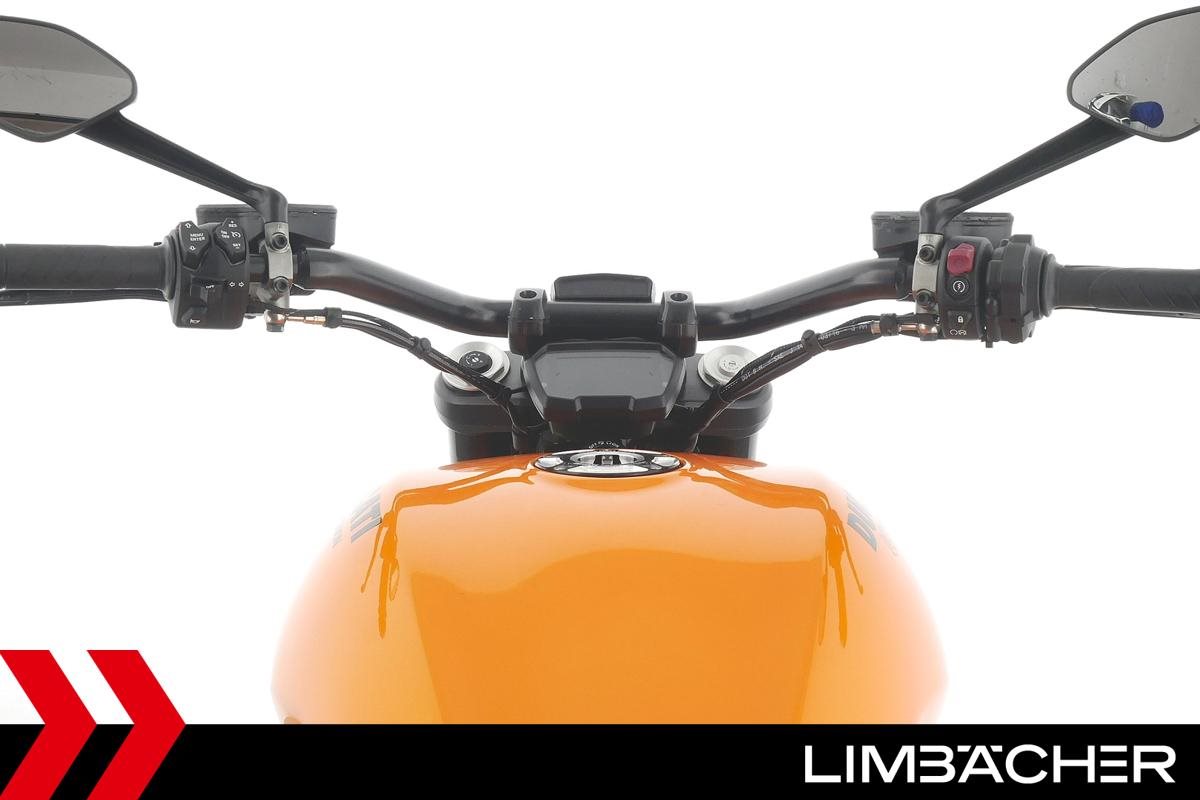 Eine scheckheftgepflegte Ducati XDiavel LLC aus zweiter Hand in Topzustand u.a. mit Sonderlackierung in Lambo-Orange sowie seitlichem Kennzeichenhalter von Rizoma.