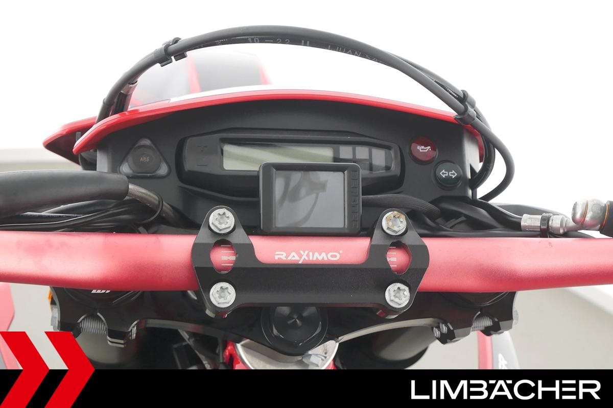 Eine GasGas SM 700 aus erster Hand in sehr gepflegtem Zustand u.a. mit LeoVince-Endaschalldämpfer mit Carbon und e-Nr sowie Raximo-Sonderlenker.