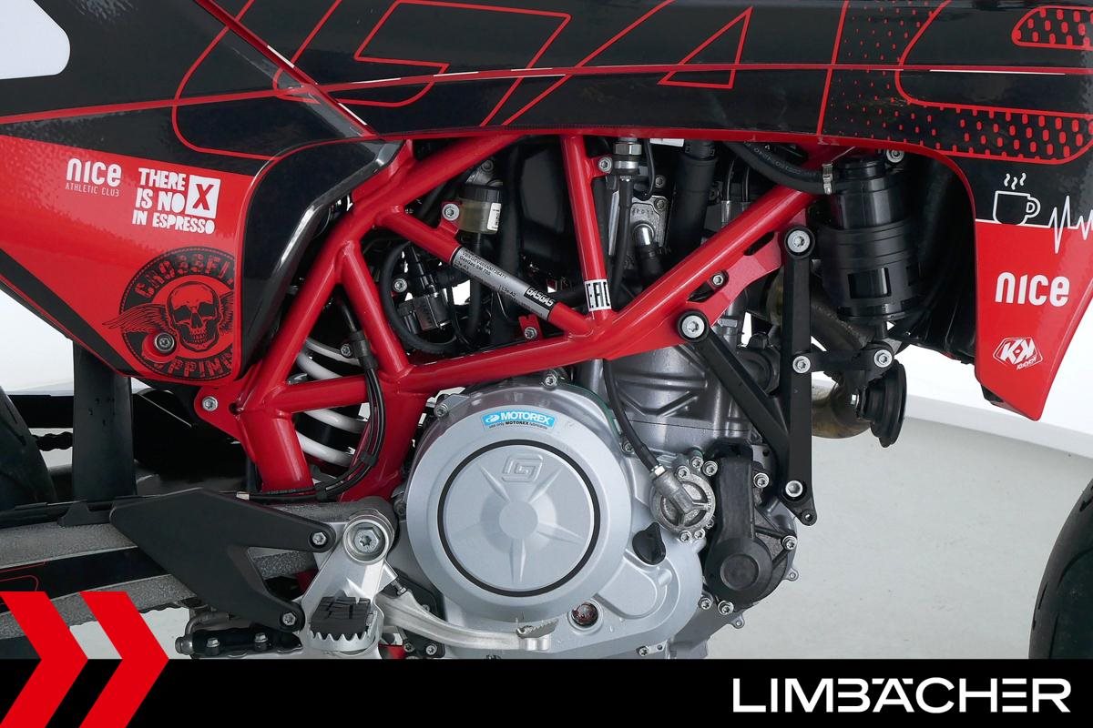 GasGas Limbächer bietet hier eine GasGas SM 700 mit einer neuen 1000-km-Inspektion inklusive 40-Punkte-Durchsicht. Alle unsere Fahrzeuge werden mit mindestens einem Jahr TÜV übergeben.