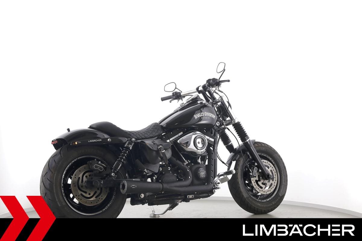 Eine Harley-Davidson Dyna Fat Bob FXDF in gepflegtem Zustand u.a. mit MCJ-Klappenauspuff und seitlichem Kennzeichenhalter.