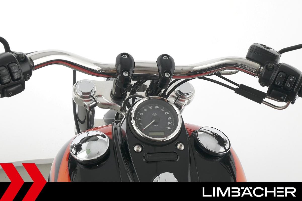 Eine Harley-Davidson Dyna Wide Glide FXDWG aus zweiter Hand in sehr gepflegtem Zustand u.a. mit Remus-Endschalldämpfer sowie seitlichem Kennzeichenhalter.