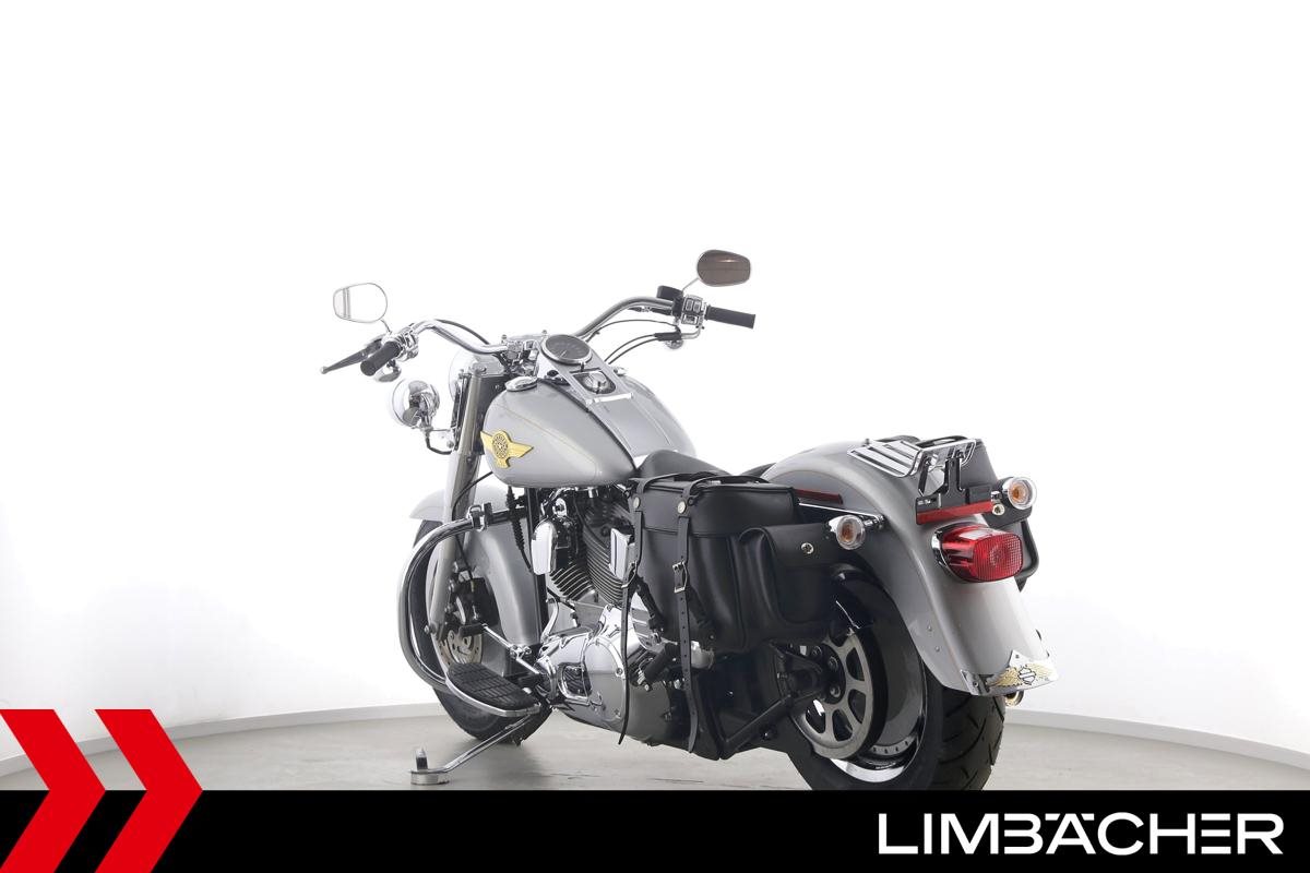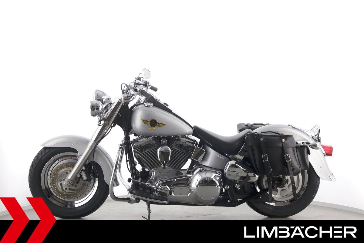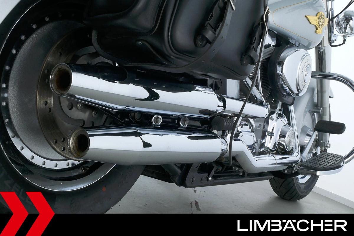 Eine Harley-Davidson Softail Fat Boy FLSTFI-ANNIVERSARY in sehr gepflegtem Zustand u.a. mit Sturzbügeln sowie Lederpacktaschen.