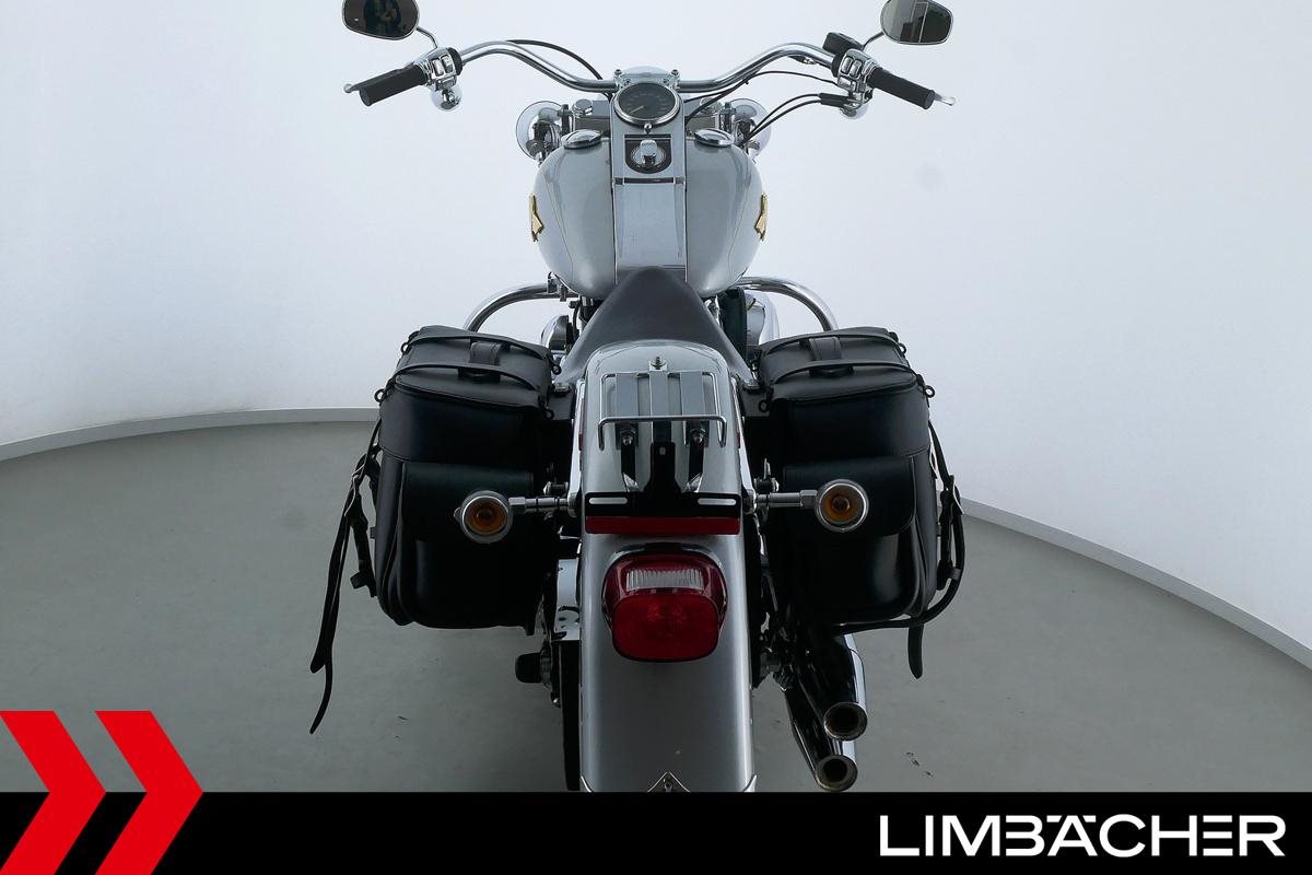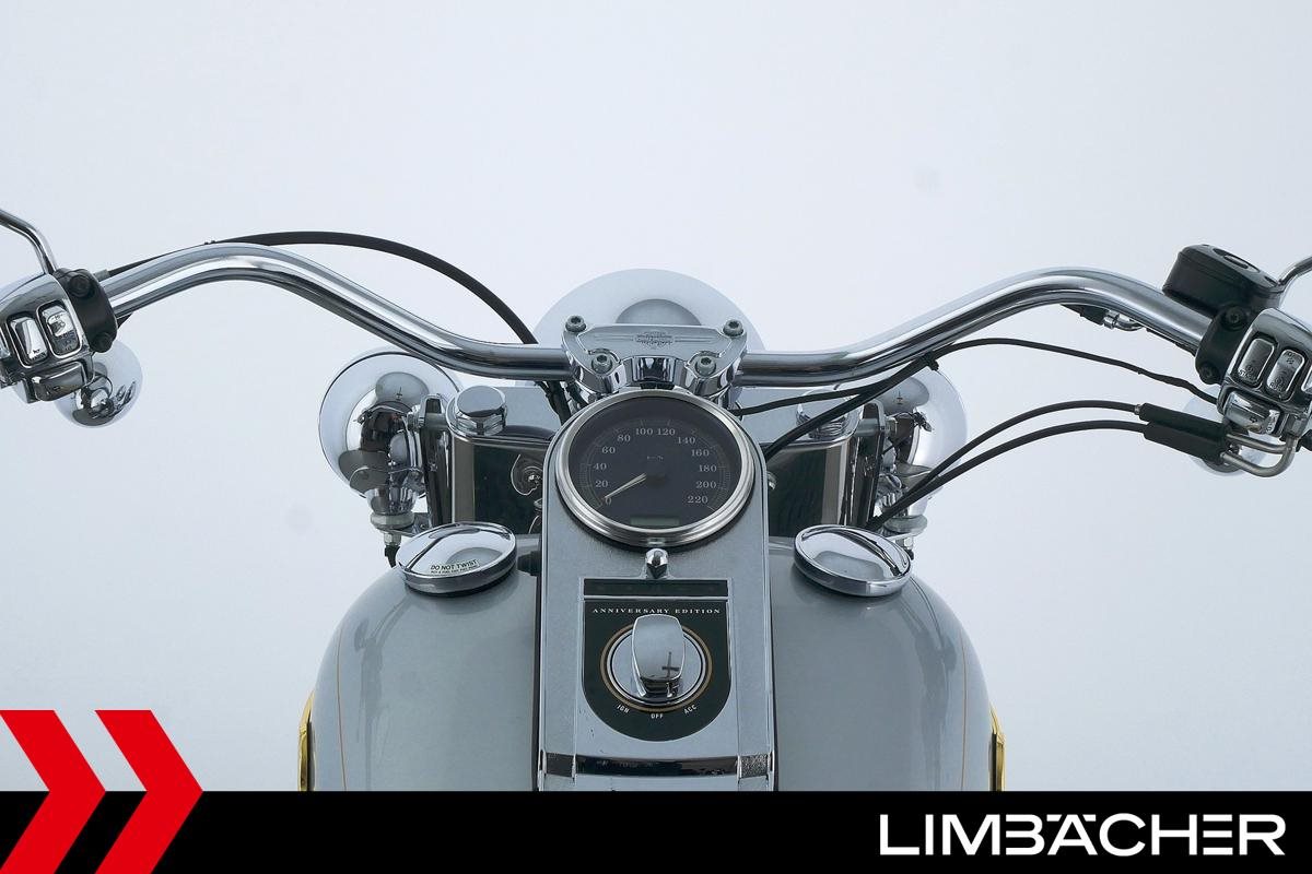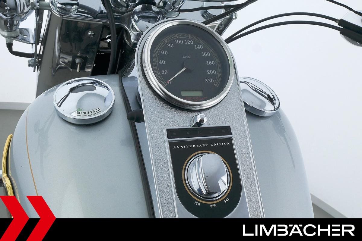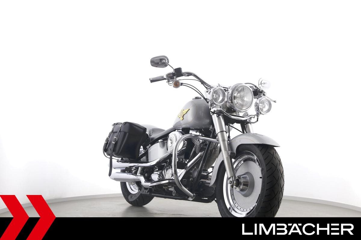 Eine Harley-Davidson Softail Fat Boy FLSTFI-ANNIVERSARY in sehr gepflegtem Zustand u.a. mit Sturzbügeln sowie Lederpacktaschen.