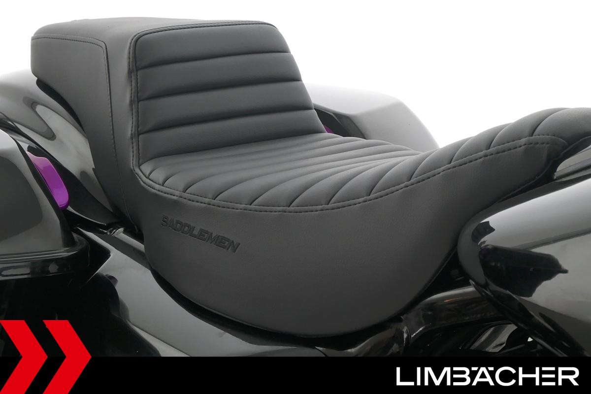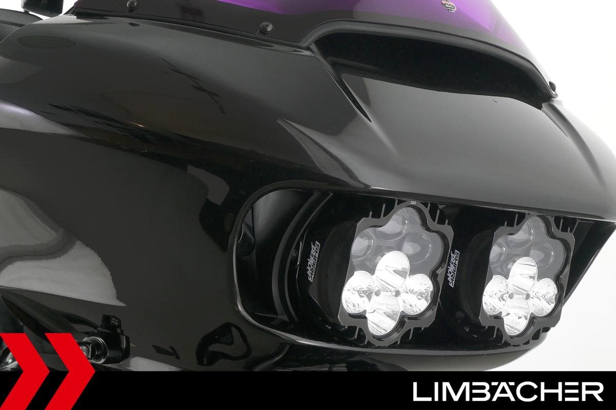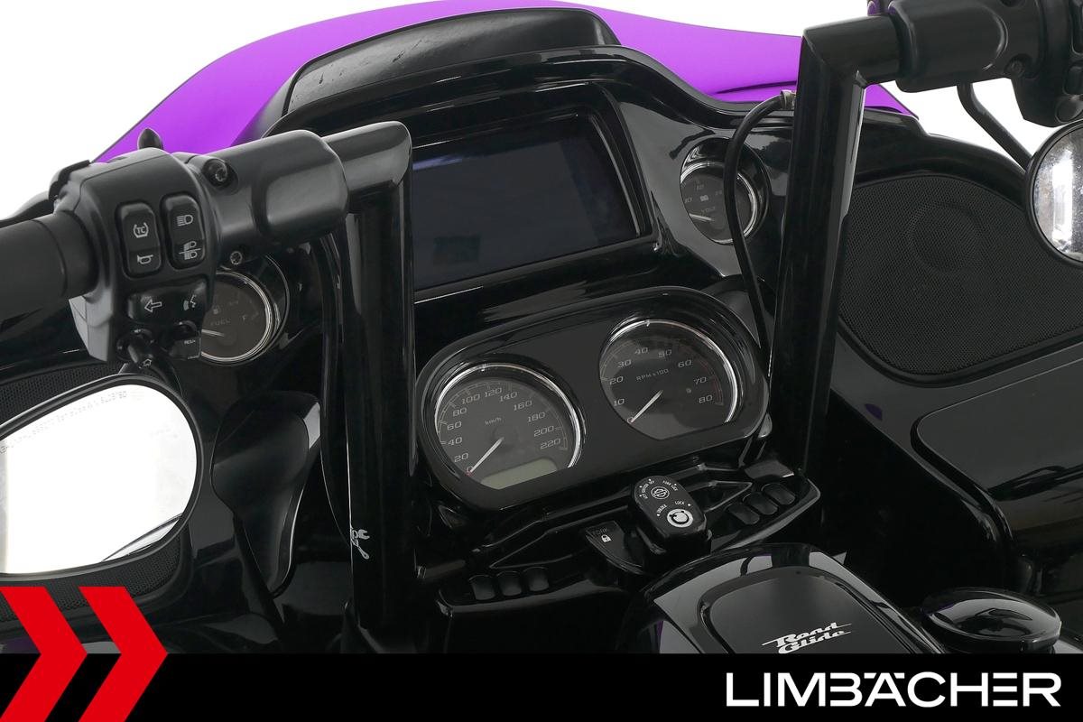 Eine Harley-Davidson Road Glide Special FLTRXS aus zweiter Hand in Topzustand u.a. mit Kesstech 2-in-1-Klappenauspuffanlage Club Style sowie Scheinwerfer Custom Dynamics Shark Demon 2.