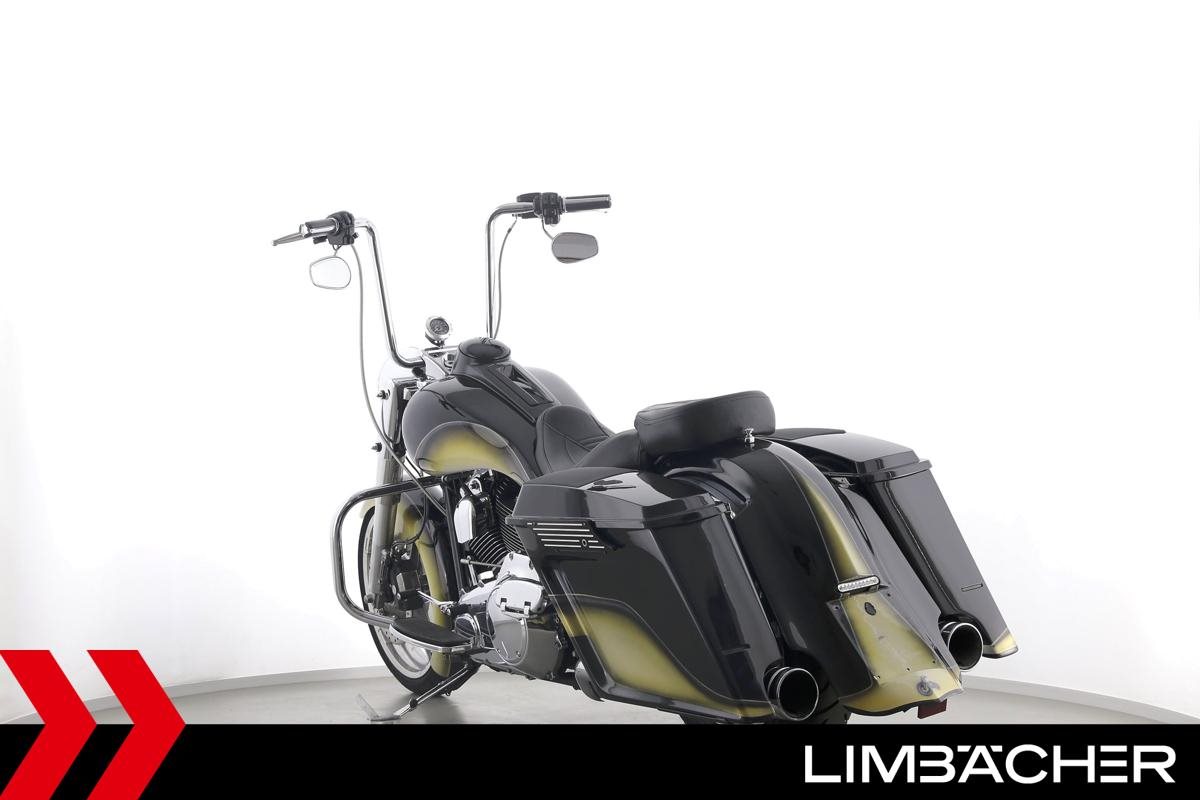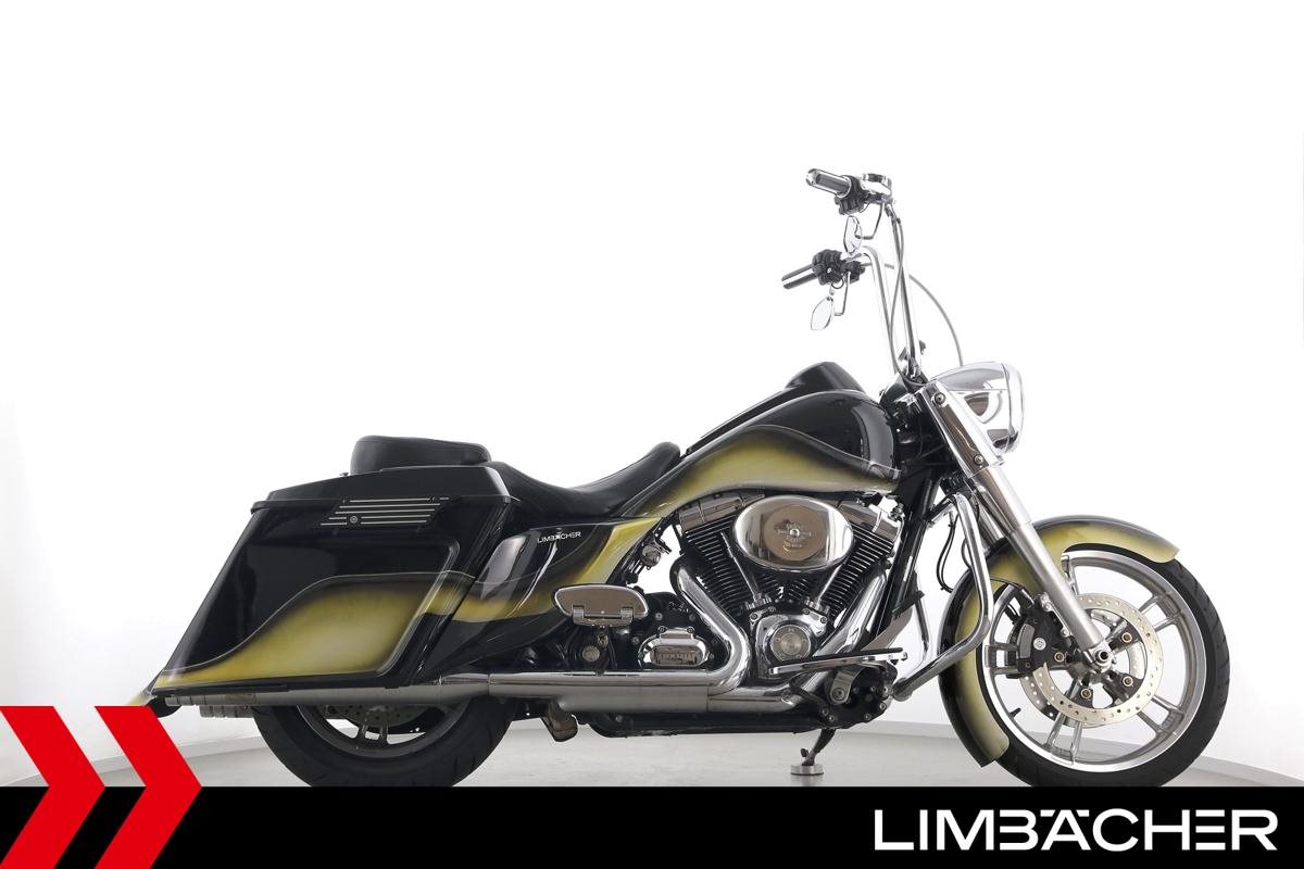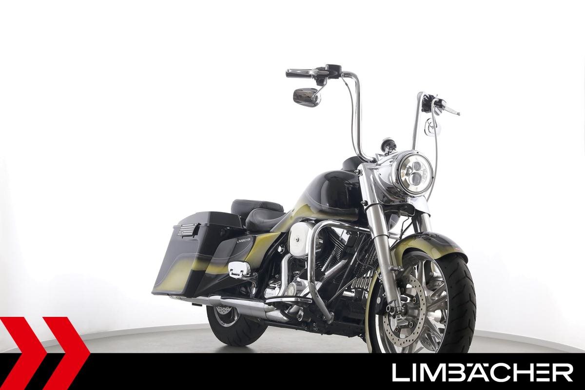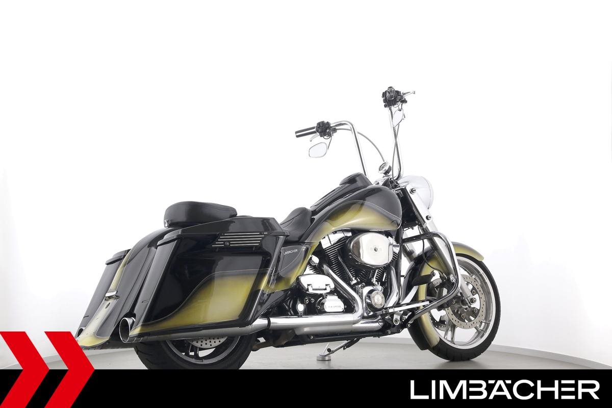 Eine scheckheftgepflegte Harley-Davidson Road King Classic FLHRC Chicano in sehr gepflegtem Zustand u.a. mit Jekill&Hyde-Klappenauspuff sowie Öhlins-Federbeinen.