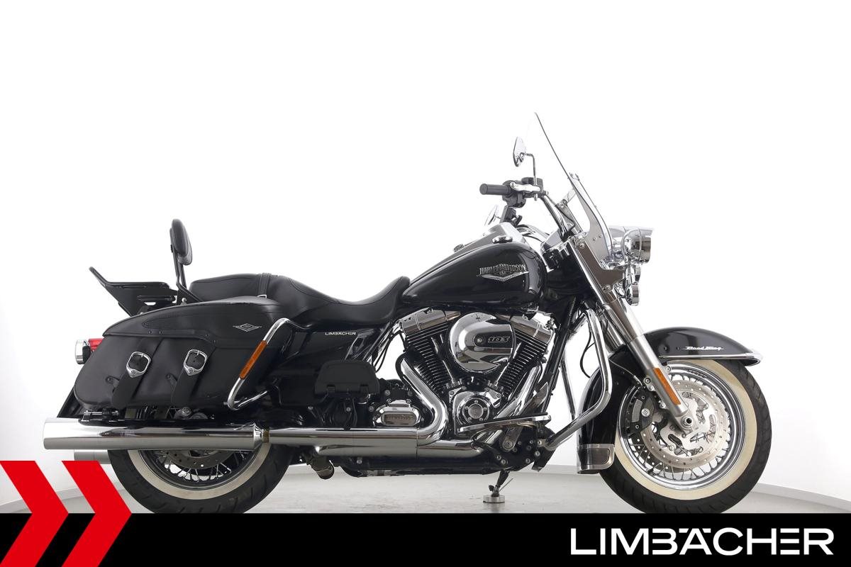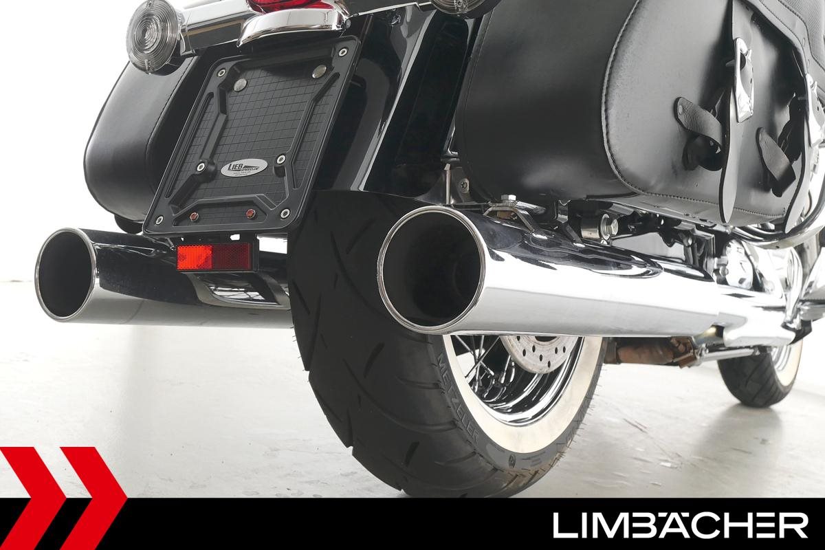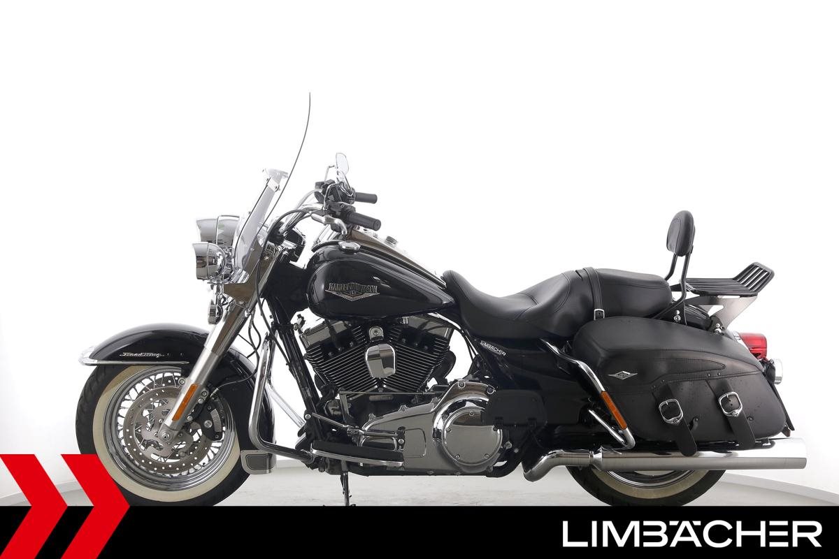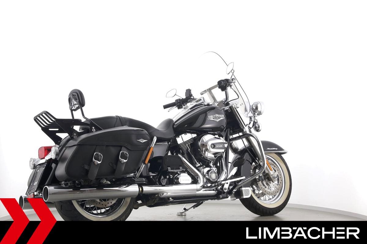 Eine scheckheftgepflegte Harley-Davidson Road King Classic FLHRC aus zweiter Hand in sehr gepflegtem Zustand u.a. mit Remus-Endschalldämpfer sowie HD-Lederkoffer-System.