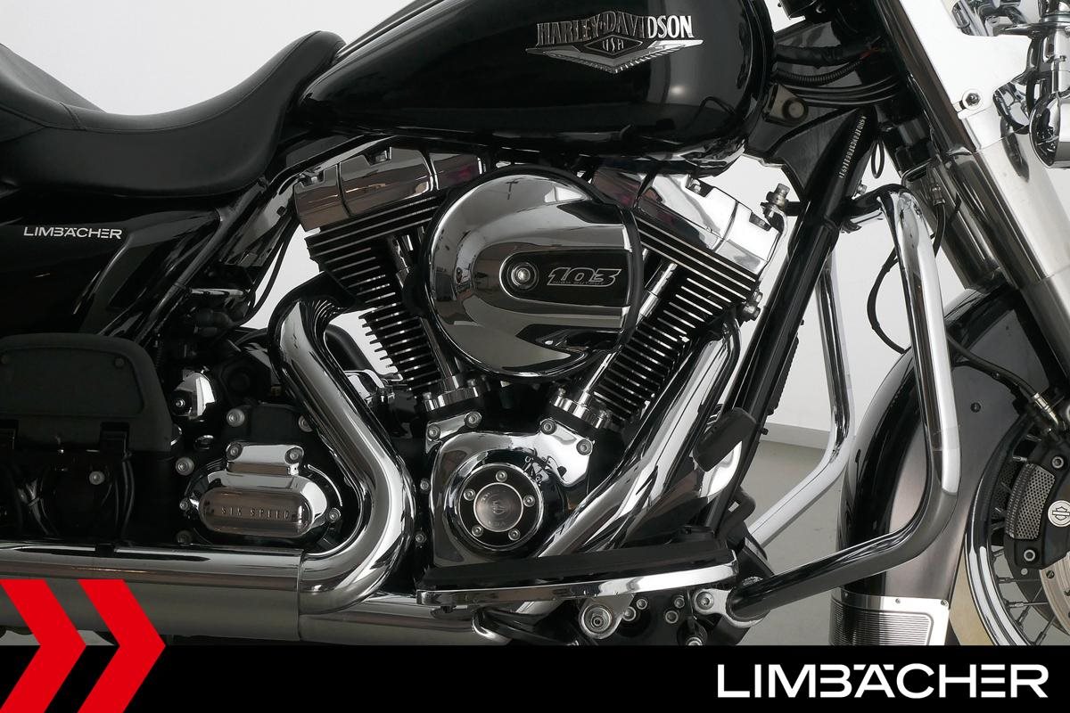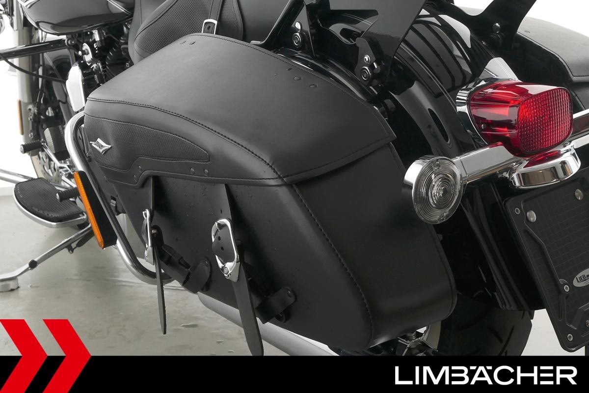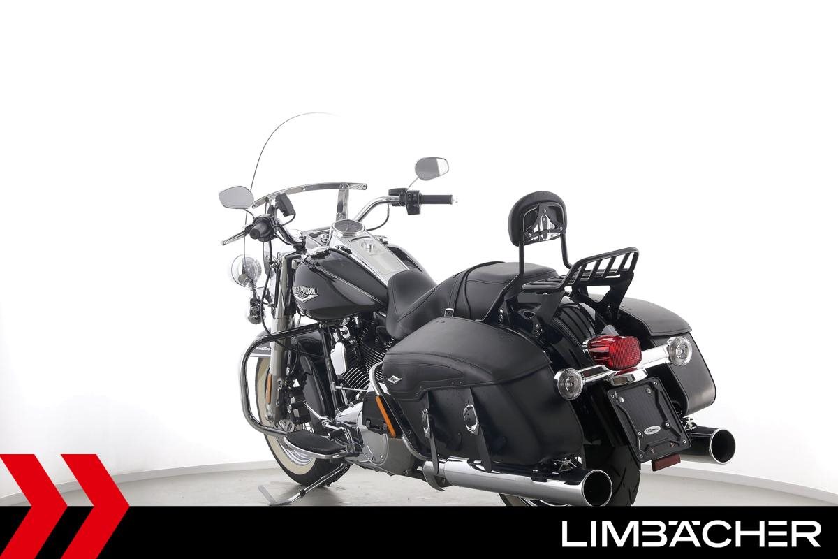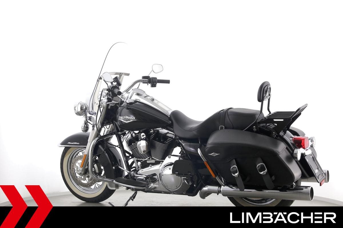 Eine scheckheftgepflegte Harley-Davidson Road King Classic FLHRC aus zweiter Hand in sehr gepflegtem Zustand u.a. mit Remus-Endschalldämpfer sowie HD-Lederkoffer-System.