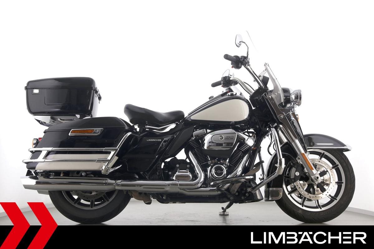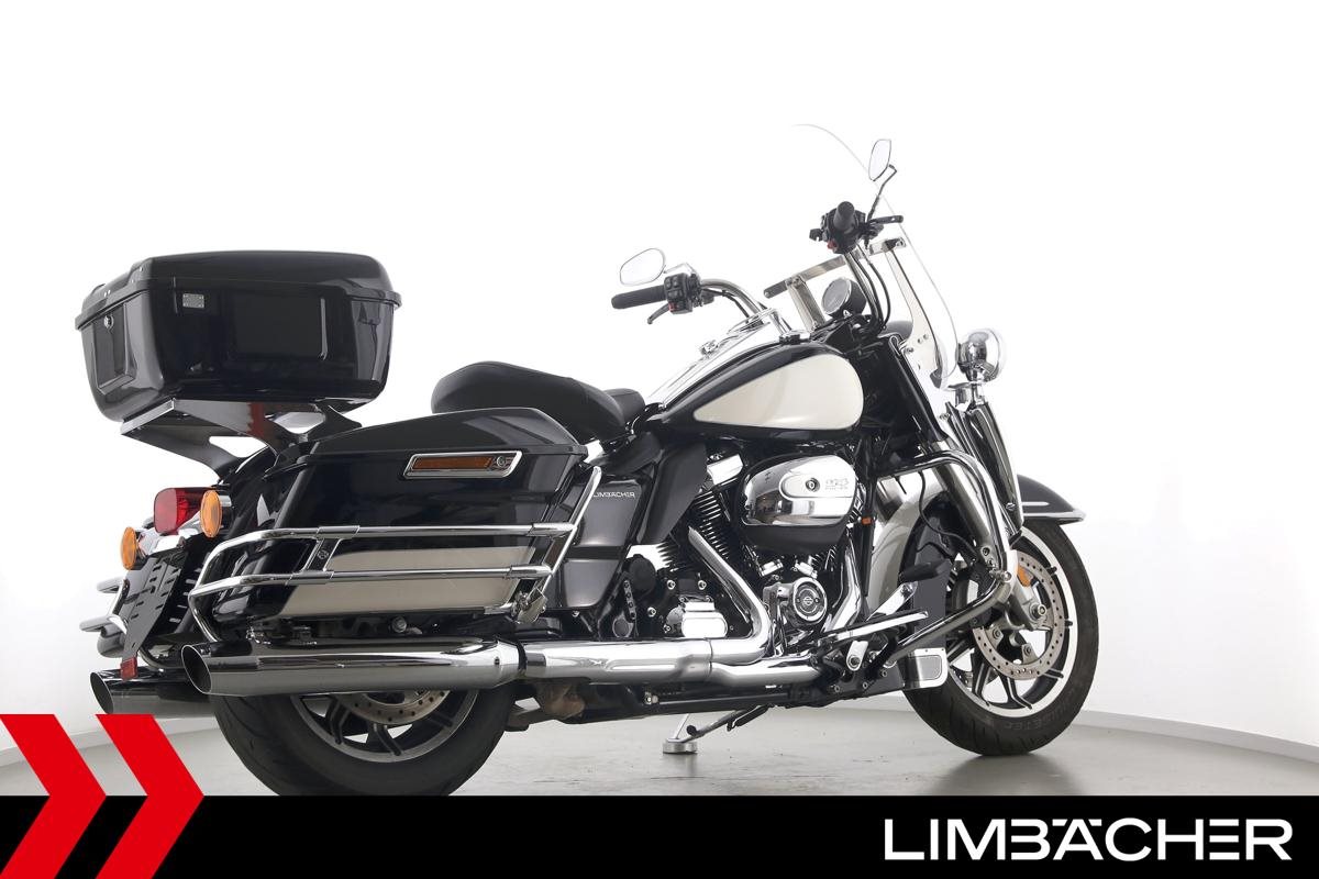 Eine scheckheftgepflegte Harley-Davidson Road King Police FLHP aus erster Hand in sehr gepflegtem Zustand u.a. mit HD-Koffersystem gleichschließend und Sturzbügeln.