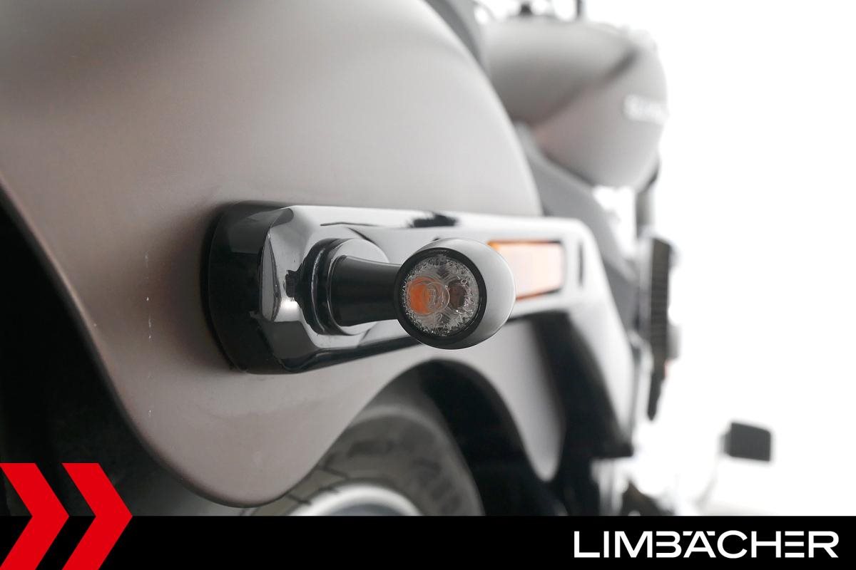 Eine Harley-Davidson Softail Breakout 114 FXBRS aus zweiter Hand in sehr gepflegtem Zustand u.a. mit KessTech-Klappenauspuff sowie seitlichem Kennzeichenhalter.