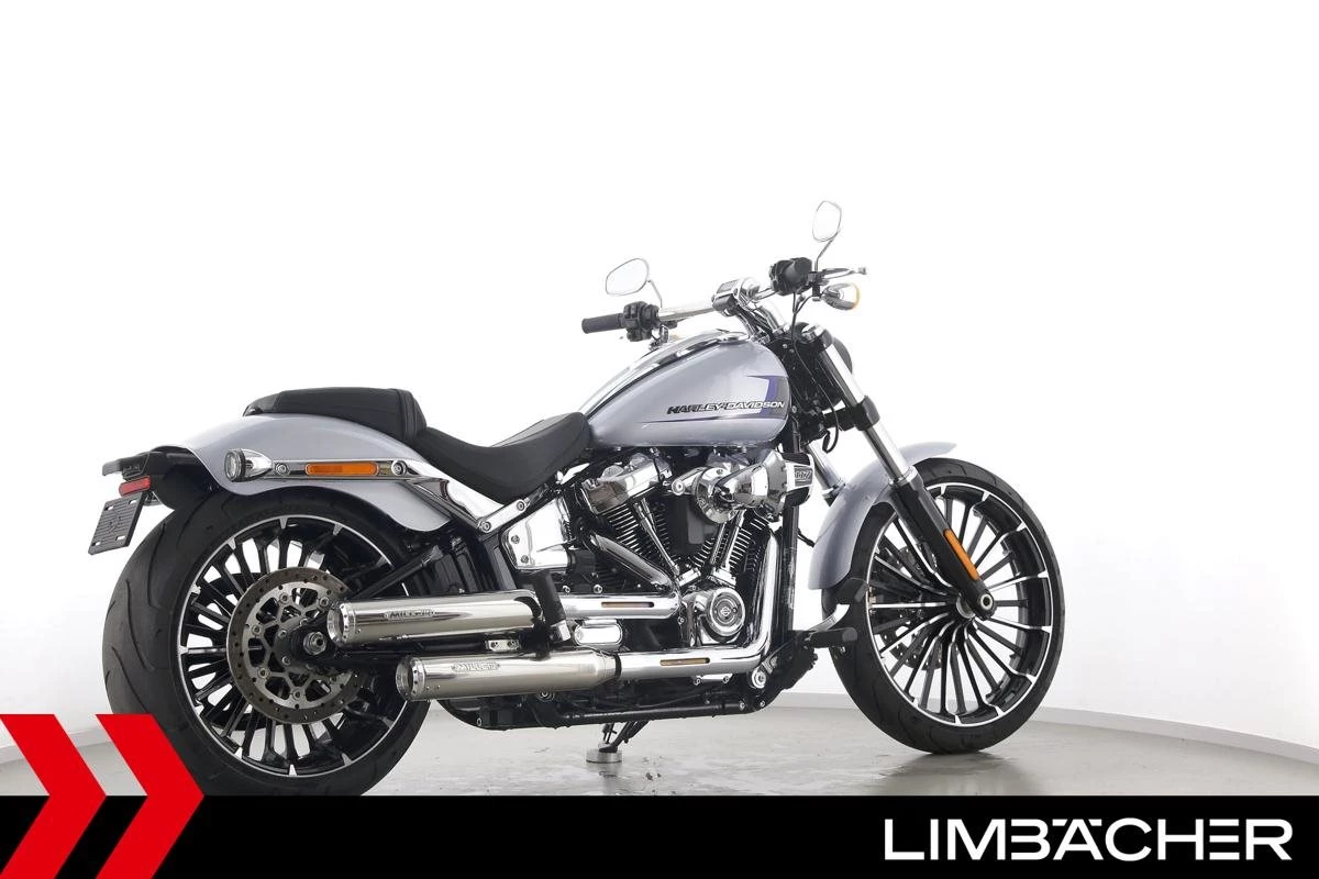Eine scheckheftgepflegte Harley-Davidson Softail Breakout FXBR in Topzustand u.a. mit Miller-Endschalldämpfer und Tempomat.