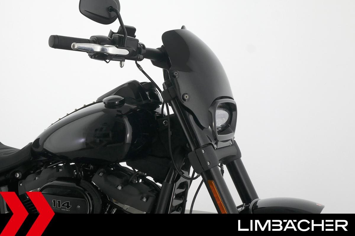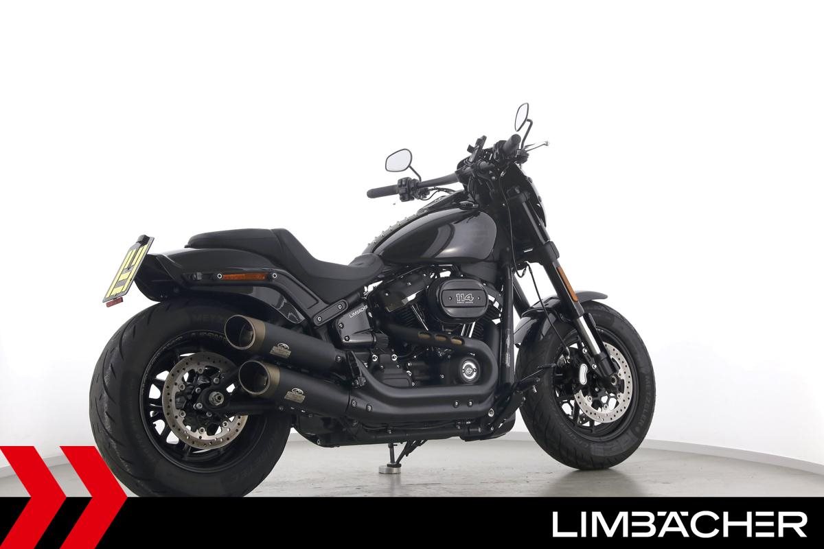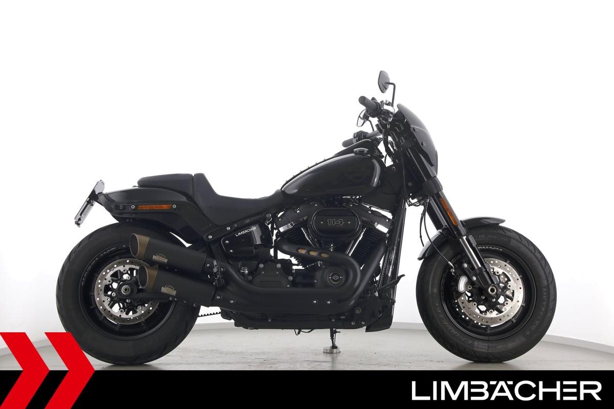 Eine Harley-Davidson Softail Fat Bob 114 FXFBS in sehr gepflegtem Zustand u.a. mit Jekill&Hyde-Klappenauspuff sowie kurzem Kennzeichenhalter.