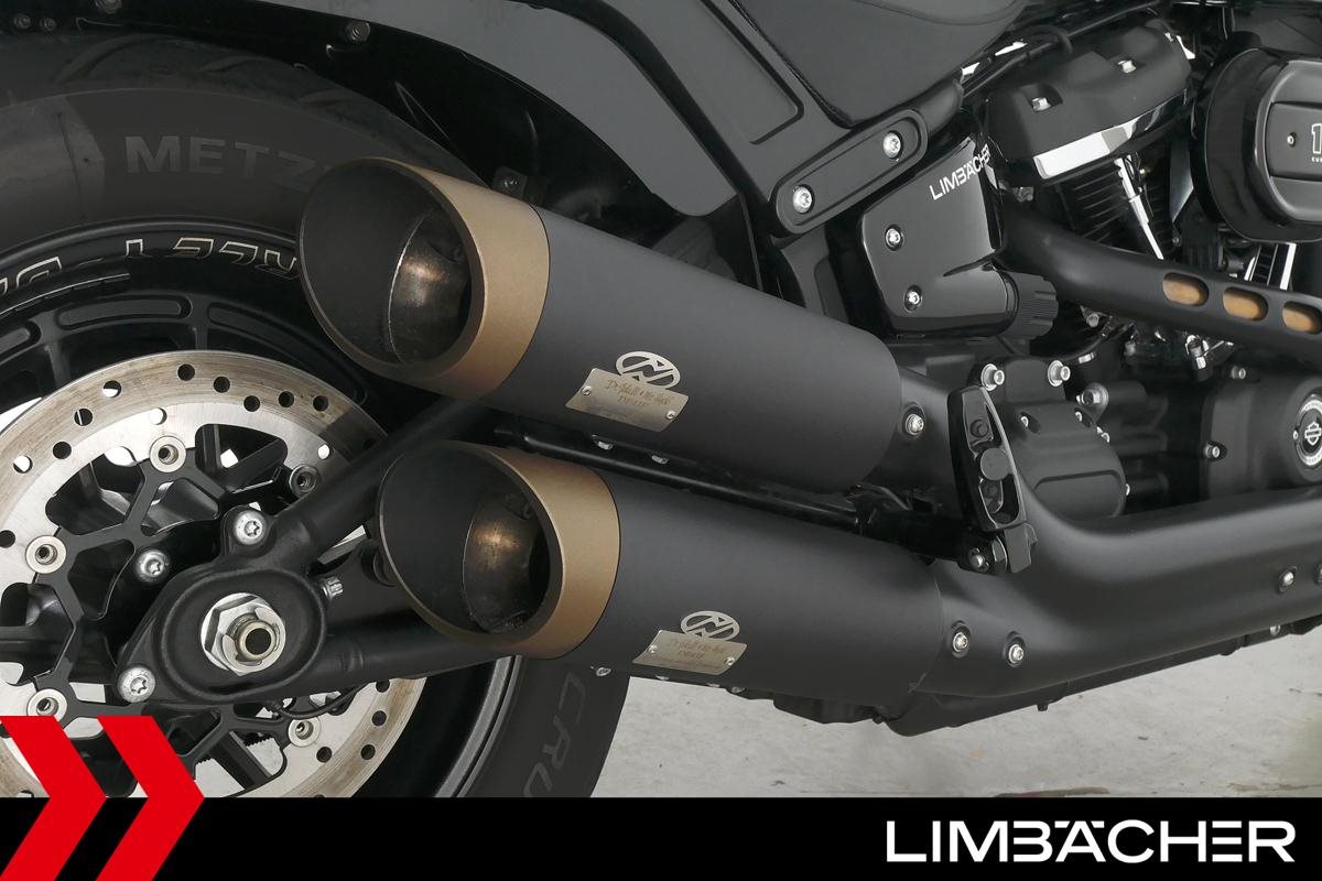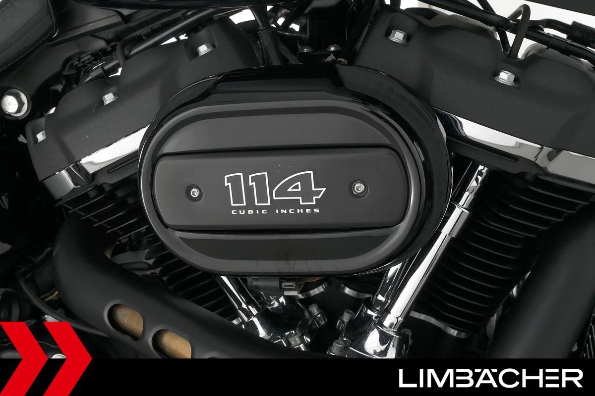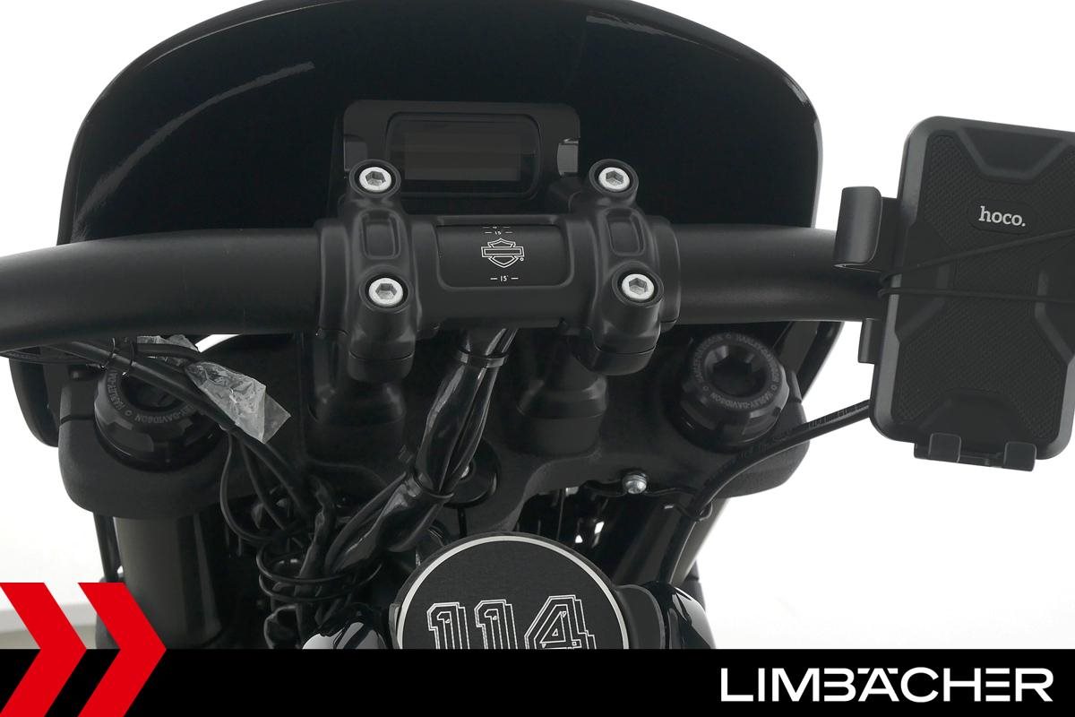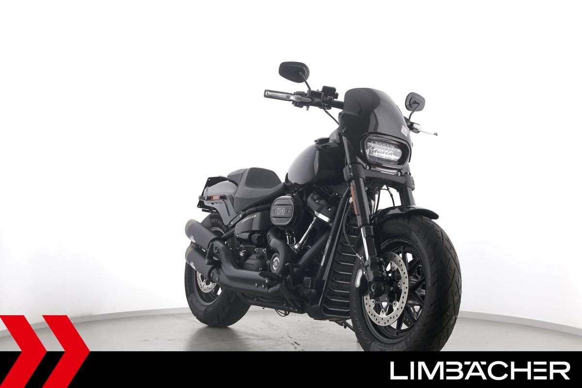 Eine Harley-Davidson Softail Fat Bob 114 FXFBS in sehr gepflegtem Zustand u.a. mit Jekill&Hyde-Klappenauspuff sowie kurzem Kennzeichenhalter.