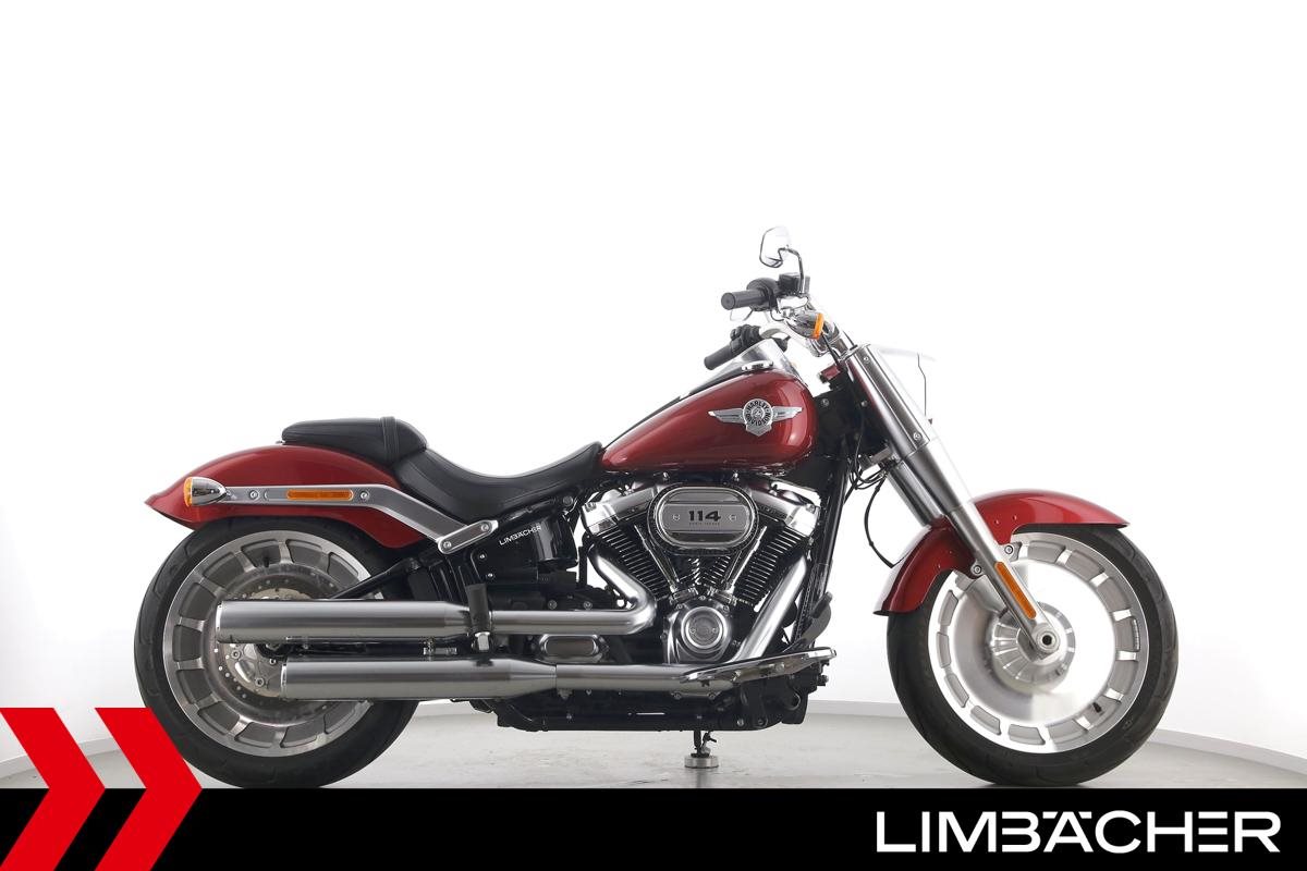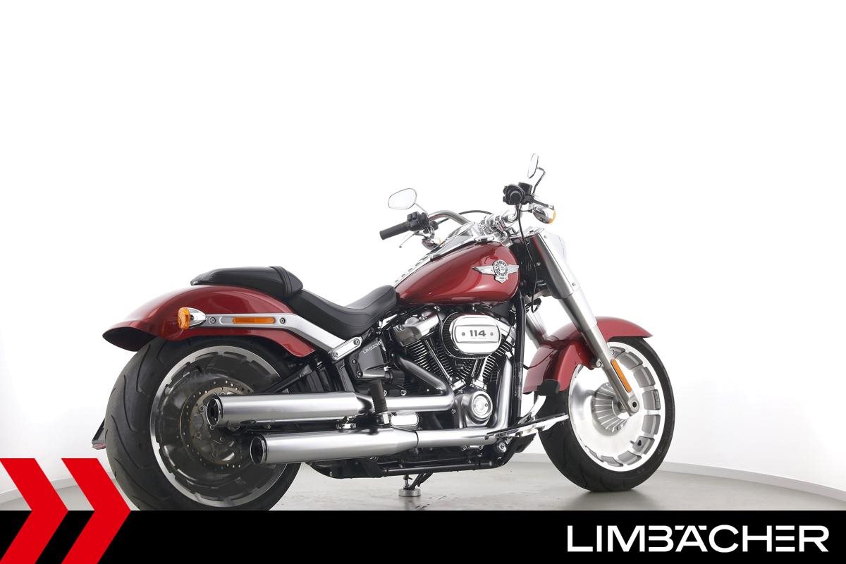 Eine Harley-Davidson Softail Fat Boy 114 FLFBS aus zweiter Hand in Topzustand u.a. mit Originalausstattung sowie seitlichem Kennzeichenhalter.