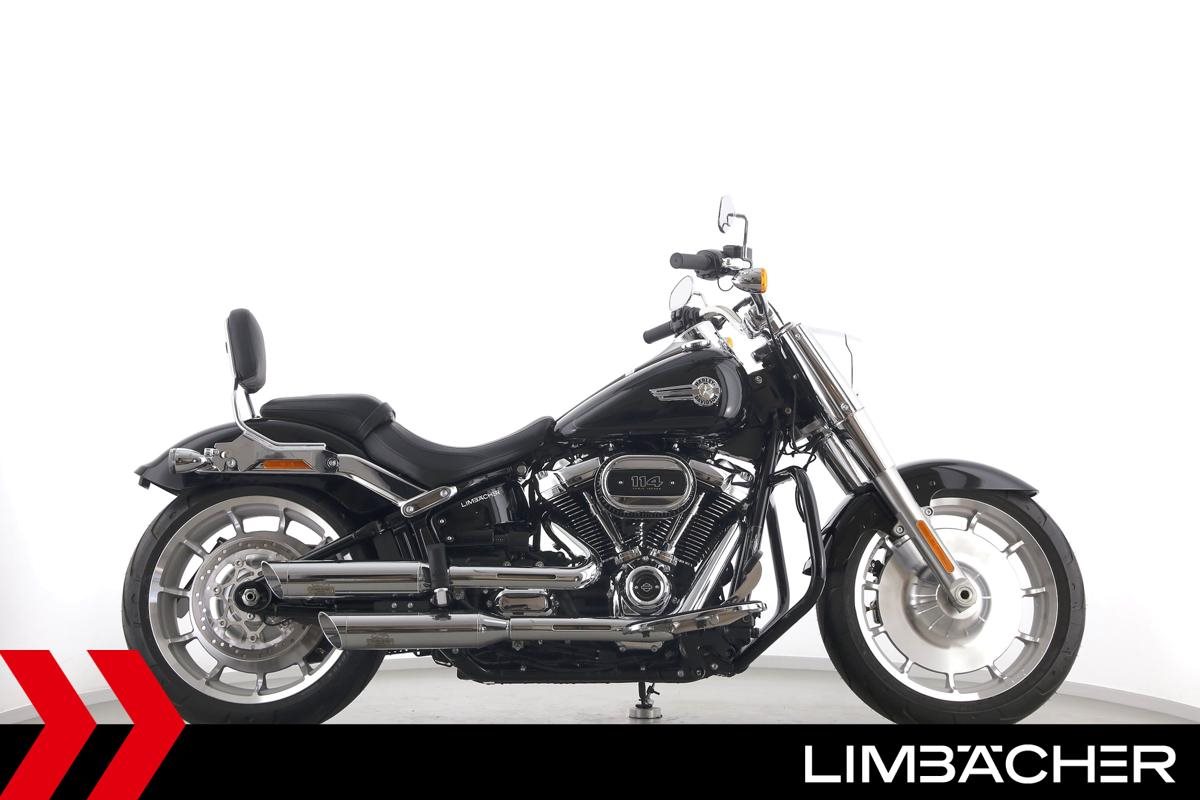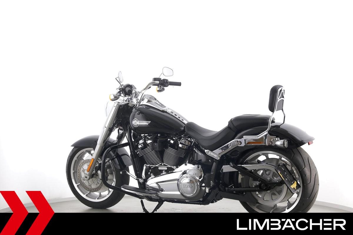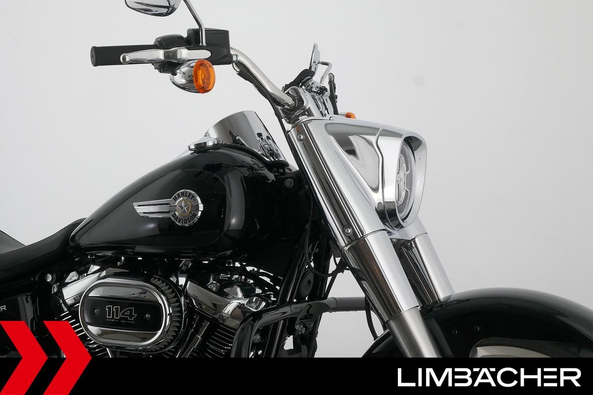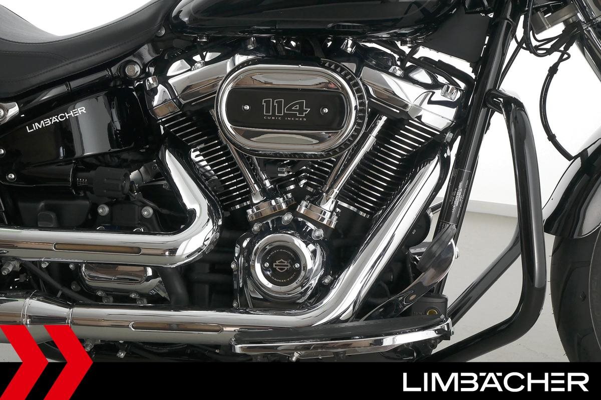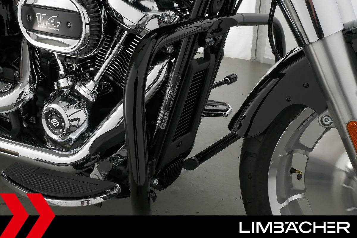 Eine Harley-Davidson Softail Fat Boy 114 FLFBS aus erster Hand in neuwertigem Zustand u.a. mit Jekill&Hyde-Klappenauspuff sowie Sturzbügel in schwarz.