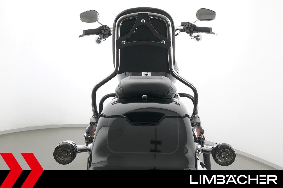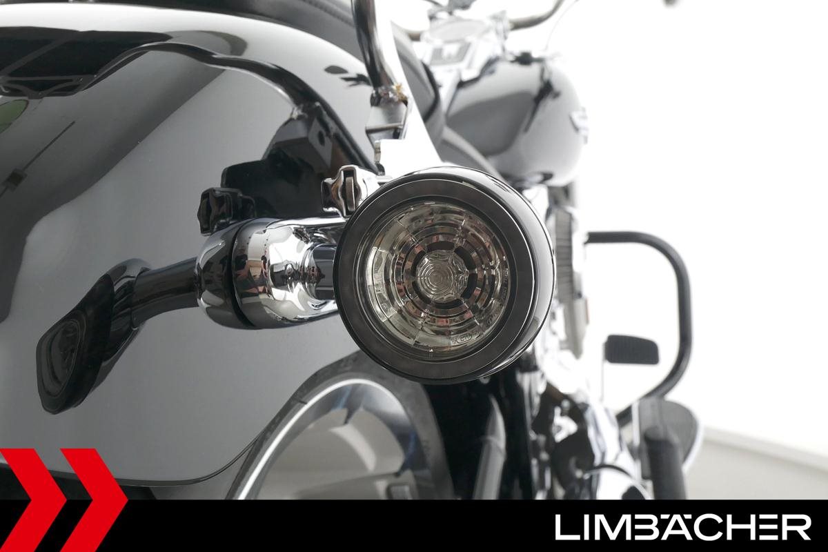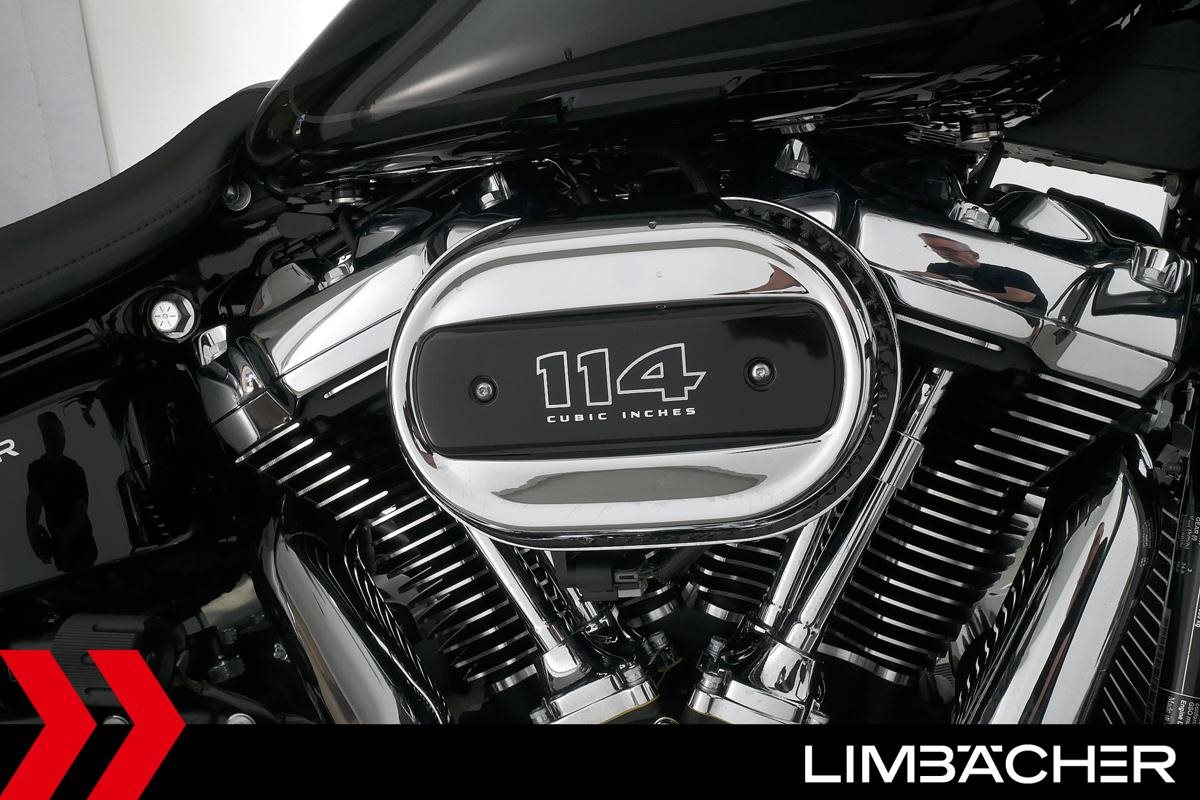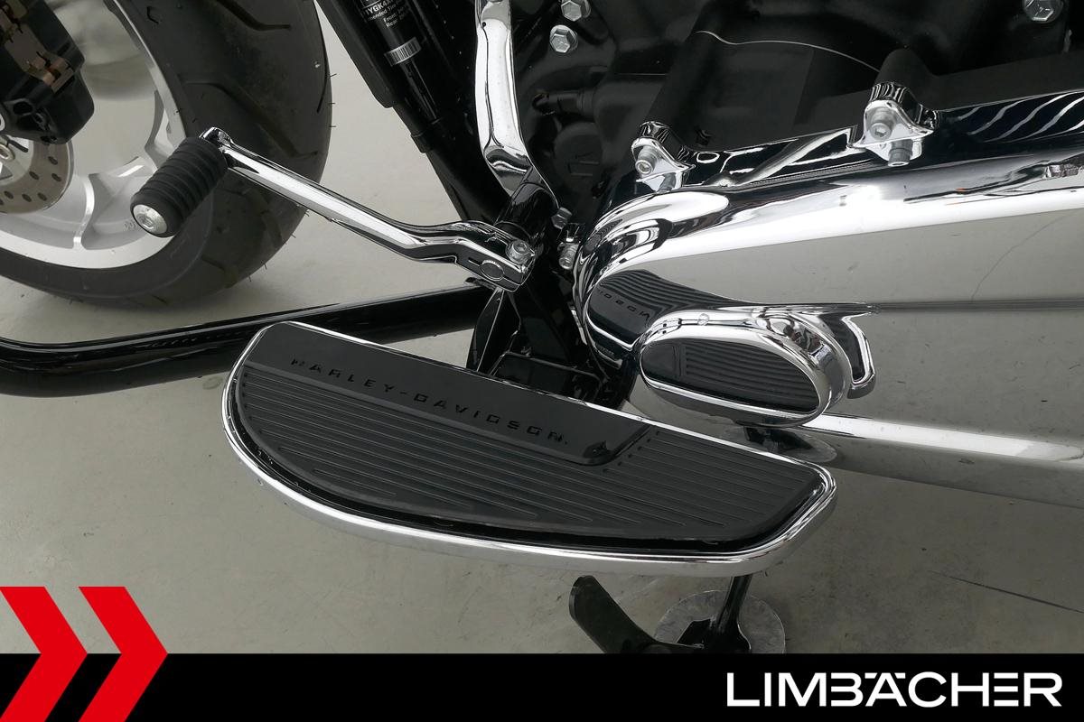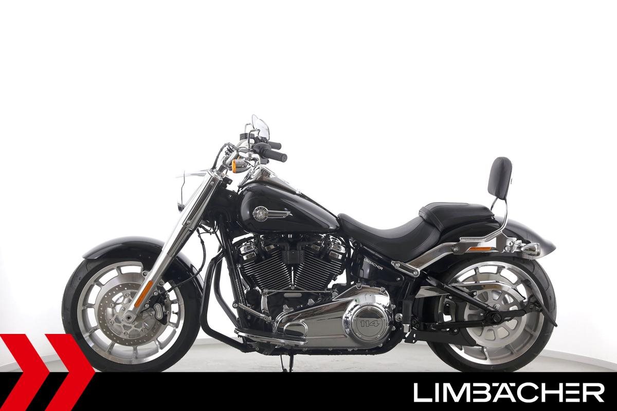 Eine Harley-Davidson Softail Fat Boy 114 FLFBS aus erster Hand in neuwertigem Zustand u.a. mit Jekill&Hyde-Klappenauspuff sowie Sturzbügel in schwarz.