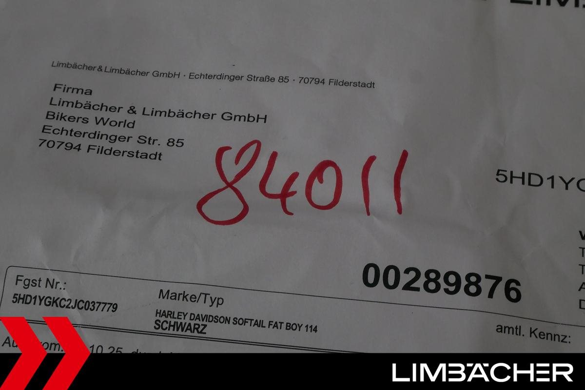 Eine Harley-Davidson Softail Fat Boy 114 FLFBS in sehr gepflegtem Zustand u.a. mit Originalausstattung und Keyless-Ride.