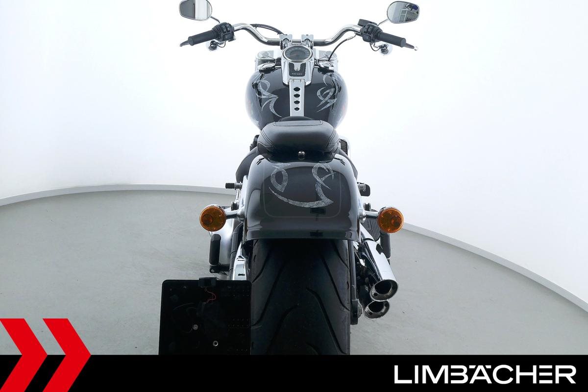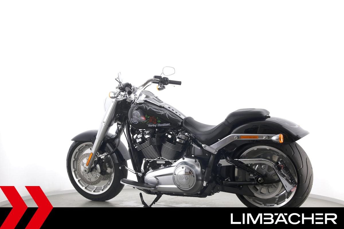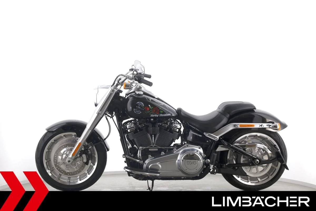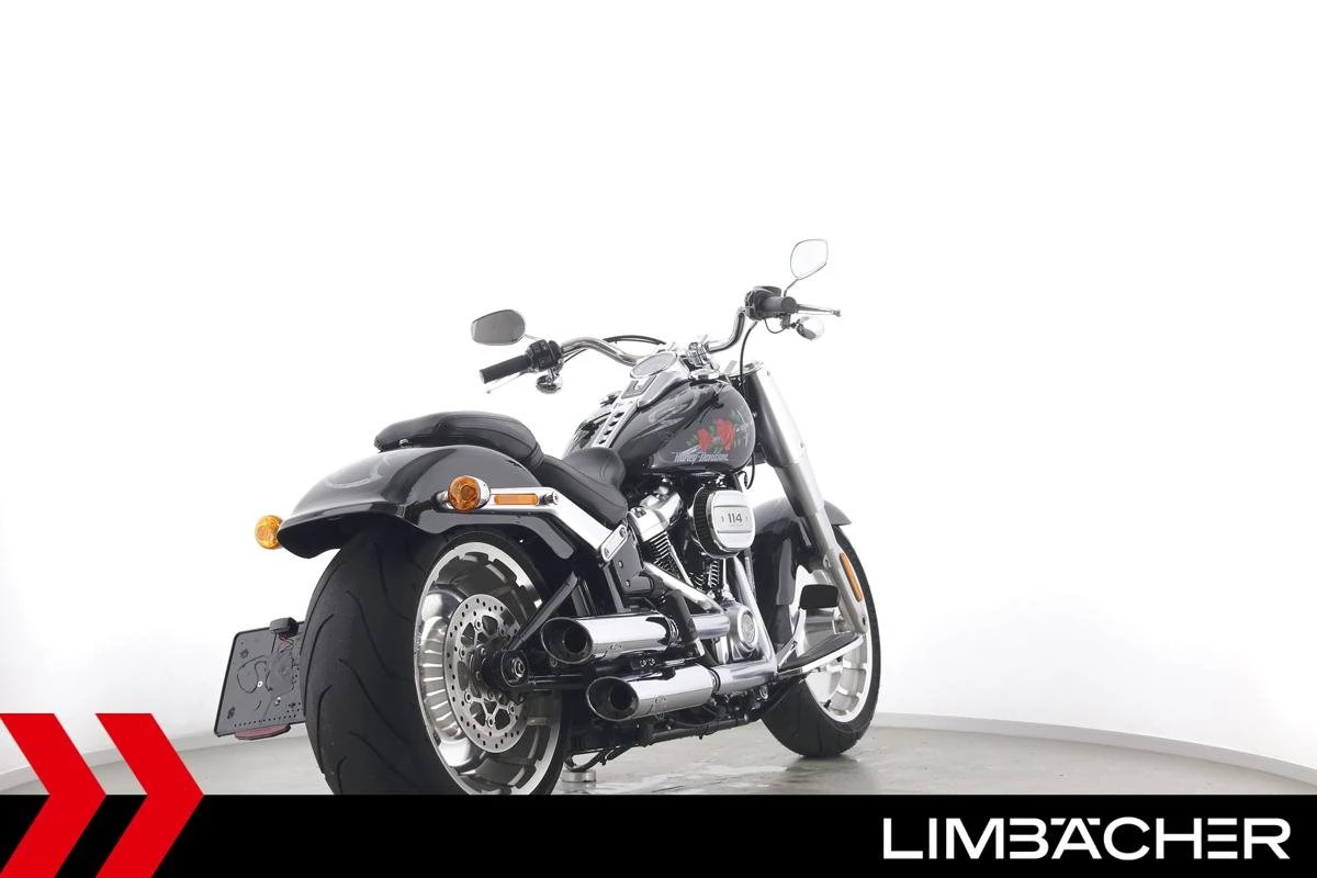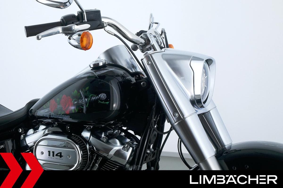 Eine scheckheftgepflegte Harley-Davidson Softail Fat Boy 114 FLFBS aus erster Hand in Topzustand u.a. mit Jekill&Hyde-Klappenauspuff sowie seitlichem Kennzeichenhalter.
