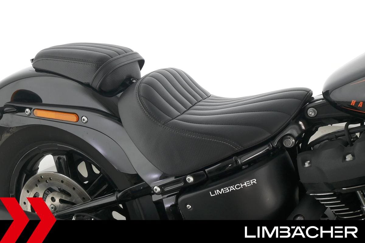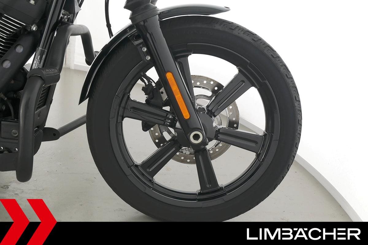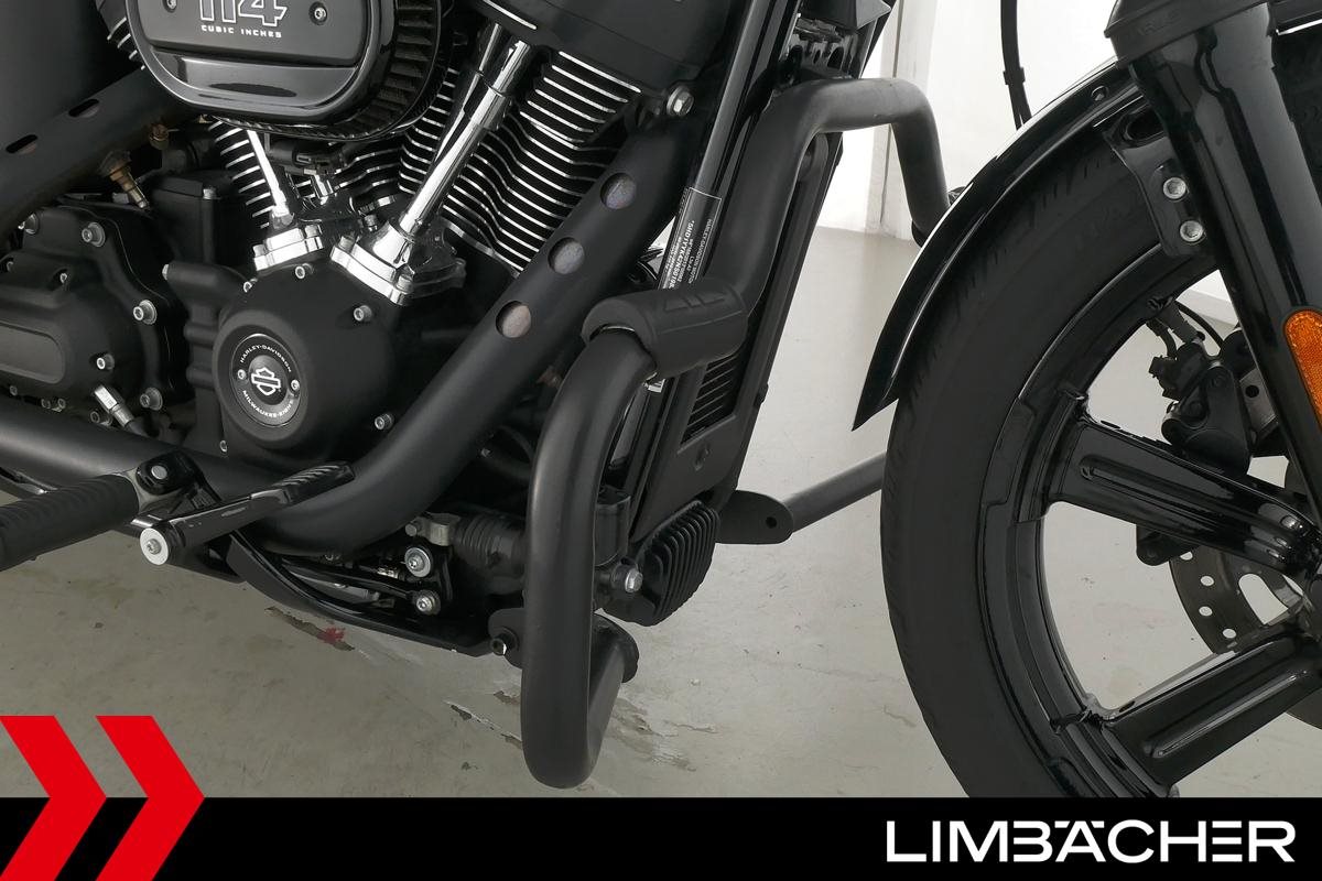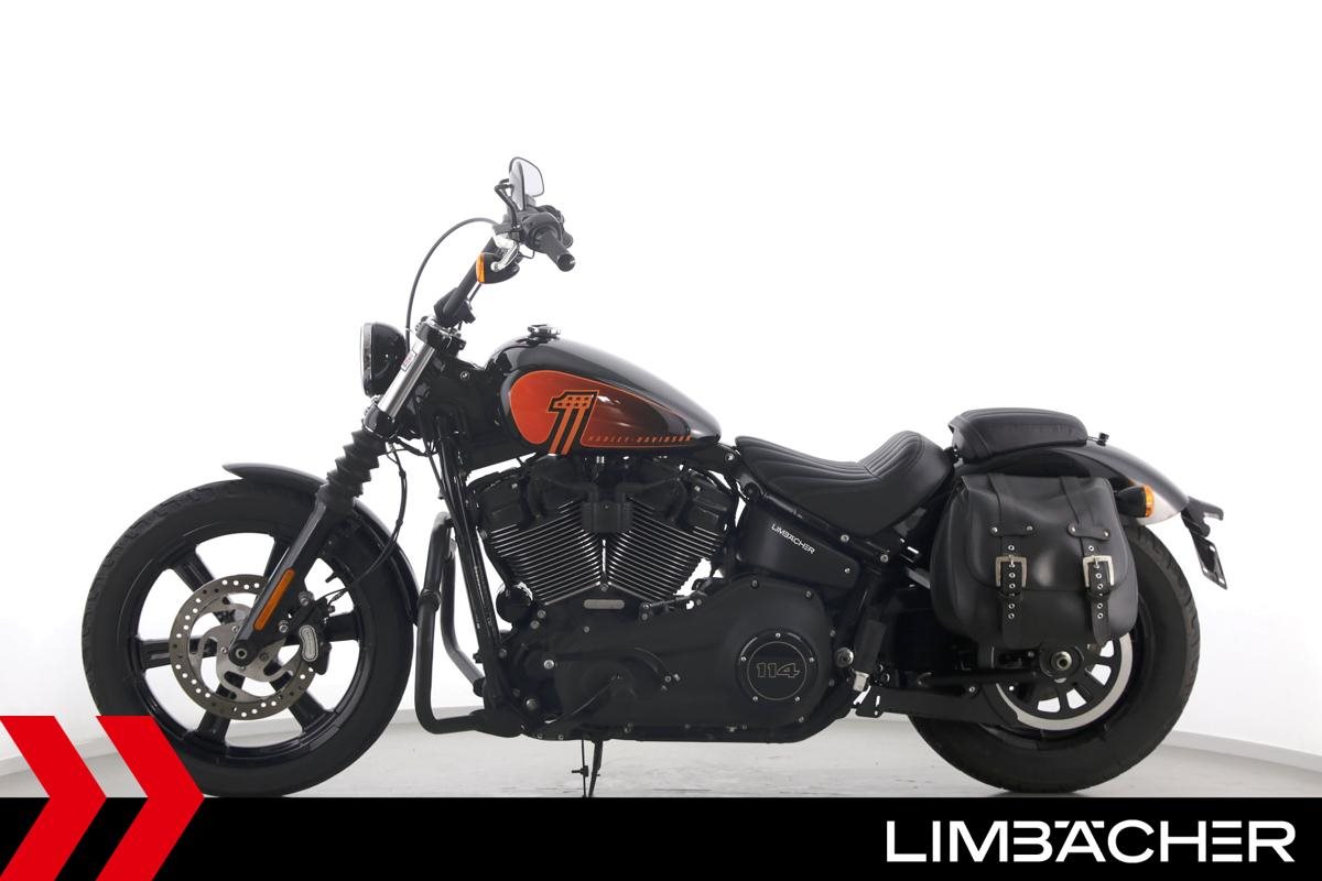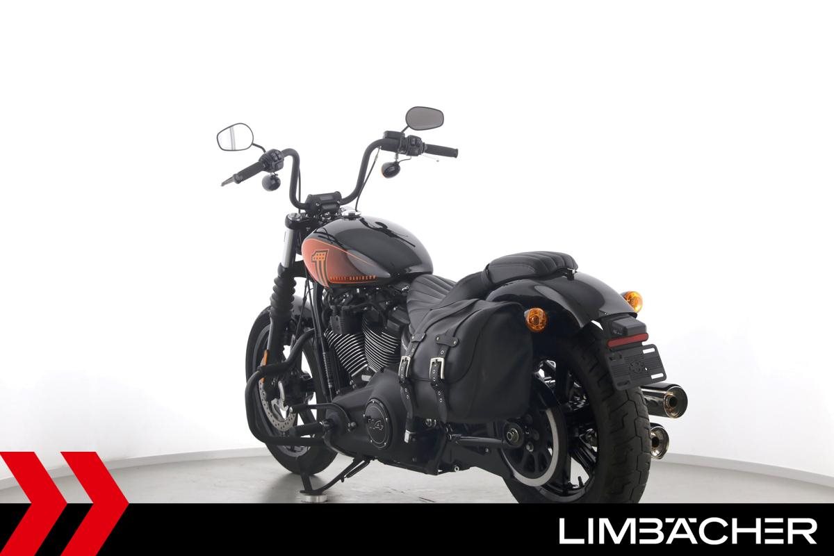 Eine Harley-Davidson Softail Street Bob 114 FXBBS in sehr gepflegtem Zustand u.a. mit Sturzbügel sowie seitlicher Leder-Bobbertasche.
