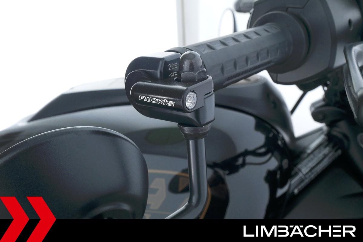 Eine scheckheftgepflegte Harley-Davidson Sportster S aus erster Hand in sehr gepflegtem Zustand u.a. mit Kennzeichenhalter seitlich sowie Lenkerend-Micro-LED-Blinkern vorne von Rick's.