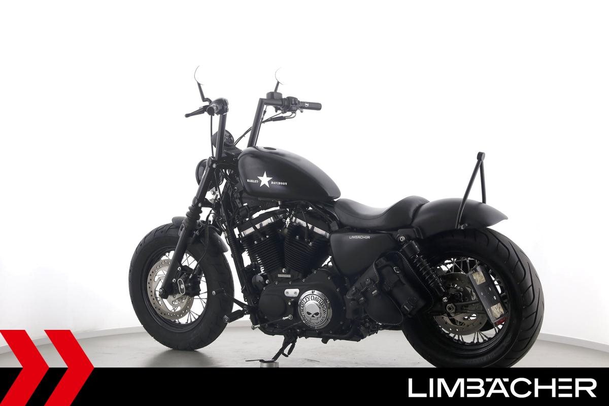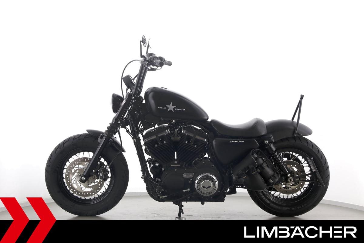 Eine scheckheftgepflegte Harley-Davidson Sportster XL 1200 X Forty Eight in gepflegtem Zustand u.a. mit Kesstech-Klappenauspuff sowie größerem Tank.