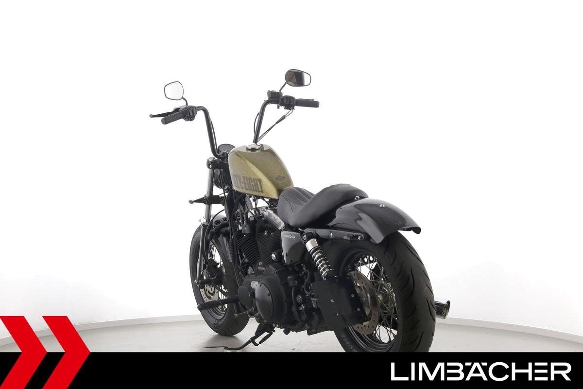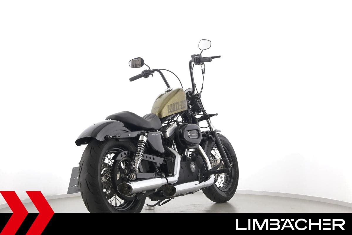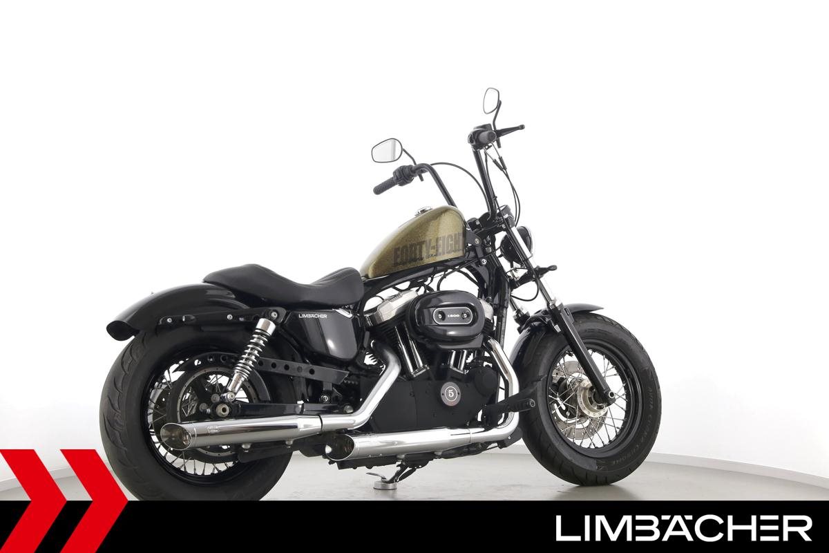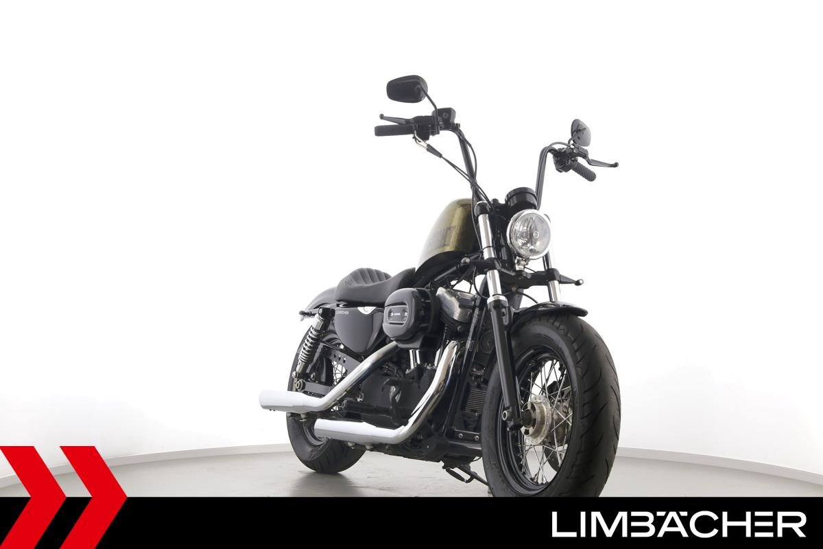 Eine Harley-Davidson Sportster XL 1200 X Forty Eight in gebrauchtem Zustand u.a. mit MJC-Endschalldämpfer sowie seitlichem Kennzeichenhalter.