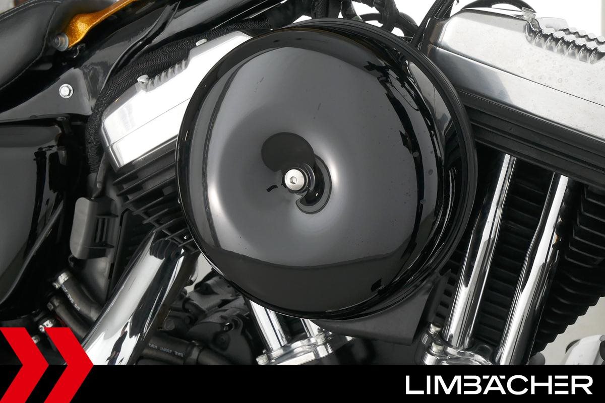 Eine scheckheftgepflegte Harley-Davidson Sportster XL 1200 X Forty Eight in sehr gepflegtem Zustand u.a. mit Penzl-Klappenauspuff mechanisch sowie seitlichem Kennzeichenhalter.
