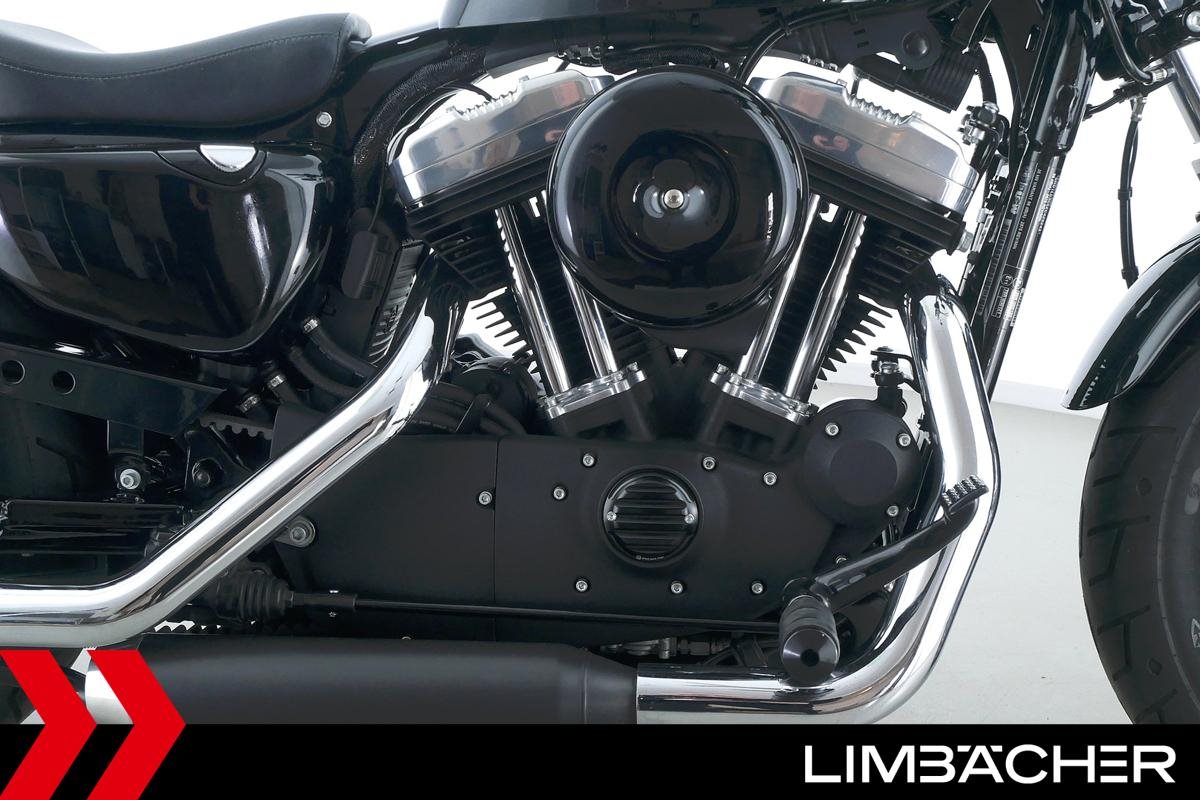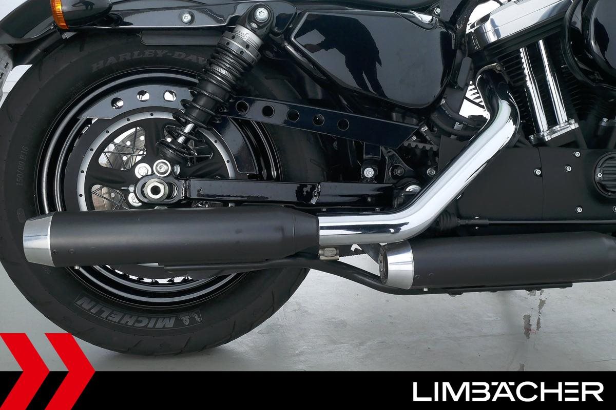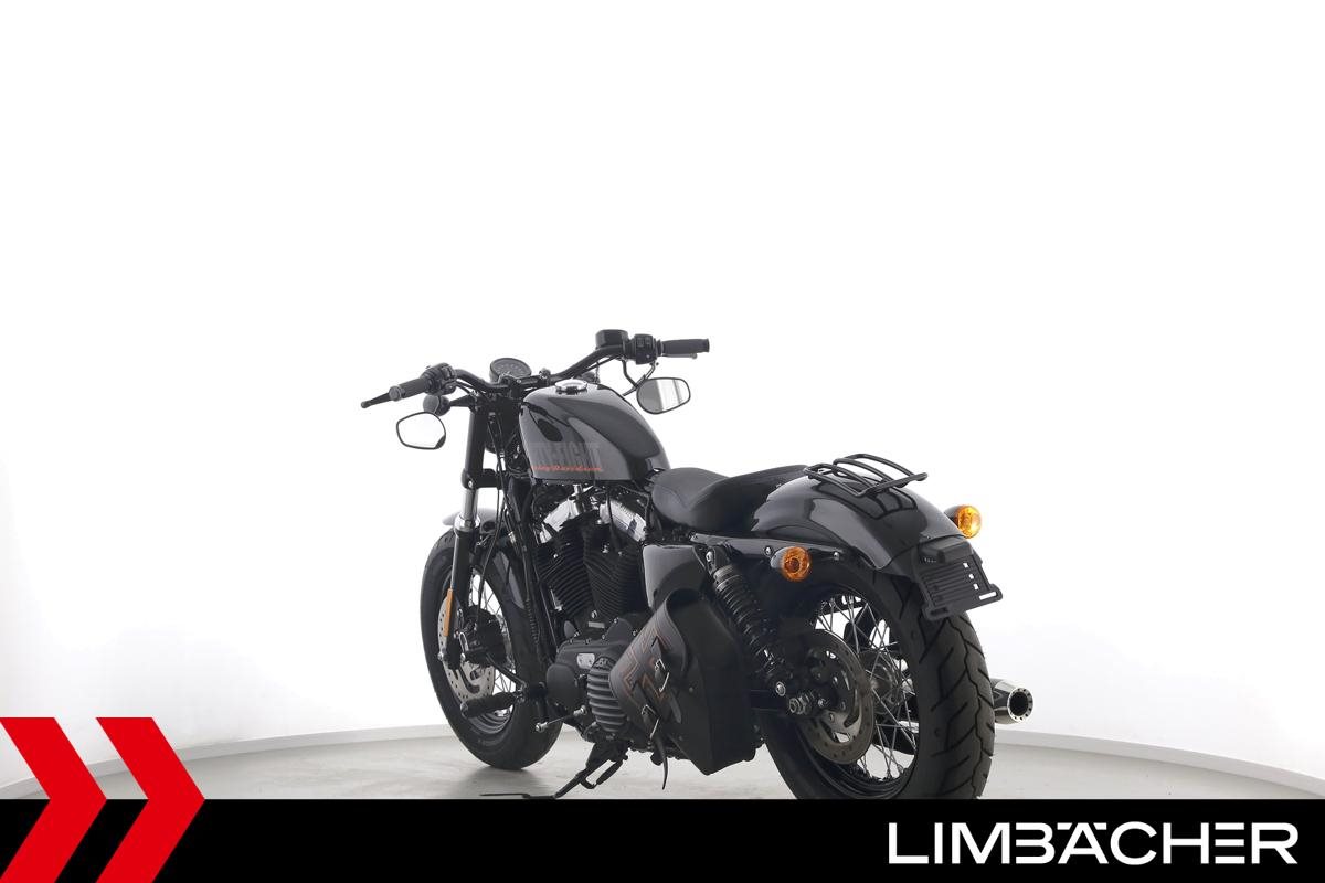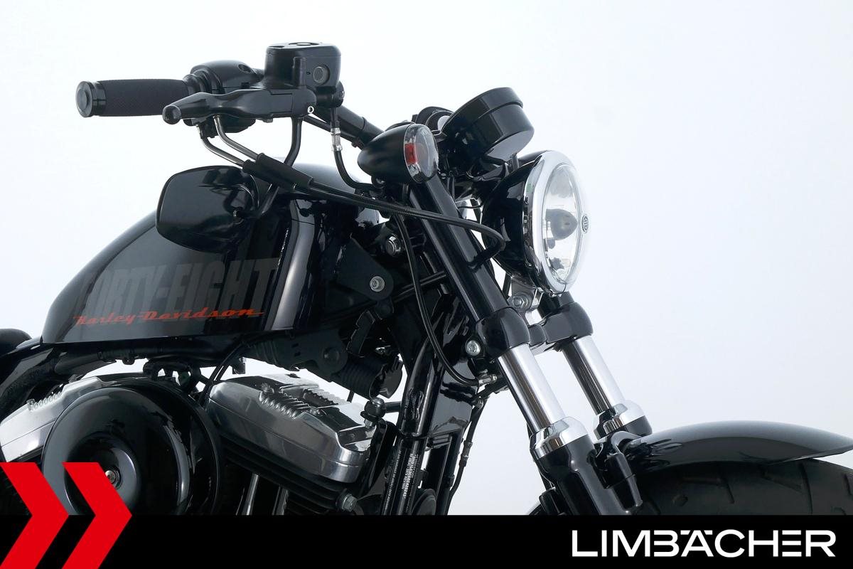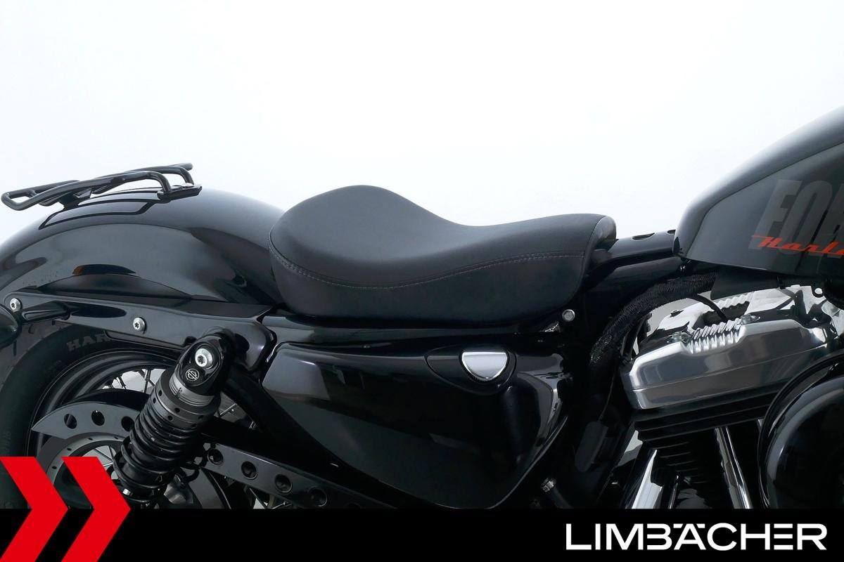 Eine scheckheftgepflegte Harley-Davidson Sportster XL 1200 X Forty Eight aus zweiter Hand in Topzustand u.a. mit Miller-Endschalldämpfer sowie Sonderlenker von LSL.