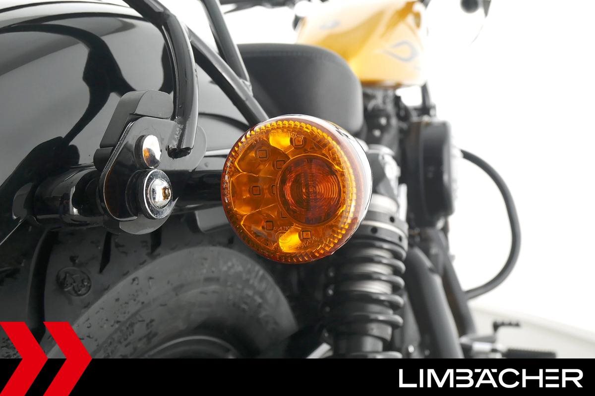 Eine scheckheftgepflegte Harley-Davidson Sportster XL 883 N Iron aus zweiter Hand in sehr gepflegtem Zustand u.a. mit Sturzbügel sowie Leder-Schwingentasche.