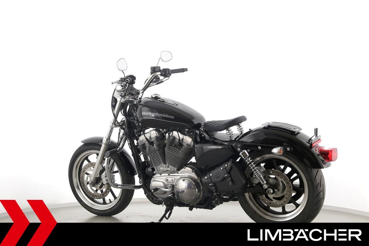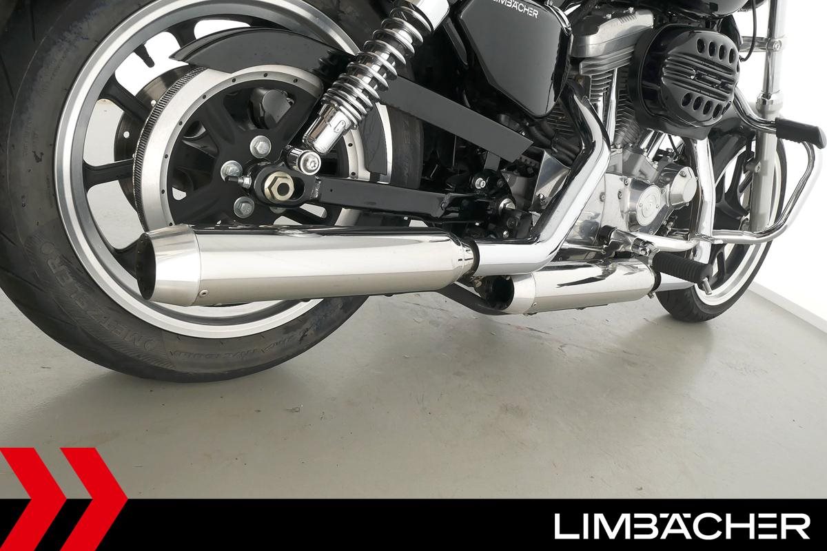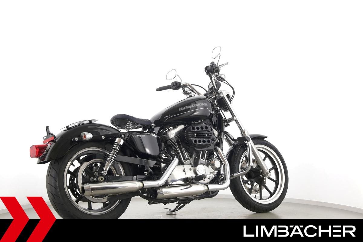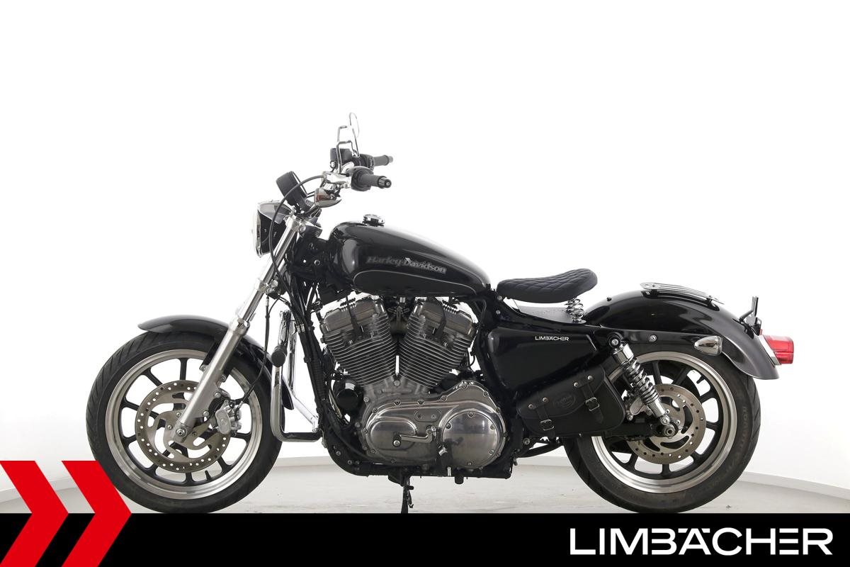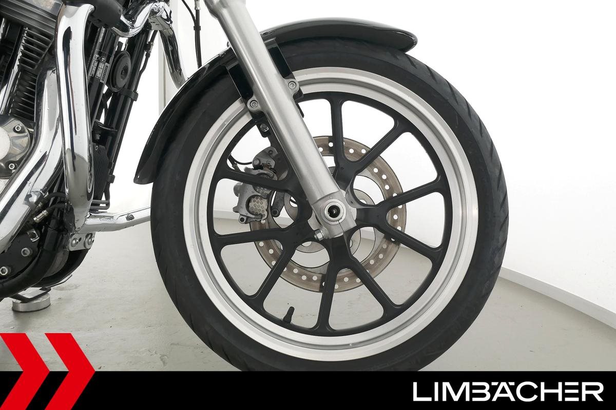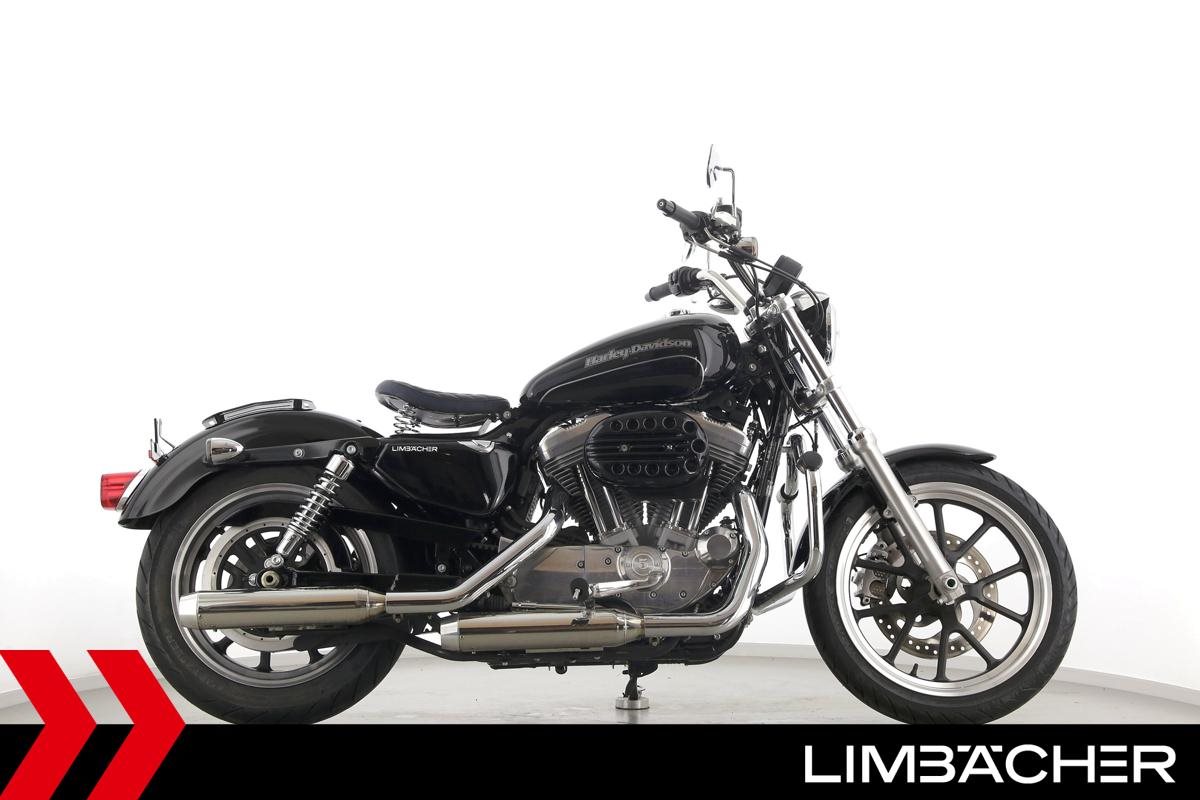 Eine scheckheftgepflegte Harley-Davidson Sportster XL 883 L Superlow aus zweiter Hand in gepflegtem Zustand u.a. mit Miller-Endschalldämpfer sowie Sturzbügel.