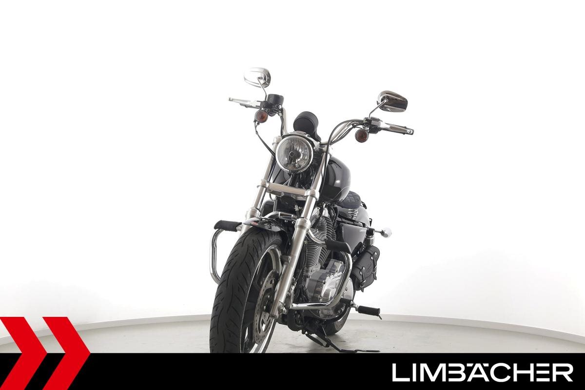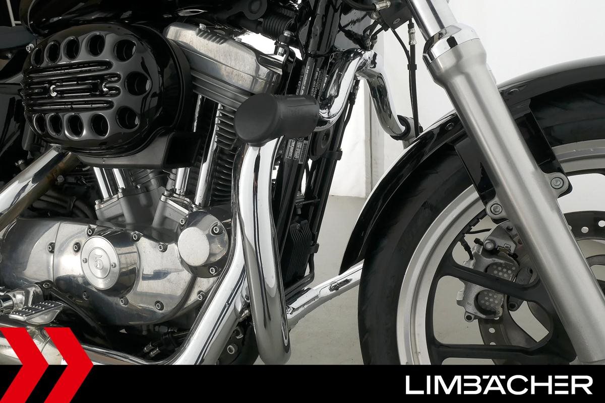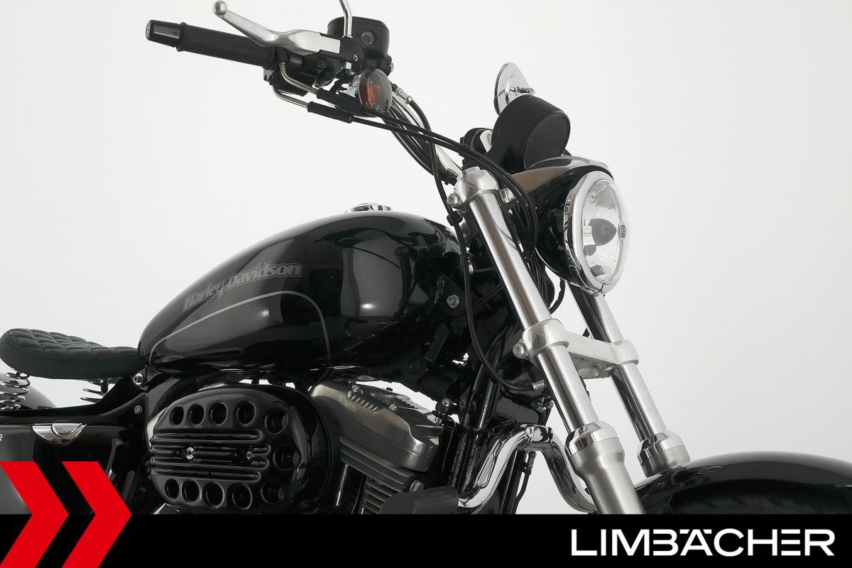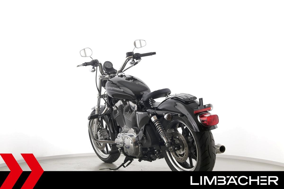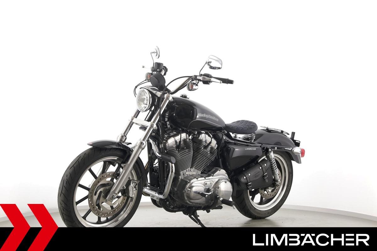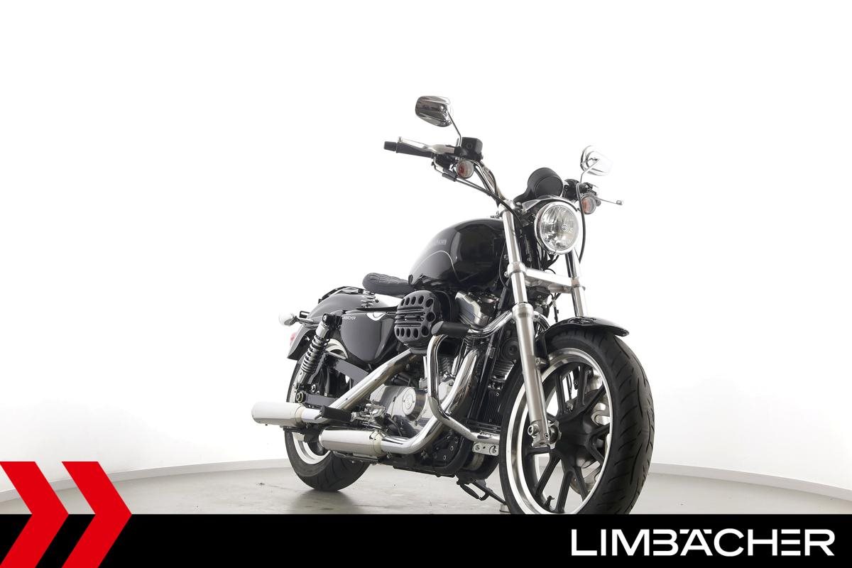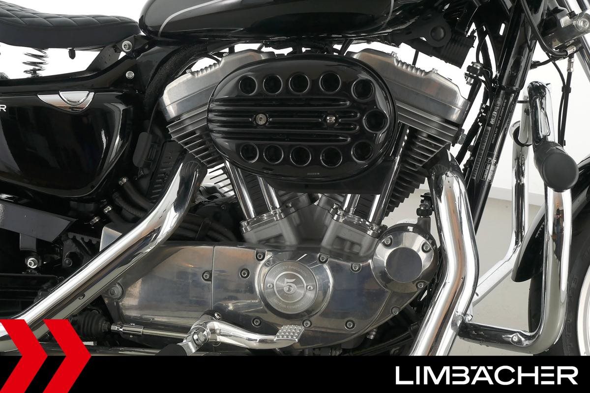 Eine scheckheftgepflegte Harley-Davidson Sportster XL 883 L Superlow aus zweiter Hand in gepflegtem Zustand u.a. mit Miller-Endschalldämpfer sowie Sturzbügel.