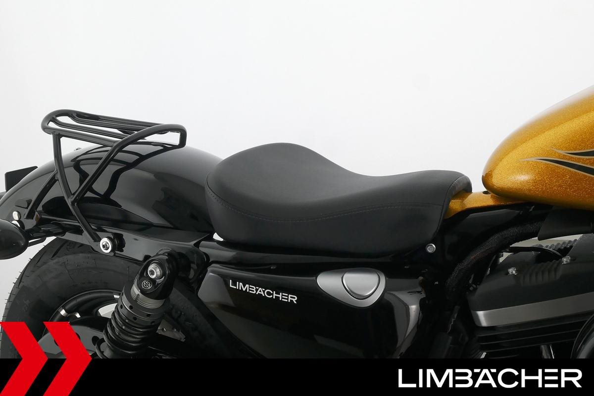 Eine scheckheftgepflegte Harley-Davidson Sportster XL 883 N Iron aus zweiter Hand in sehr gepflegtem Zustand u.a. mit Sturzbügel sowie Leder-Schwingentasche.