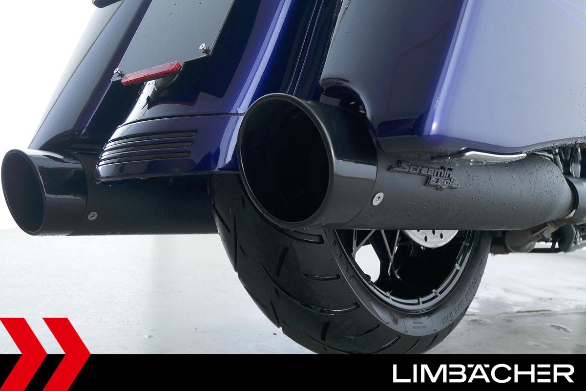 Eine scheckheftgepflegte Harley-Davidson Street Glide Special FLHXS aus zweiter Hand in Topzustand u.a. mit HD-Koffersystem gleichschließend sowie ScreaminEagle-Auspuff.