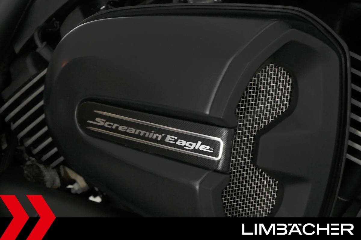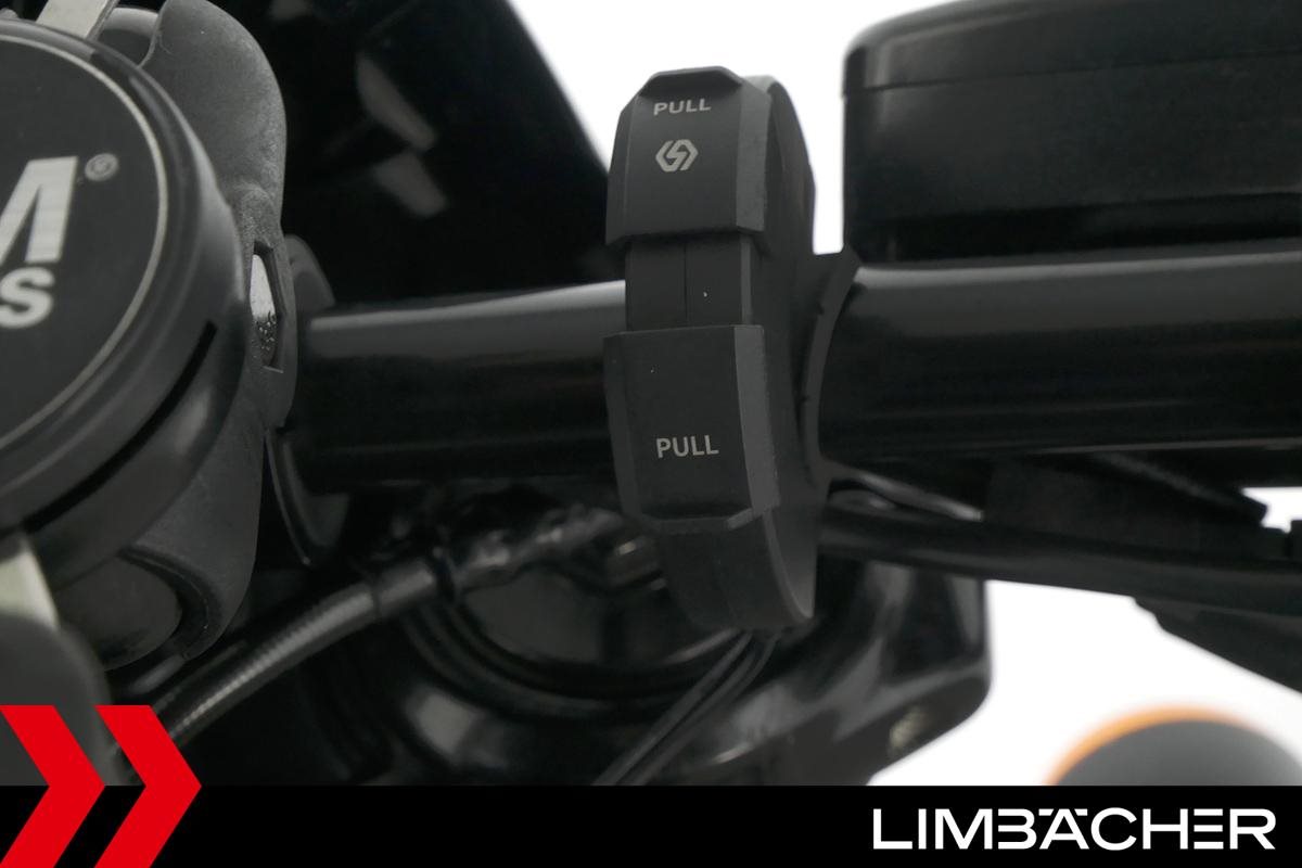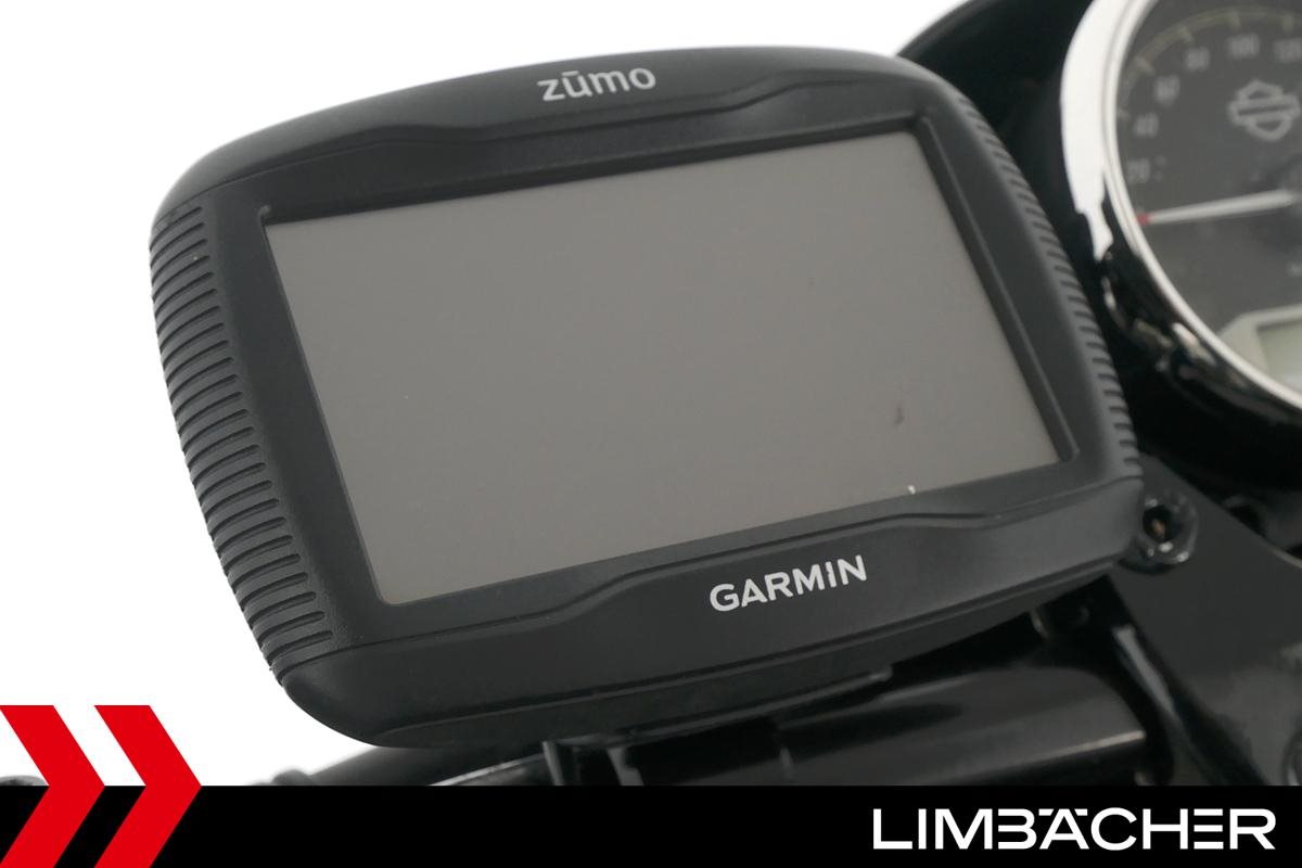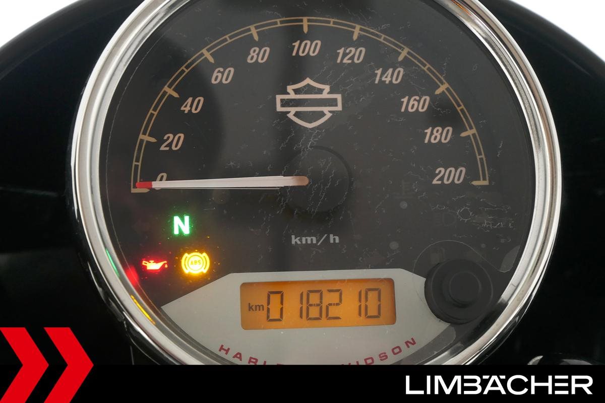 Eine scheckheftgepflegte Harley-Davidson Street Rod 750 in gepflegtem Zustand u.a. mit Screamin' Eagle Endschalldämpfer und Highsider-Lenkerendenspiegeln.